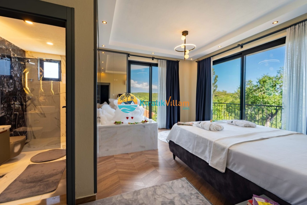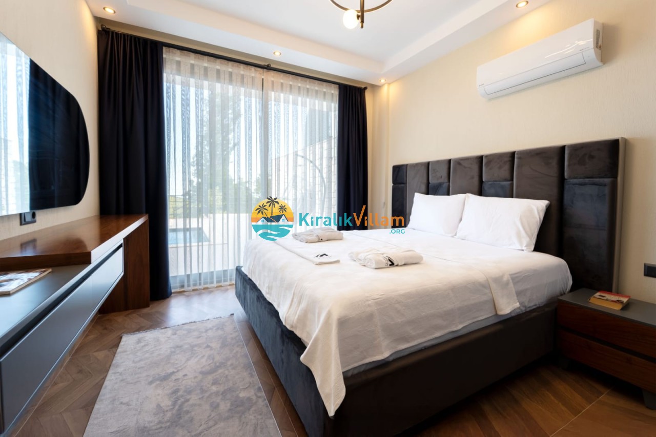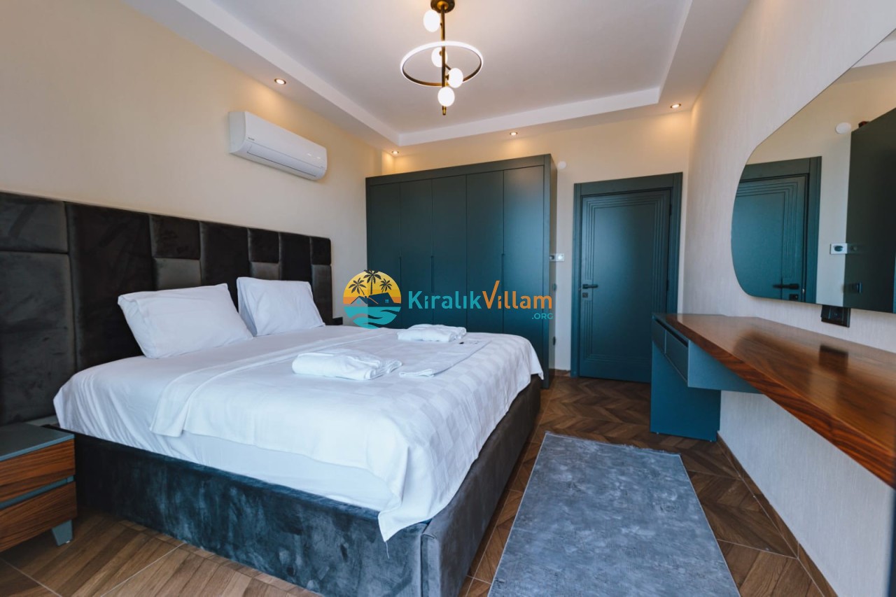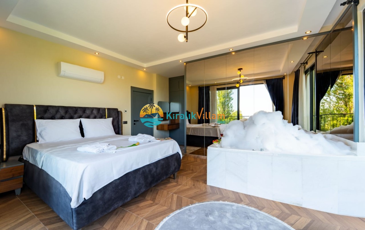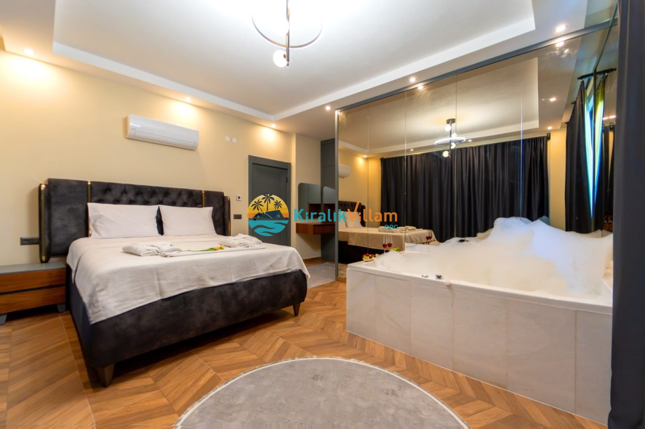 3.Yatak Odası: Suit aile yatak odasıdır. Yatak odasında çift kişilik yatak, klima, elbise dolabı, makyaj masası, jakuzi, komodin ve banyo & WC bulunmaktadır. (1. Kat)