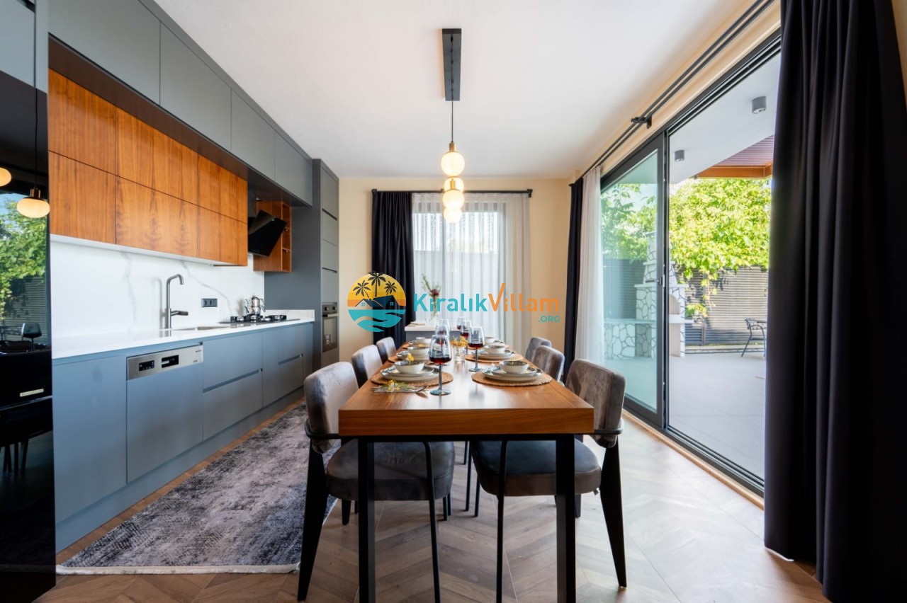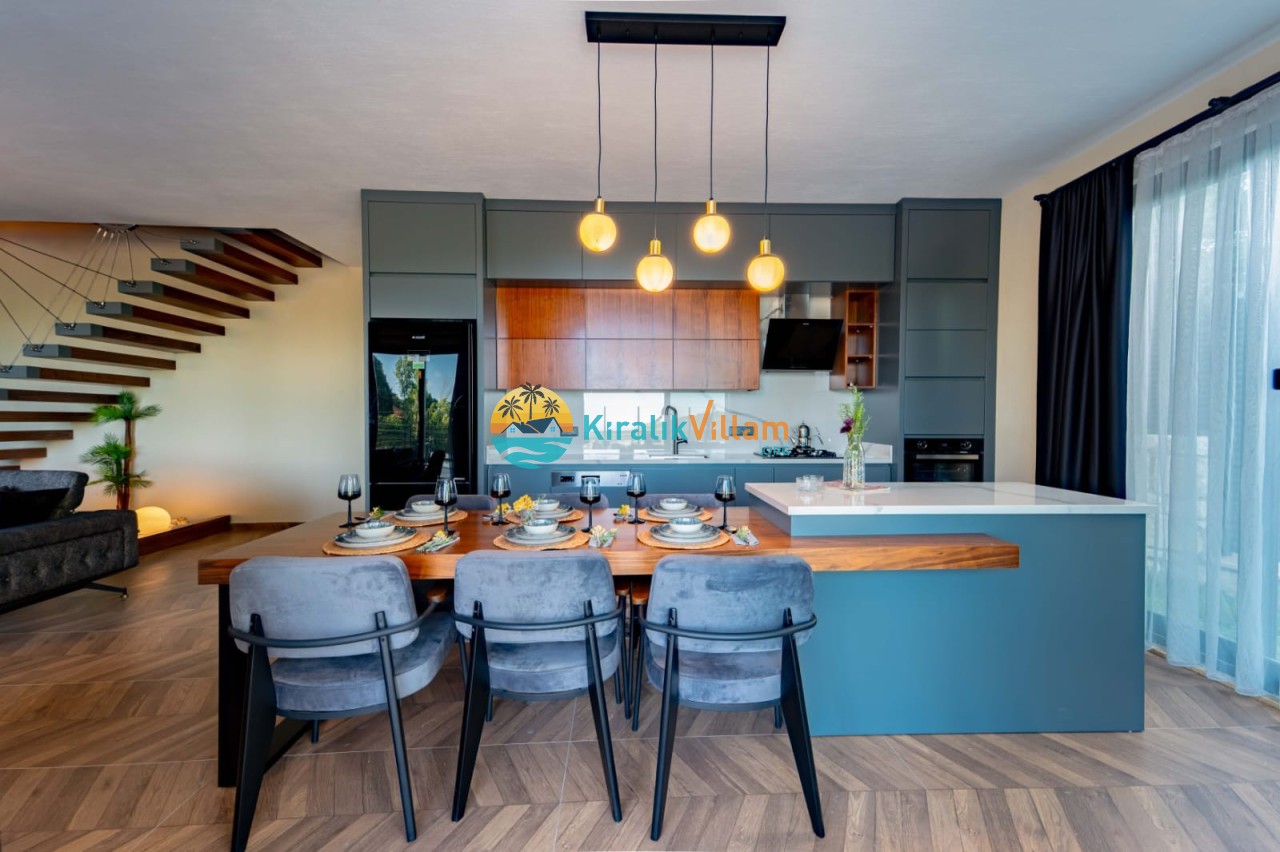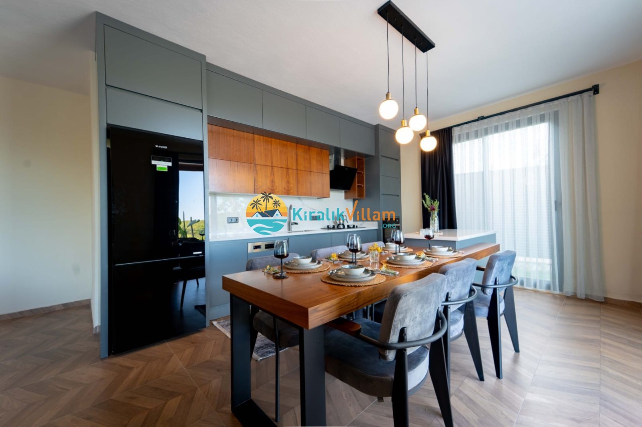 Mutfak: Ferah ve Modern Dizayn Edilmiş Amerikan Mutfak, Buzdolabı, Bulaşık Makinesi, Fırın, 4’lü Ocak (ankastre), çamaşır makinesi, kettle, Tava & Tencere vb. Mutfak Ekipmanları, Yemek Takımı ve 6 kişilik yemek masası bulunmaktadır.