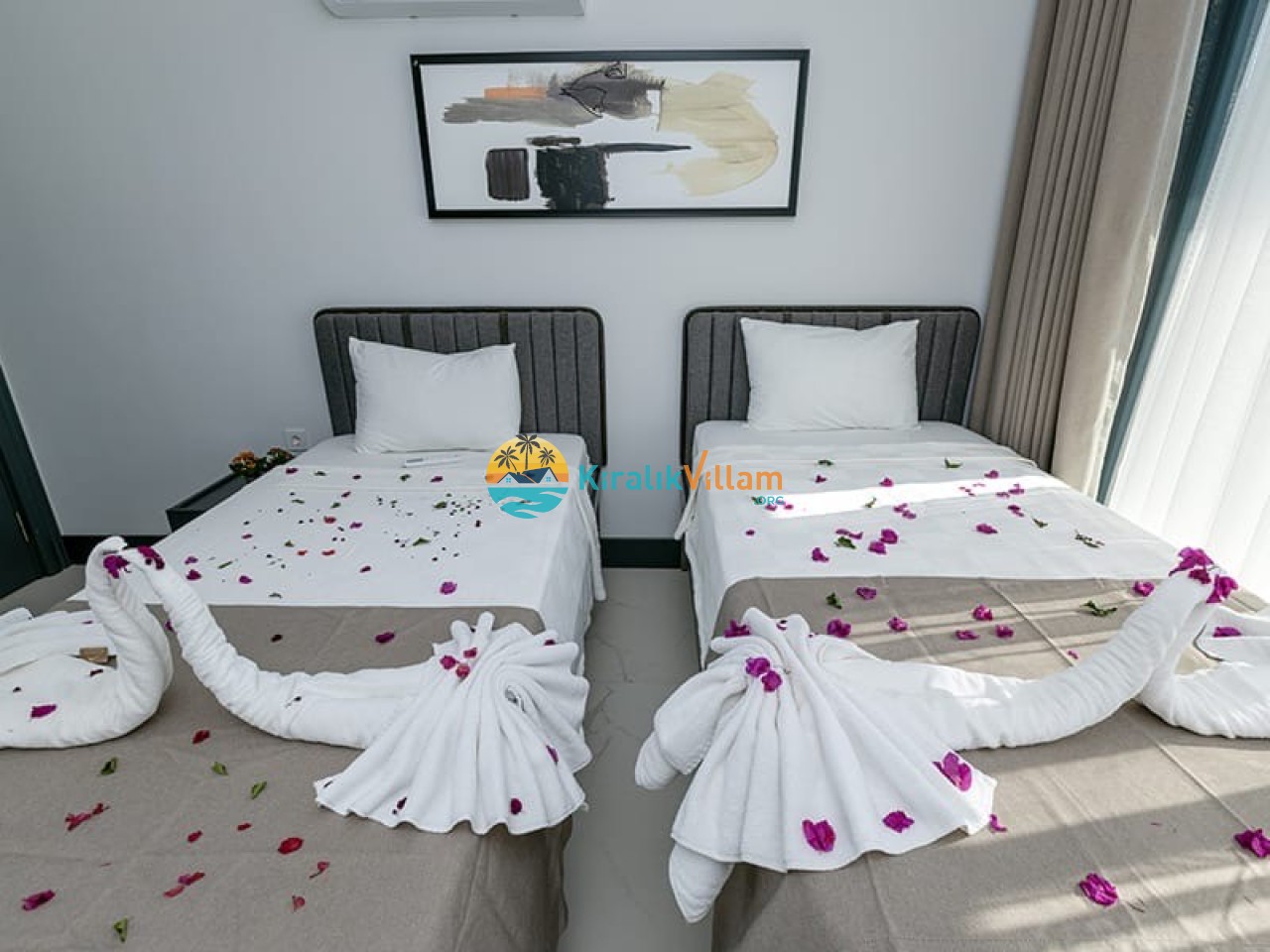 3.Yatak Odası: 2 adet tek kişilik yatak, klima, elbise dolabı, komodin, makyaj masası ve banyo-wc bulunmaktadır.