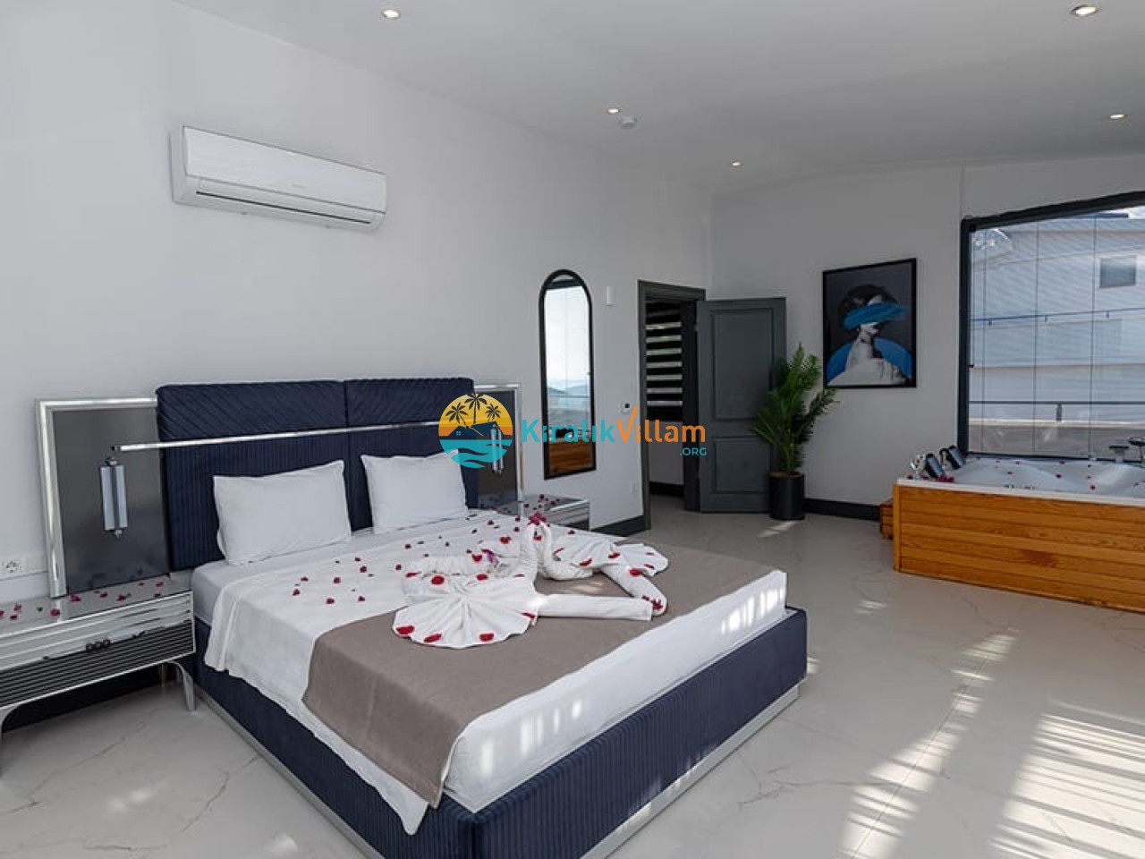 1 adet çift kişilik yatak, klima, jakuzi, elbise dolabı, komodin, makyaj masası ve banyo-wc bulunmaktadır.