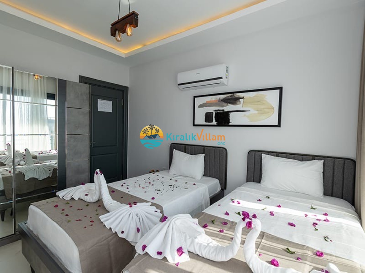 2 adet tek kişilik yatak, klima, elbise dolabı, komodin, makyaj masası ve banyo-wc bulunmaktadır.