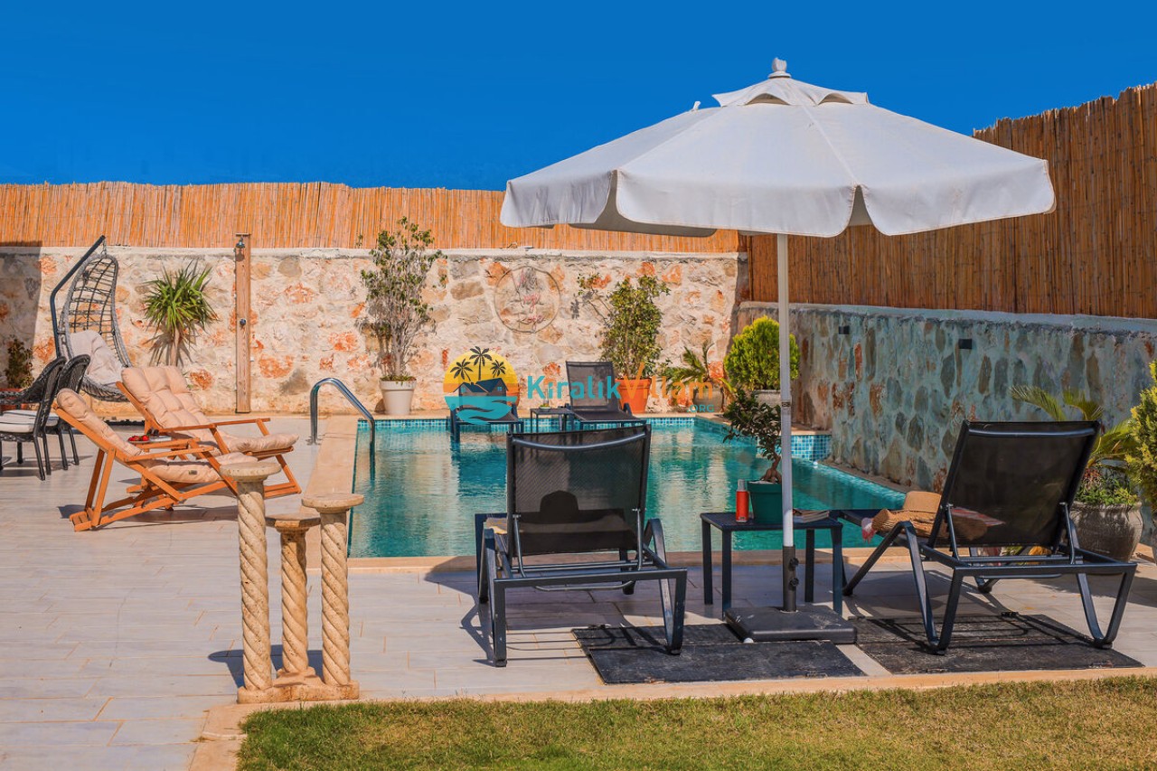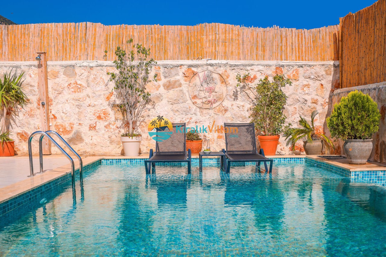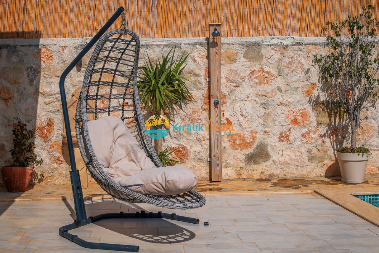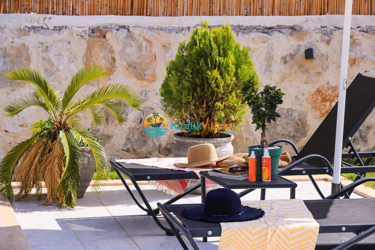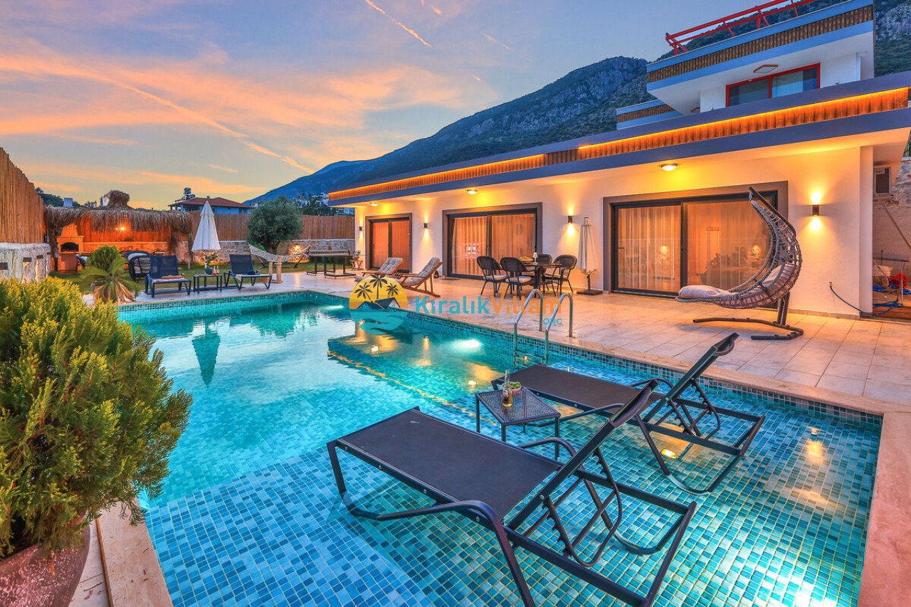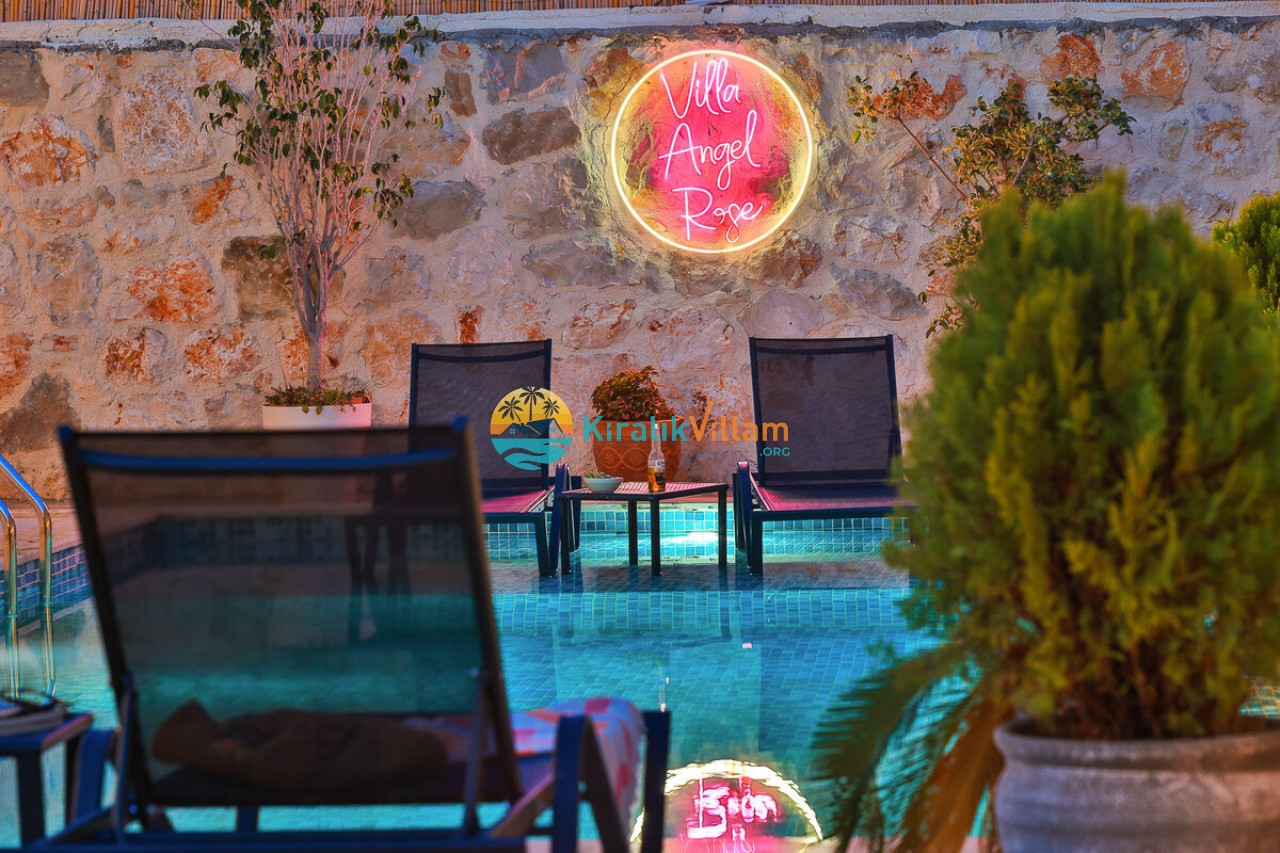 Villa Angel Rose, Kaş’ın Gökseki bölgesinde bulunan Villa Angel Rose, doğanın tam ortasında yemyeşil bahçeyle bütünleşmiş eşsiz bir tatil deneyimi sunmaktadır. Jakuzili 2 yatak odası ve 2 banyosuyla geniş bir konaklama alanı sunar. Modern tasarıma sahip olan villamız, lüks mobilyaları ve kaliteli ekipmanları ile rahat bir tatil geçireceksiniz. Villamızın her köşesi, rahat etmeniz için özenle düşünülmüştür. Villa Angel Rose’nin en dikkat çeken özelliklerinden biri, muhteşem bir manzaraya sahip olmasıdır. Dağ manzarasına sahip bahçesi, bahçede yer alan havuz, şezlonglar, hamak ve oturma alanları güne harika bir şekilde başlamanızı sağlar. Villa Angel Rose, tatil yaparken eğlenmek isteyen balayı çiftleri ve çekirdek aileler için uygun bir seçenektir.