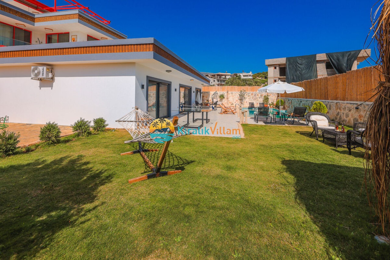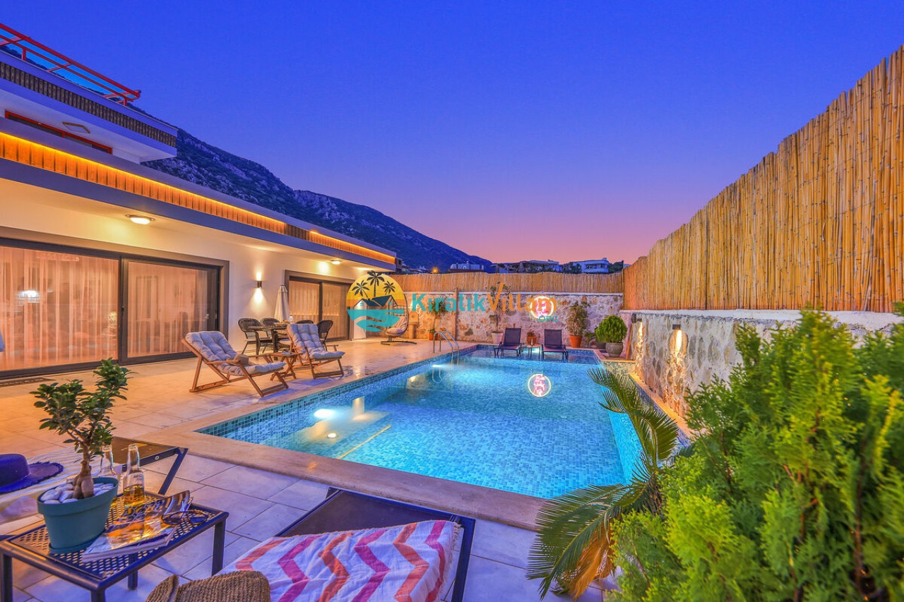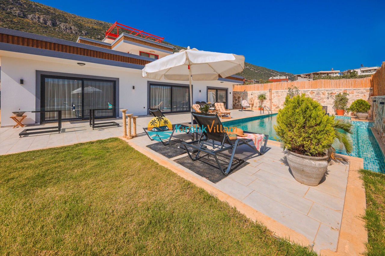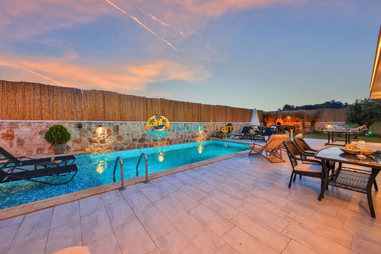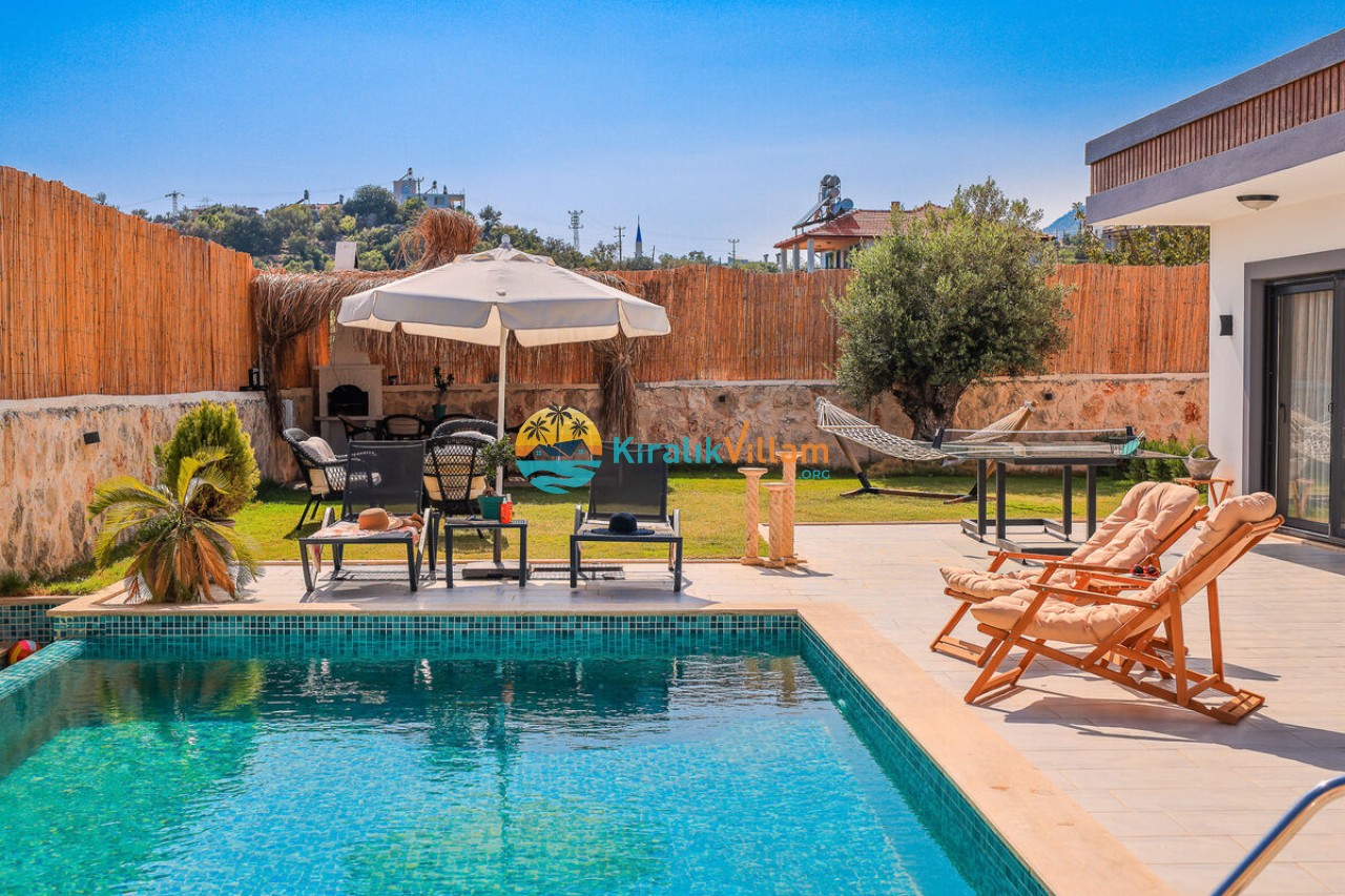 Villa Angel Rose, Kaş’ın Gökseki bölgesinde bulunan Villa Angel Rose, doğanın tam ortasında yemyeşil bahçeyle bütünleşmiş eşsiz bir tatil deneyimi sunmaktadır. Jakuzili 2 yatak odası ve 2 banyosuyla geniş bir konaklama alanı sunar. Modern tasarıma sahip olan villamız, lüks mobilyaları ve kaliteli ekipmanları ile rahat bir tatil geçireceksiniz. Villamızın her köşesi, rahat etmeniz için özenle düşünülmüştür. Villa Angel Rose’nin en dikkat çeken özelliklerinden biri, muhteşem bir manzaraya sahip olmasıdır. Dağ manzarasına sahip bahçesi, bahçede yer alan havuz, şezlonglar, hamak ve oturma alanları güne harika bir şekilde başlamanızı sağlar. Villa Angel Rose, tatil yaparken eğlenmek isteyen balayı çiftleri ve çekirdek aileler için uygun bir seçenektir.
