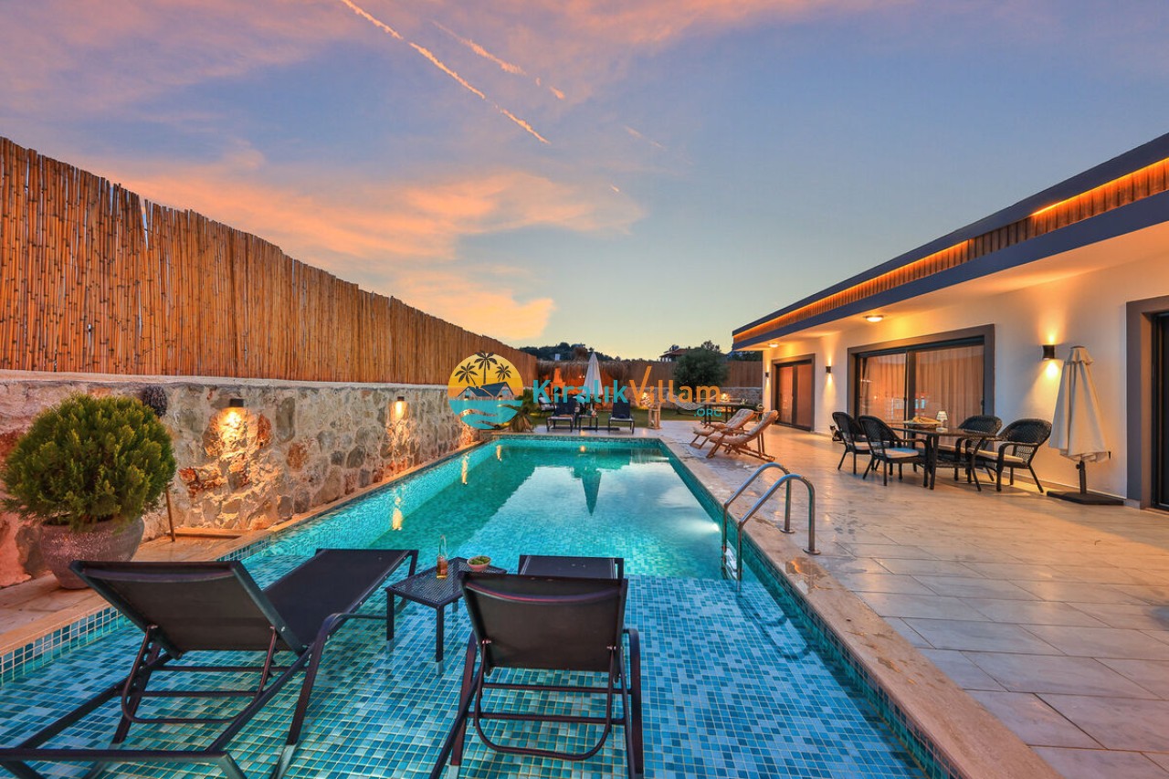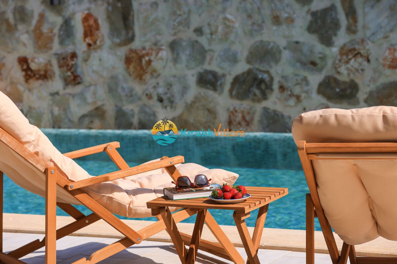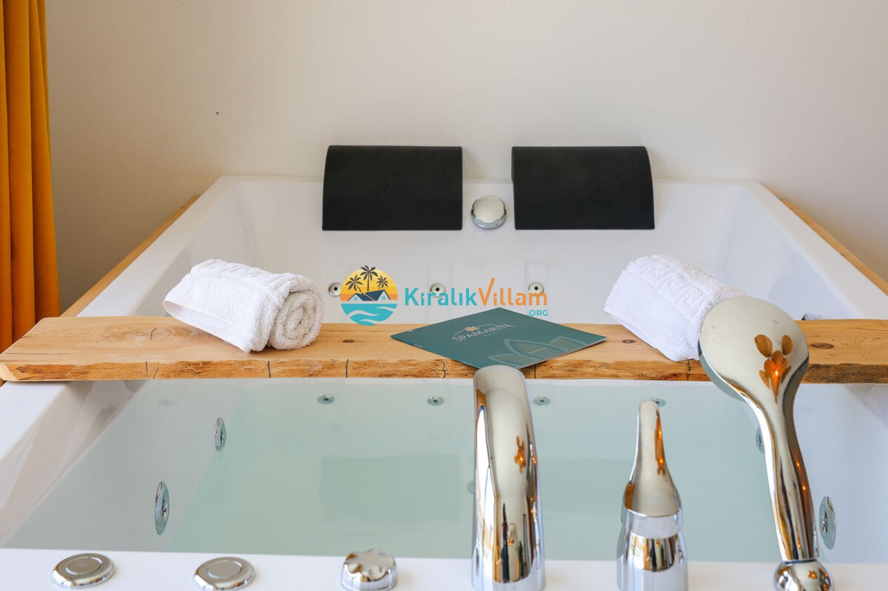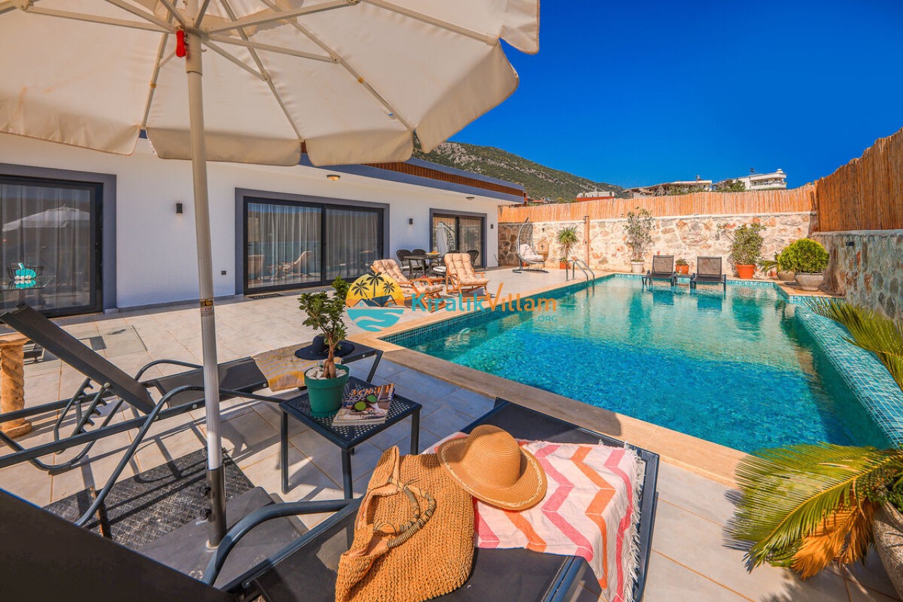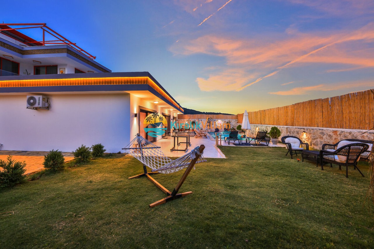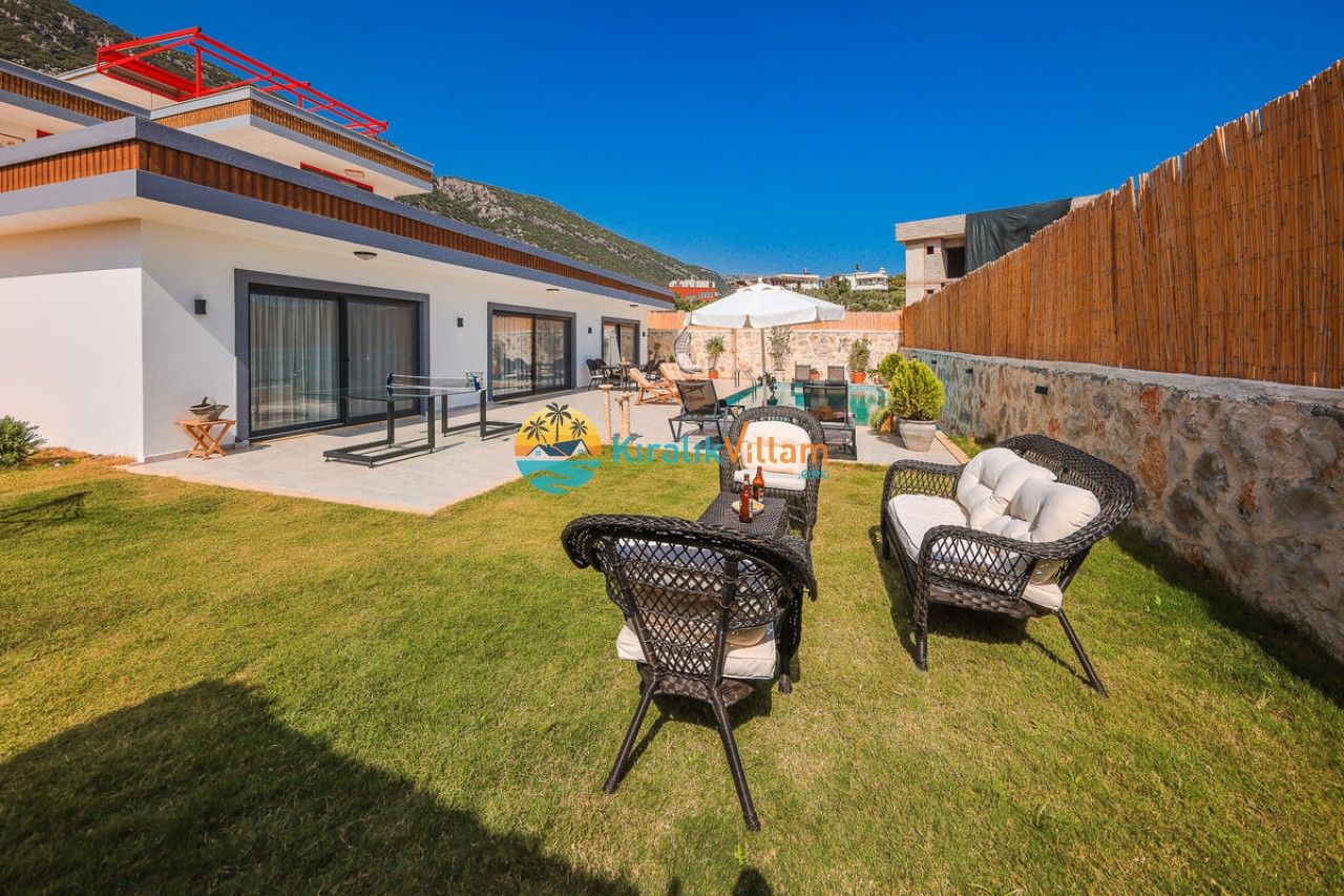 Villa Angel Rose, Kaş’ın Gökseki bölgesinde bulunan Villa Angel Rose, doğanın tam ortasında yemyeşil bahçeyle bütünleşmiş eşsiz bir tatil deneyimi sunmaktadır. Jakuzili 2 yatak odası ve 2 banyosuyla geniş bir konaklama alanı sunar. Modern tasarıma sahip olan villamız, lüks mobilyaları ve kaliteli ekipmanları ile rahat bir tatil geçireceksiniz. Villamızın her köşesi, rahat etmeniz için özenle düşünülmüştür. Villa Angel Rose’nin en dikkat çeken özelliklerinden biri, muhteşem bir manzaraya sahip olmasıdır. Dağ manzarasına sahip bahçesi, bahçede yer alan havuz, şezlonglar, hamak ve oturma alanları güne harika bir şekilde başlamanızı sağlar. Villa Angel Rose, tatil yaparken eğlenmek isteyen balayı çiftleri ve çekirdek aileler için uygun bir seçenektir.