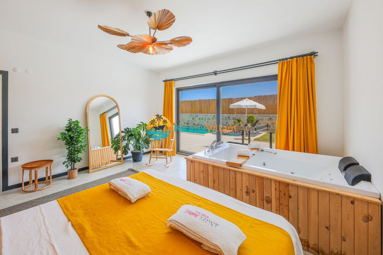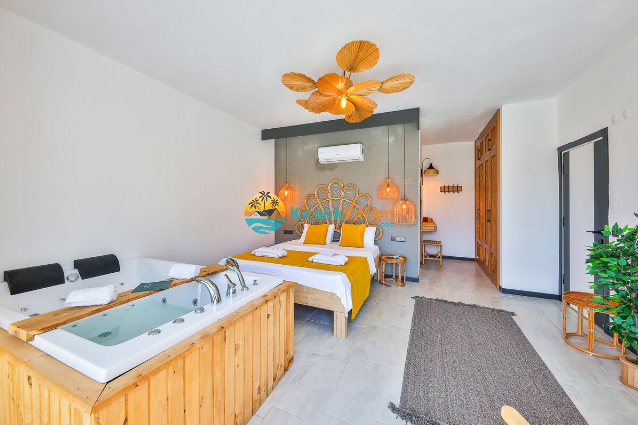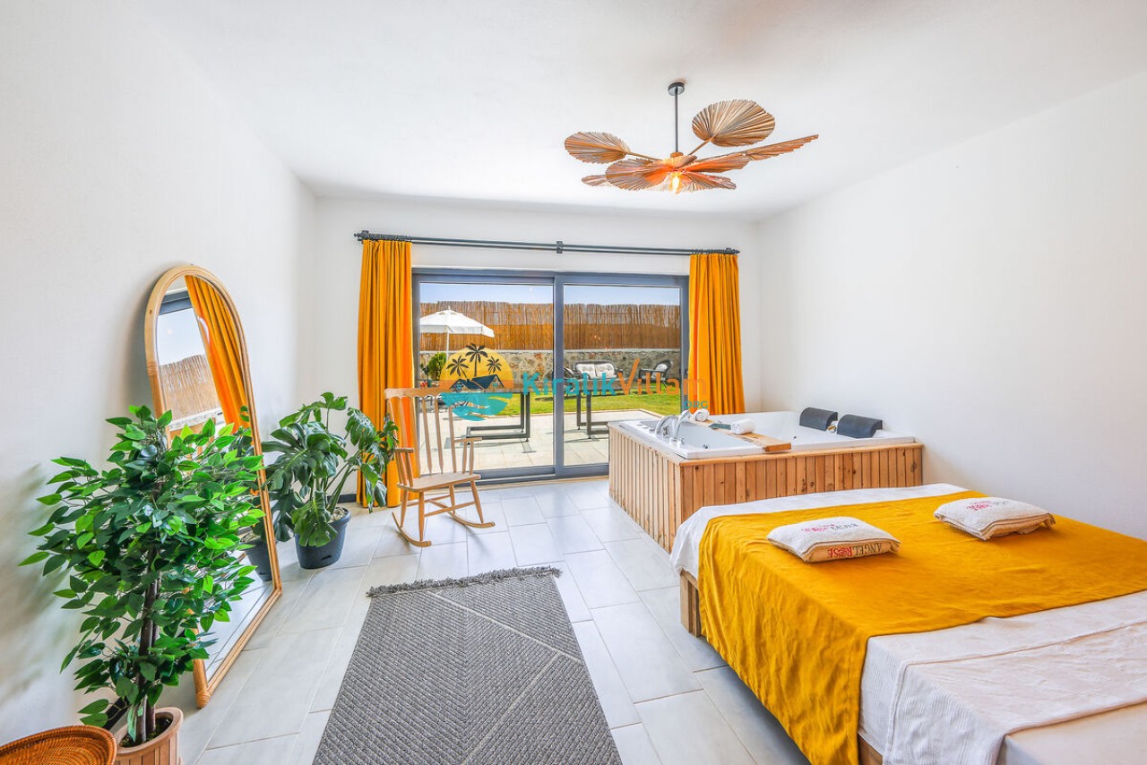 1 adet çift kişilik yatak, klima, elbise dolabı, komodin, makyaj masası, salıncak jakuzi, banyo ve tuvalet yer almaktadır.