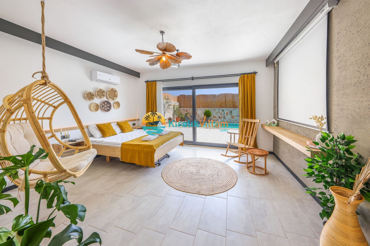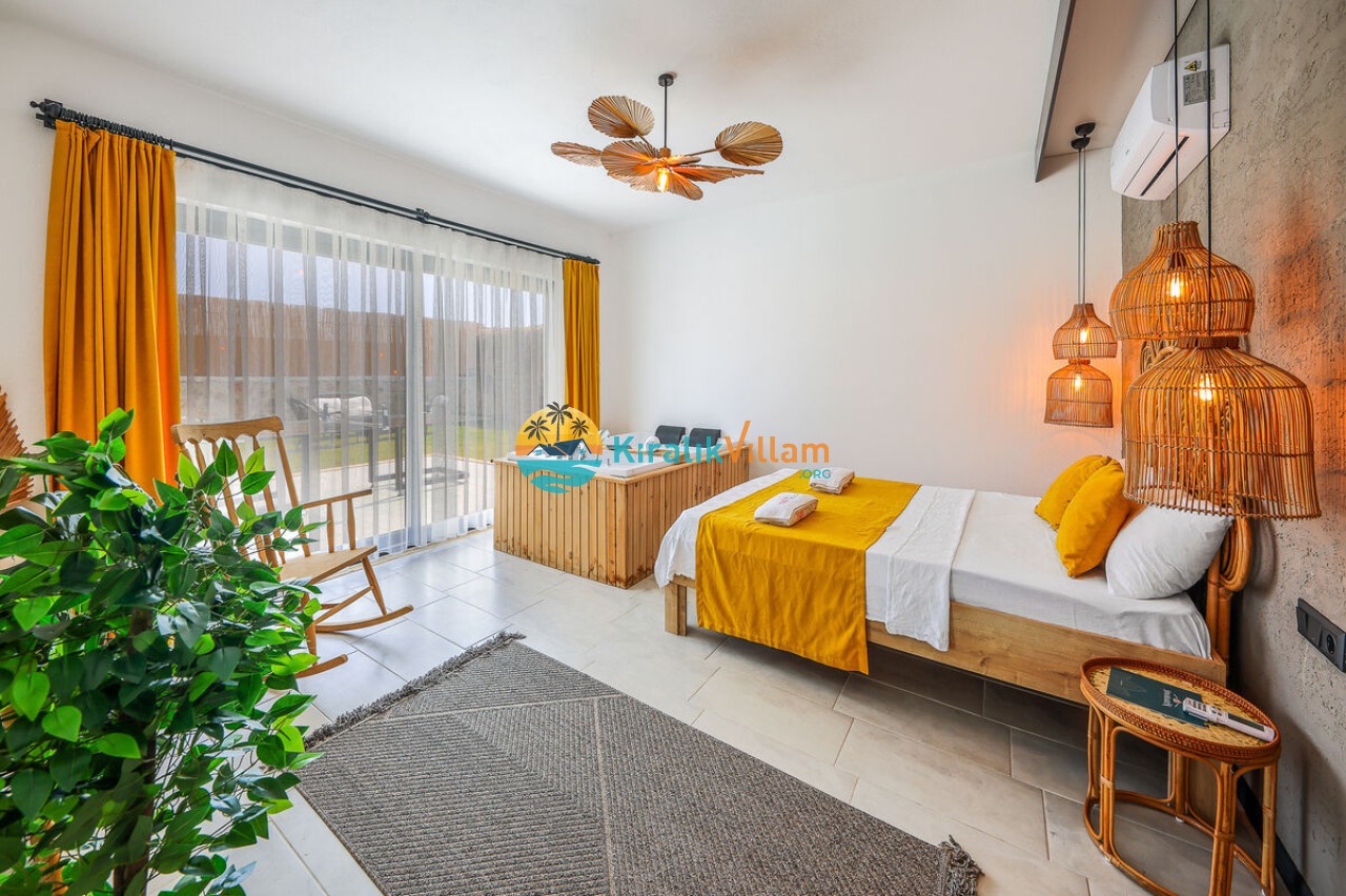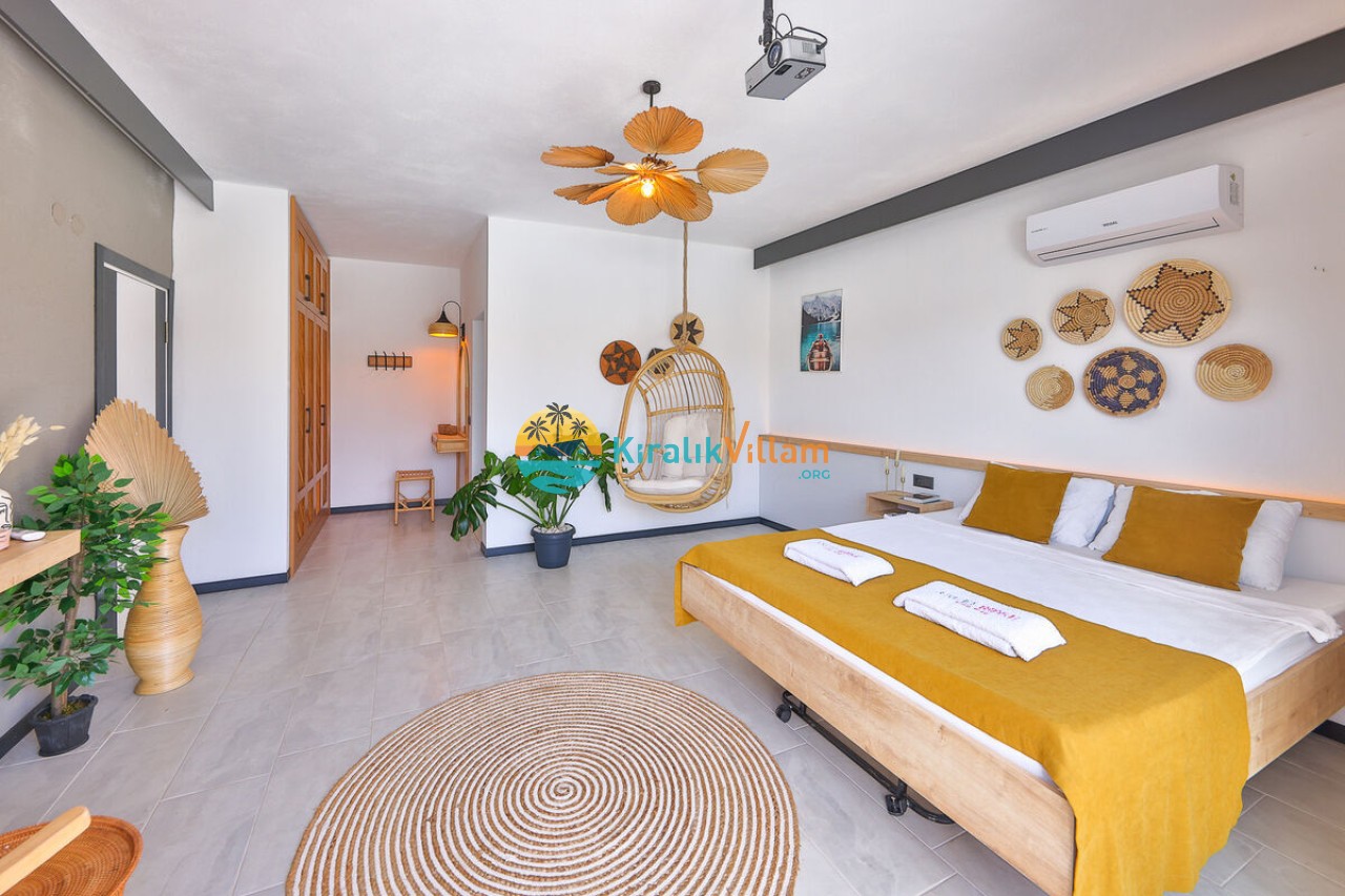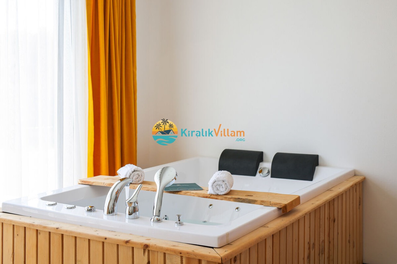 1 adet çift kişilik yatak, klima, elbise dolabı, komodin, makyaj masası, salıncak jakuzi, banyo ve tuvalet yer almaktadır.