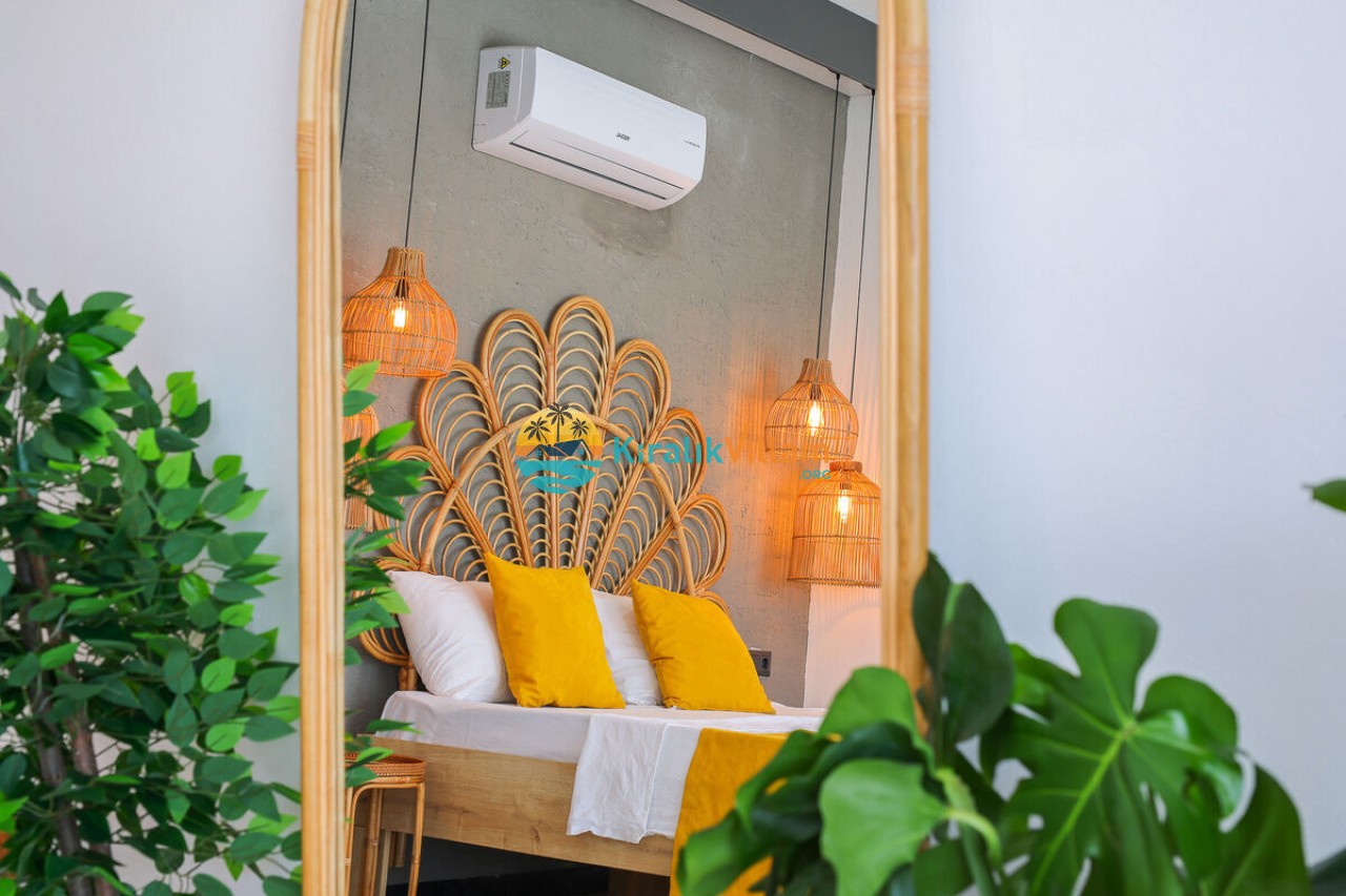 2.Yatak Odası:1 adet çift kişilik yatak, klima, elbise dolabı, komodin, makyaj masası, banyo ve tuvalet yer almaktadır.