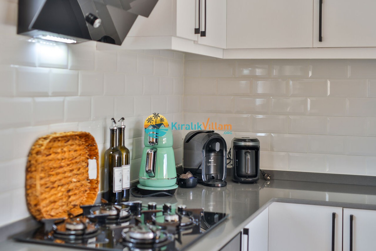Mutfak: Amerikan mutfak içerisinde, buzdolabı, bulaşık makinası, yemek takımı, ankastre fırın, mikrodalga fırın, tost makinası, ankastre ocak, çay makinası, tava, tencere takımı ve gerekli olan tüm mutfak gereçleri yer almaktadır.
