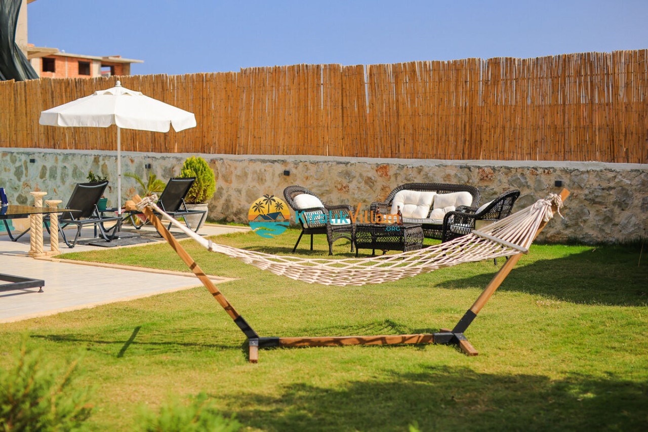 Bahçe Detayları: Doğa manzaralı bahçe içerisinde, özel yüzme havuzu, şezlonglar, güneş şemsiyesi, bahçe oturma grubu, bahçe yemek masası, hamak ve barbekü yer almaktadır.