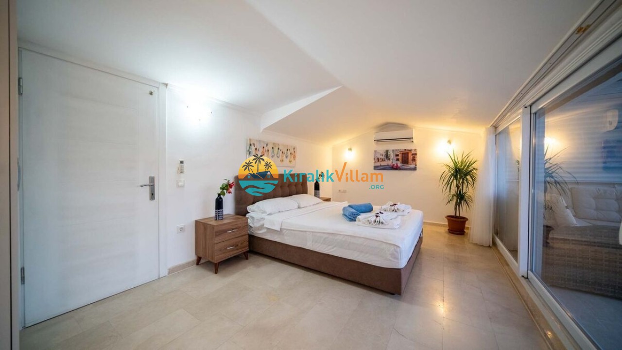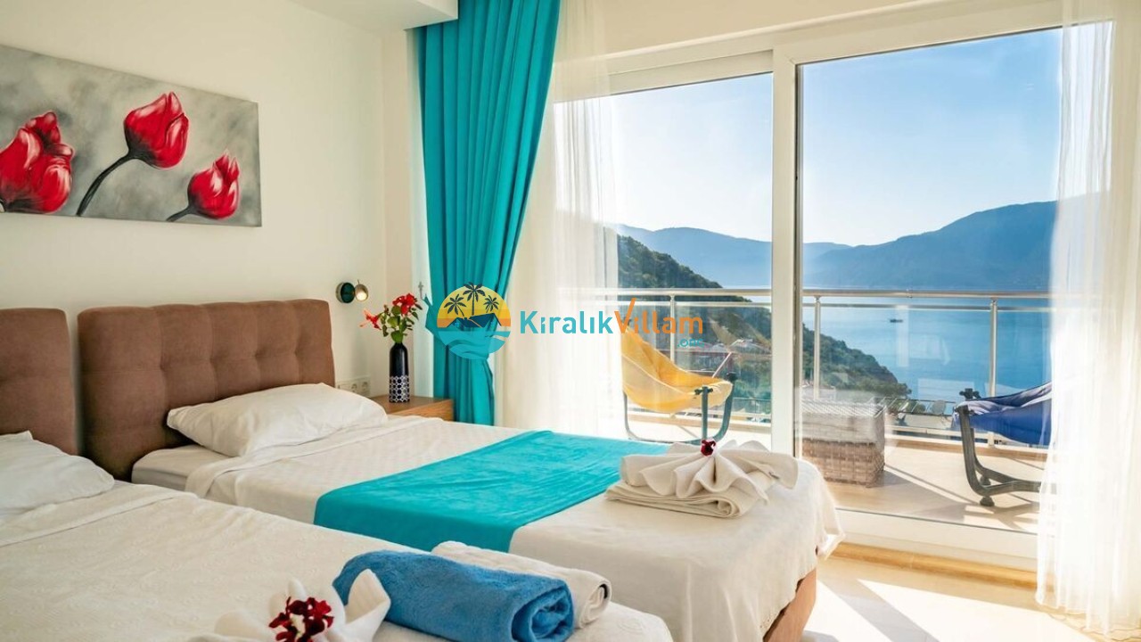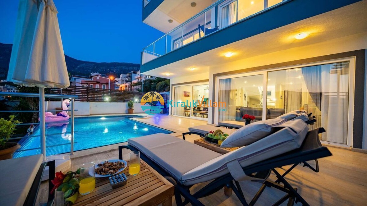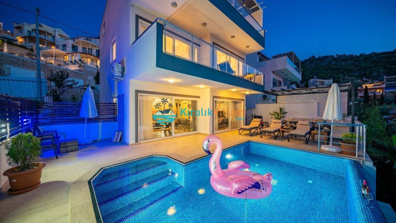 Kalkan Kızıltaş koyunda yer alan 5 yatak oadalı kiralık villadır. Kalkan’ın Kışla koyu manzarasına sahiptir. Kalkan’da yer alan popüler pajlardan bir tanesine yürüme mesafesindedir. Modern ve konforlu eşyalarla özenle dekore edilmiş olup odalarından deniz manzarasına sahiptir.