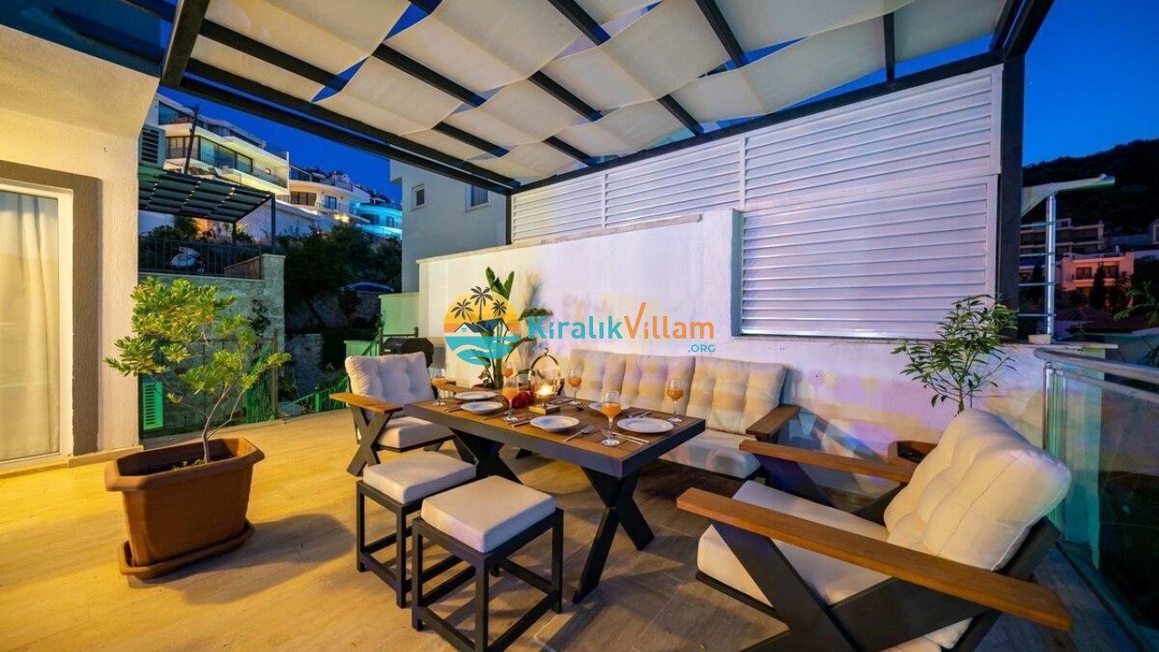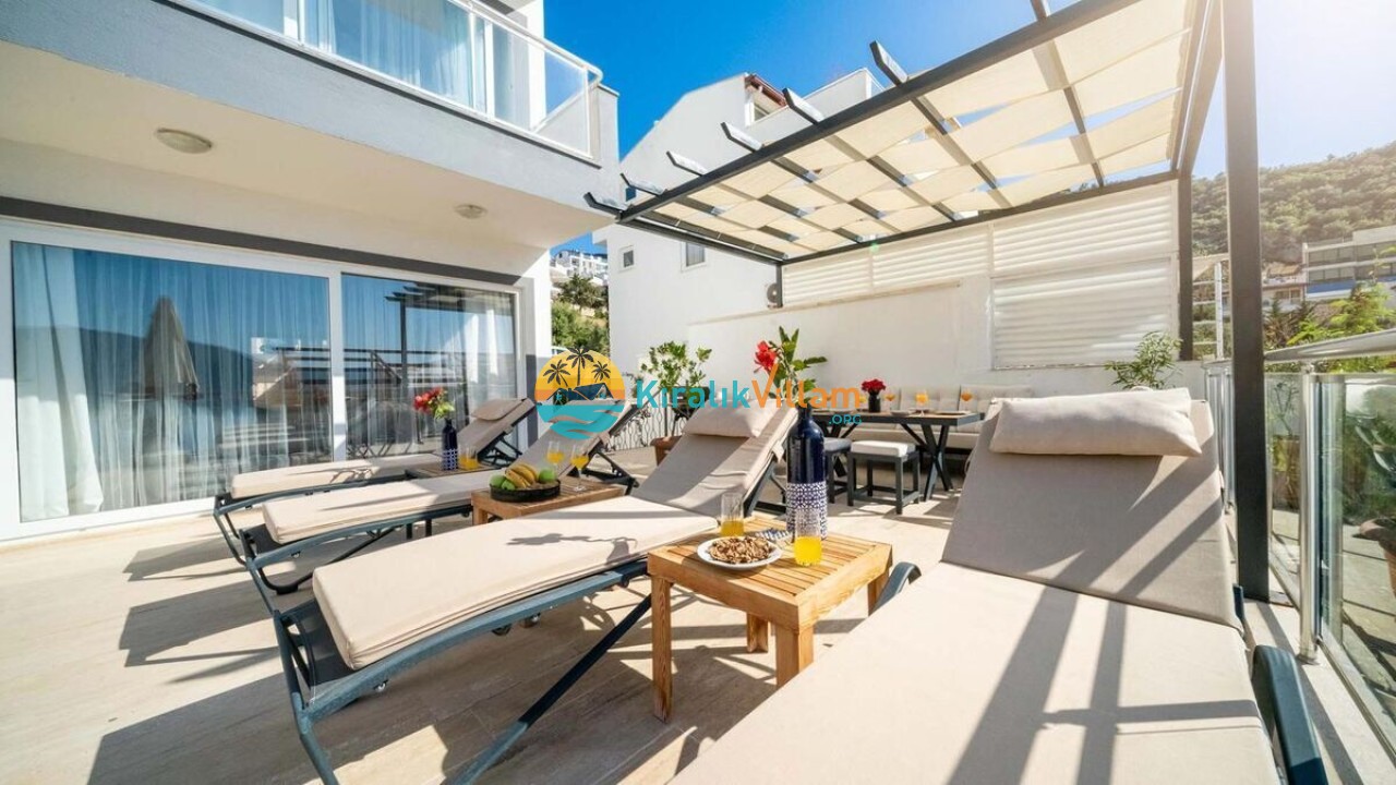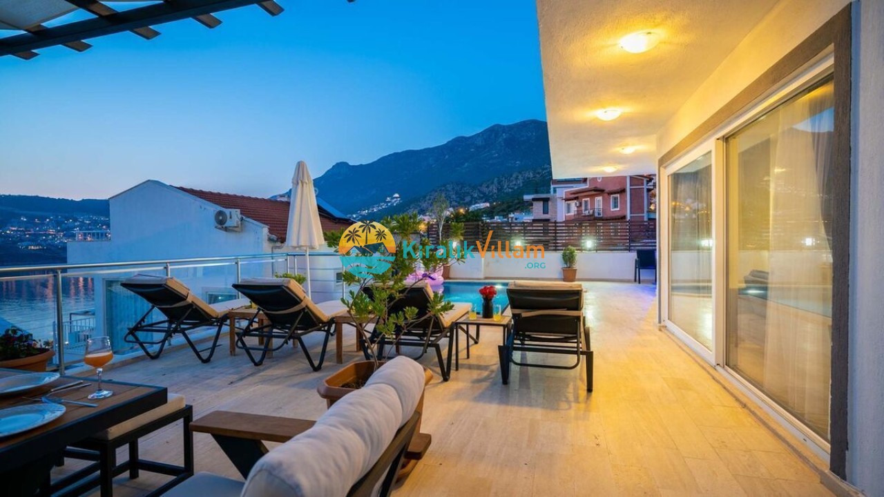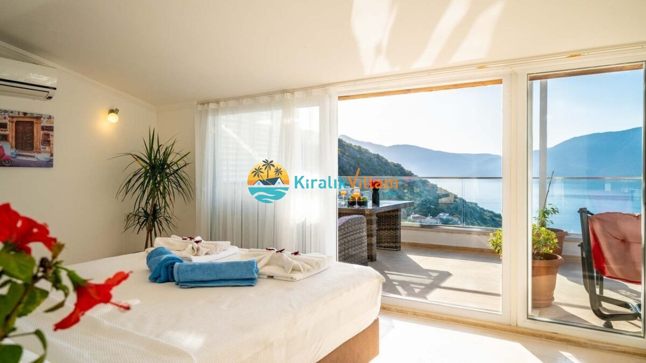 Kalkan Kızıltaş koyunda yer alan 5 yatak oadalı kiralık villadır. Kalkan’ın Kışla koyu manzarasına sahiptir. Kalkan’da yer alan popüler pajlardan bir tanesine yürüme mesafesindedir. Modern ve konforlu eşyalarla özenle dekore edilmiş olup odalarından deniz manzarasına sahiptir.