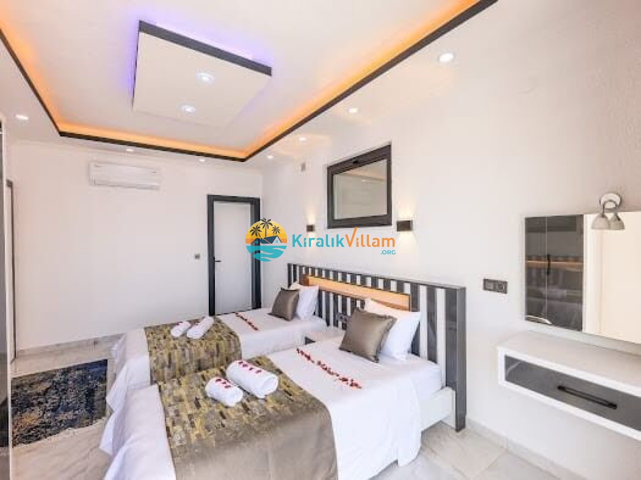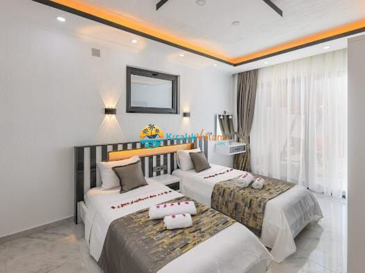 2.Yatak Odası: İki adet tek kişilik yatak,klima, elbise dolabı,komodin, makyaj masası, banyo ve tuvalet bulunmaktadır.
