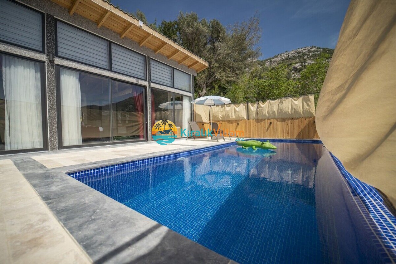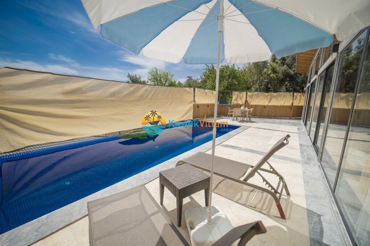 Villamızın özel yüzme havuzunun korunaklı bir şekilde tasarlanması özellikle muhafazakâr ailelerimizin memnuniyeti için yarar sağlamaktadır.