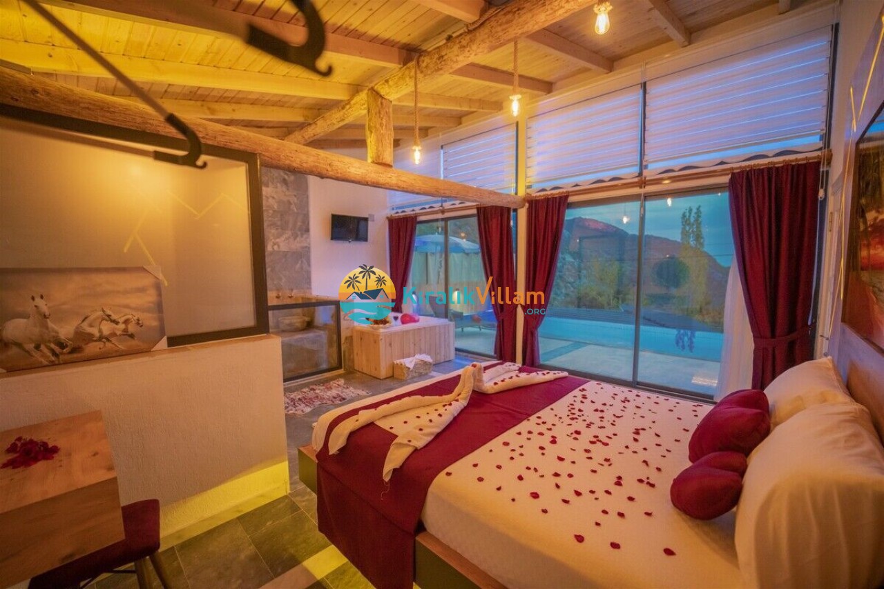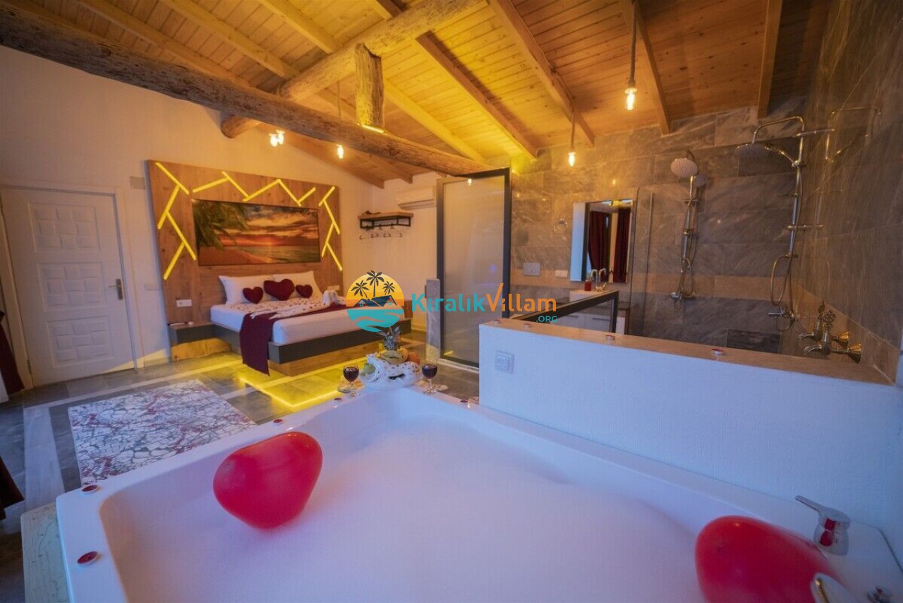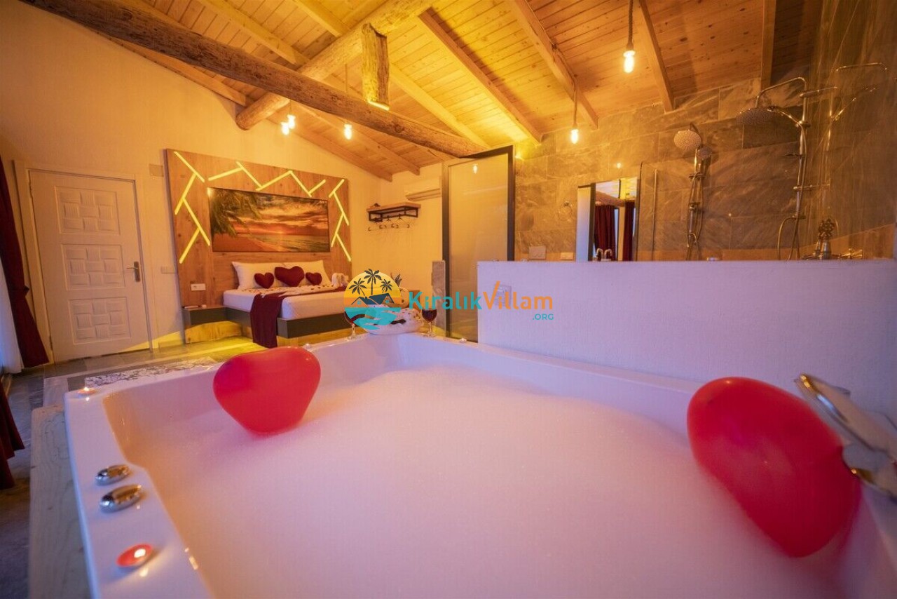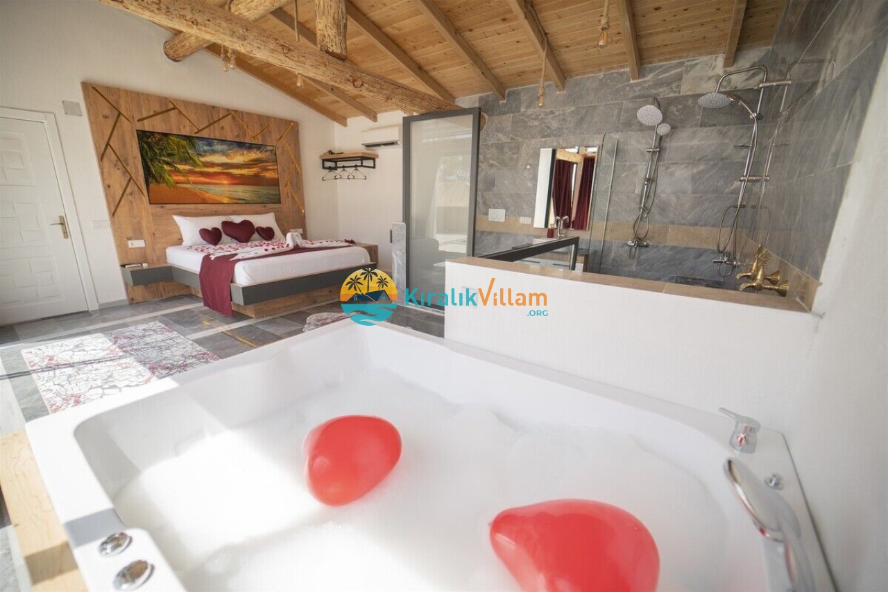 Villamızın modern mutfağı, eksiksiz araç-gereçleri ve konforlu eşyaları sayesinde kendinizi evinizde gibi hissedebilecek ve rahat bir tatil geçirme imkanı bulabileceksiniz. Ayrıca villamız da bulunan geniş jakuzive özel yüzme havuzu sayesinde dinlenebilecek ve eğlenceli saatler geçirebileceksiniz.