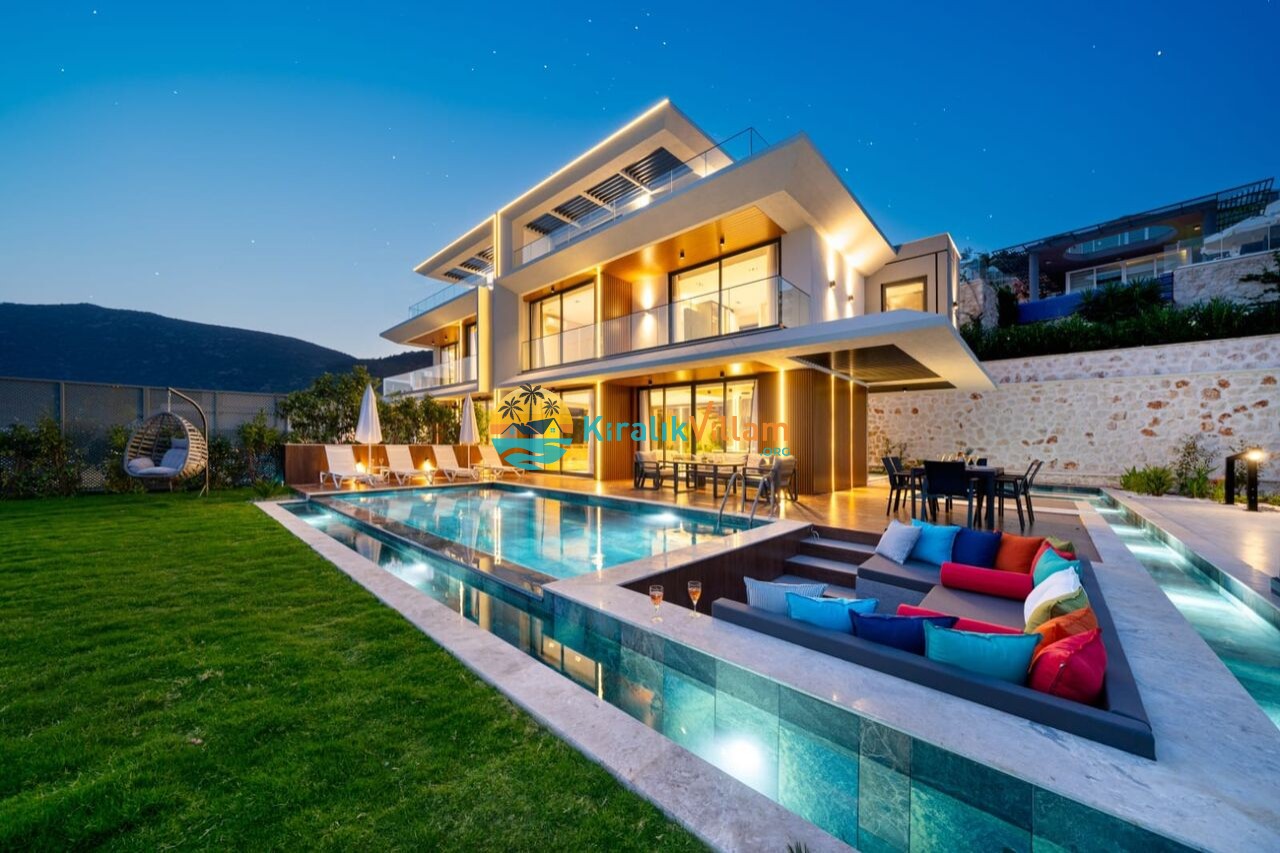 Villa Aura A, Kalkan Kalamar Koyunda 2023 yılında hizmete giren lüks kiralık villamız 3 yatak odasına sahip olup 6 kişiye kadar konaklama imkanı sağlamaktadır. Villa Aura A diğer kardeş villası Villa Aura B ile birlikte kiralayarak konaklama kapasitesini 12 kişiye kadar artırabilirsiniz. Konum olarak oldukça rahat ve kolaylık ile ulaşım sağlayabileceğiniz villamızdır. Market manav gibi yerlerede yürüyüş mesafesinde bulunmaktadır. Geniş bahçe ve havuz terasına sahip olan Villa Aura, siz değerli misafirlerine keyifli imkanlar sunmaktadır. Havuz ve bahçe terasında oturma grubu, şezlong, güneş şemsiyesi, salıncak bulunmakta olup, sahip olduğu deniz manzarası ile birlikte gün boyu Kalkan’ın tüm eşsiz renklerini keşfedebilirsiniz. Villamızda misafirlerimiz araçları için otoparkta bulunmaktadır. Aileniz ve sevdikleriniz ile beraber keyifli bir tatil deneyimi için sizleri Villa Aura A’ ya bekliyoruz.