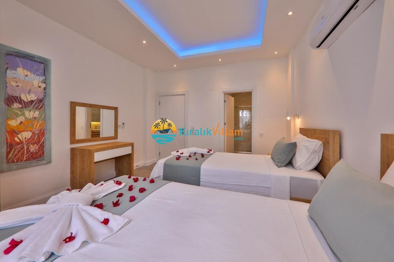 2.Yatak Odası: 2 adet tek kişilik yatak, elbise dolabı, makyaj masası, komodin, banyo ve lavabo bulunmaktadır.