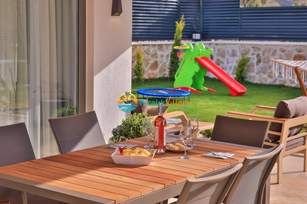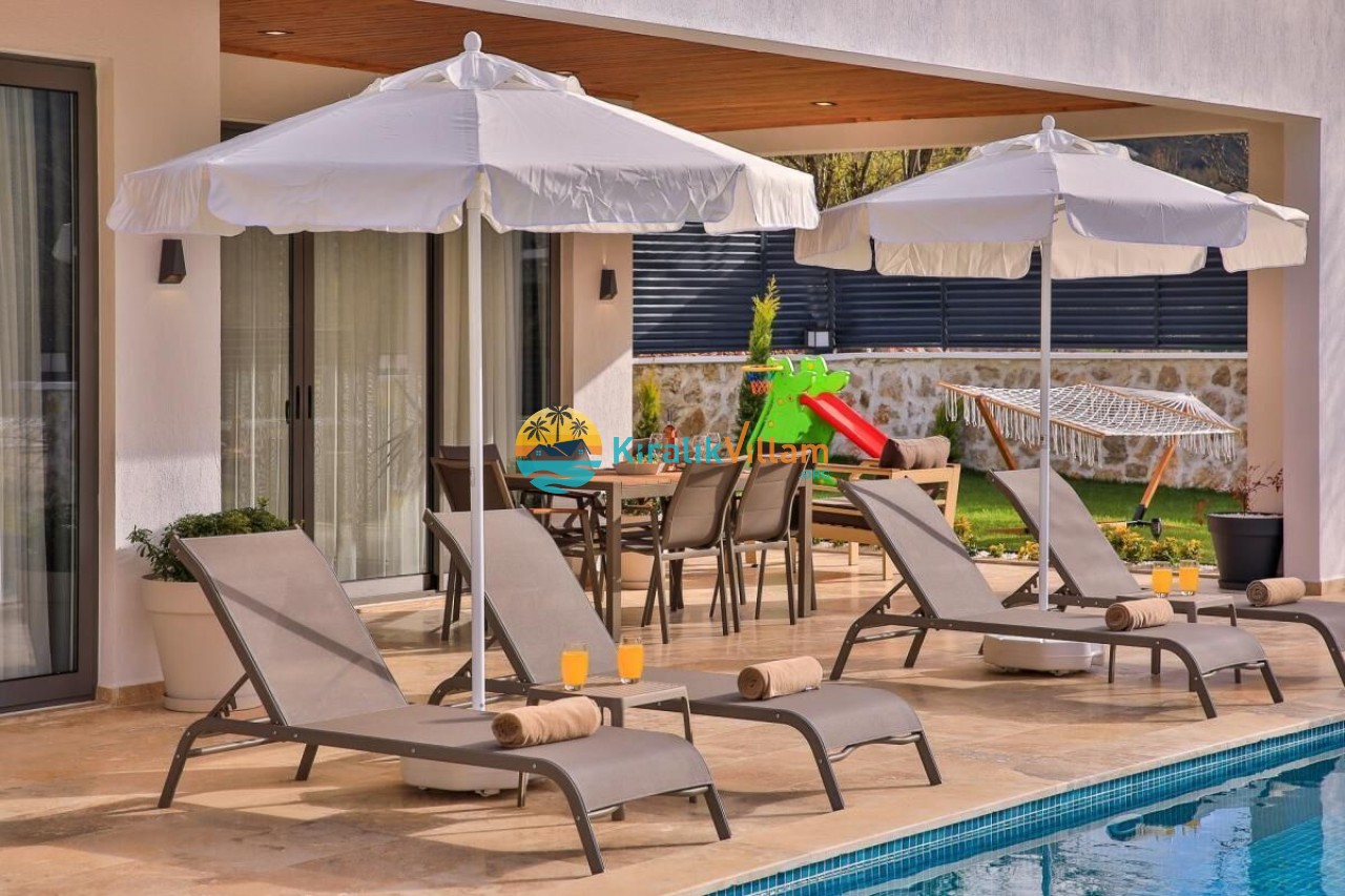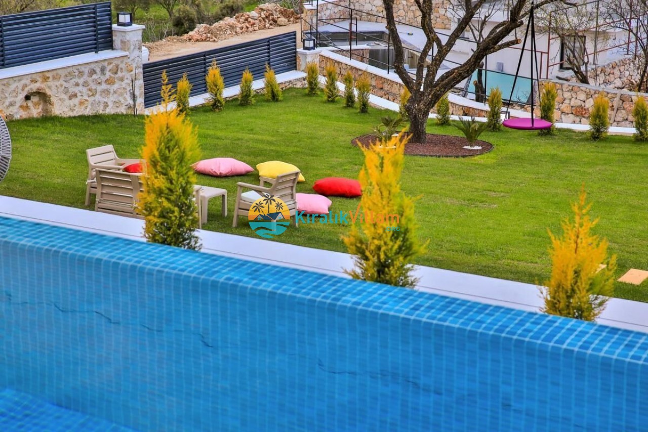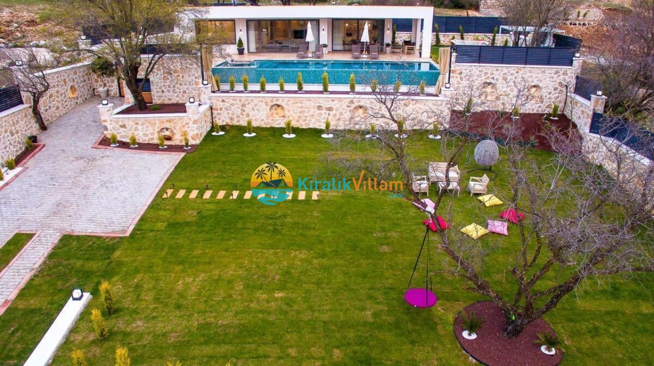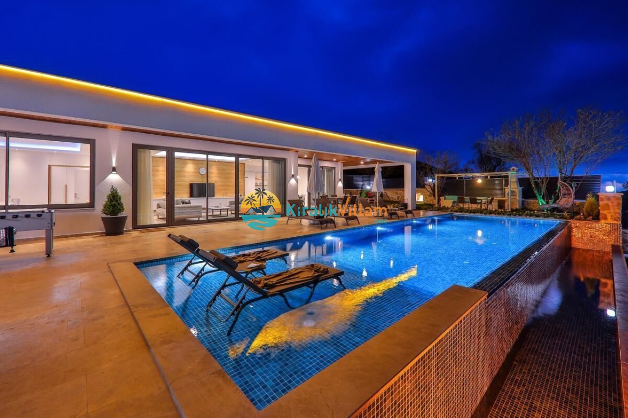 Kalkan Sarıbelen mahallesinde yer almaktadır. 2021 yılında inşa edilen Villamız geniş bahçeli olup size rahat bir tatil geçirmenizi sağlamaktadır. Gözlerden uzak, sakin, korunaklı bir şekilde vakitler geçirebileceğiniz villamız harika konumdadır.Geniş havuzlu tam korunaklı villalarımızdandır. Sarıbelen merkeze yakın konumda yer alan villamız, günlük ihtiyaçlarınıza kolaylıkla ulaşabileceğiniz bir konumdadır. Villamızda bir çok aktivite bulunup çocuklarınız için en keyifli ortam oluşturulmuştur. Hayallerinizin ötesinde bir tatil yaşamanız için bütün konforunuz düşünülmüştür. Lüks bir iç dizayna sahip olan villamız hem balayı çiftlerimiz, hem de çekirdek ailelerimiz için uygun bir seçenektir.