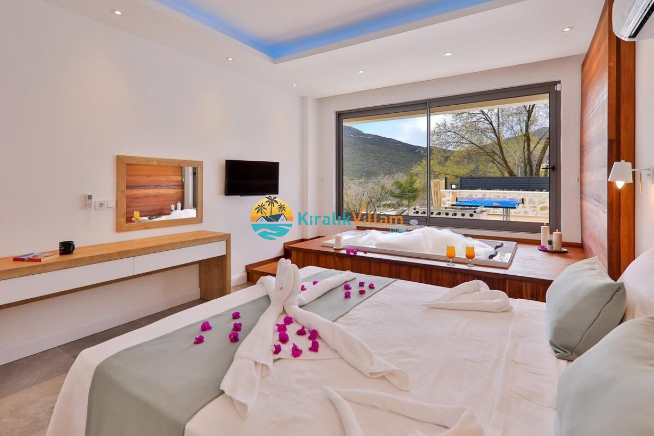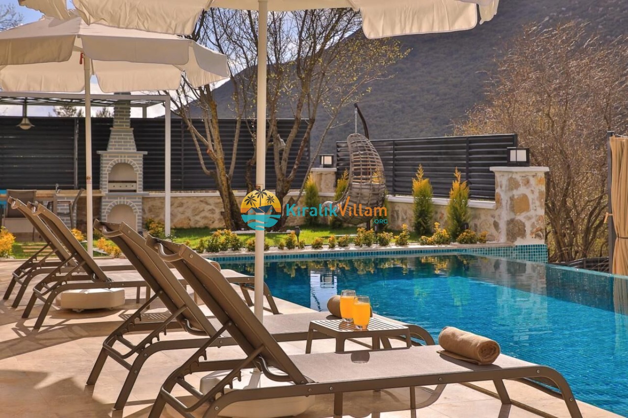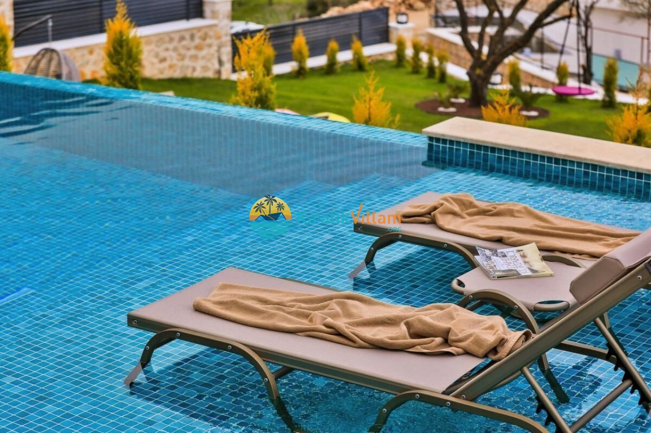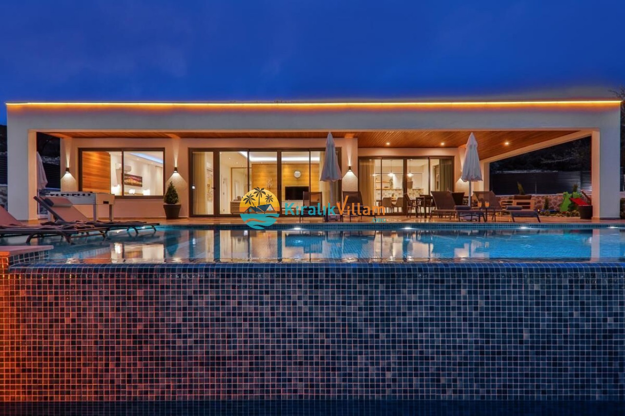 Kalkan Sarıbelen mahallesinde yer almaktadır. 2021 yılında inşa edilen Villamız geniş bahçeli olup size rahat bir tatil geçirmenizi sağlamaktadır. Gözlerden uzak, sakin, korunaklı bir şekilde vakitler geçirebileceğiniz villamız harika konumdadır.Geniş havuzlu tam korunaklı villalarımızdandır. Sarıbelen merkeze yakın konumda yer alan villamız, günlük ihtiyaçlarınıza kolaylıkla ulaşabileceğiniz bir konumdadır. Villamızda bir çok aktivite bulunup çocuklarınız için en keyifli ortam oluşturulmuştur. Hayallerinizin ötesinde bir tatil yaşamanız için bütün konforunuz düşünülmüştür. Lüks bir iç dizayna sahip olan villamız hem balayı çiftlerimiz, hem de çekirdek ailelerimiz için uygun bir seçenektir.