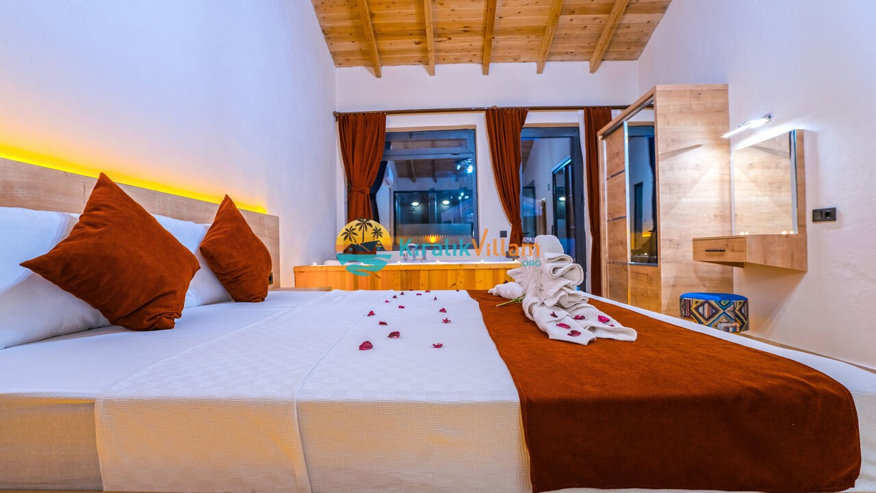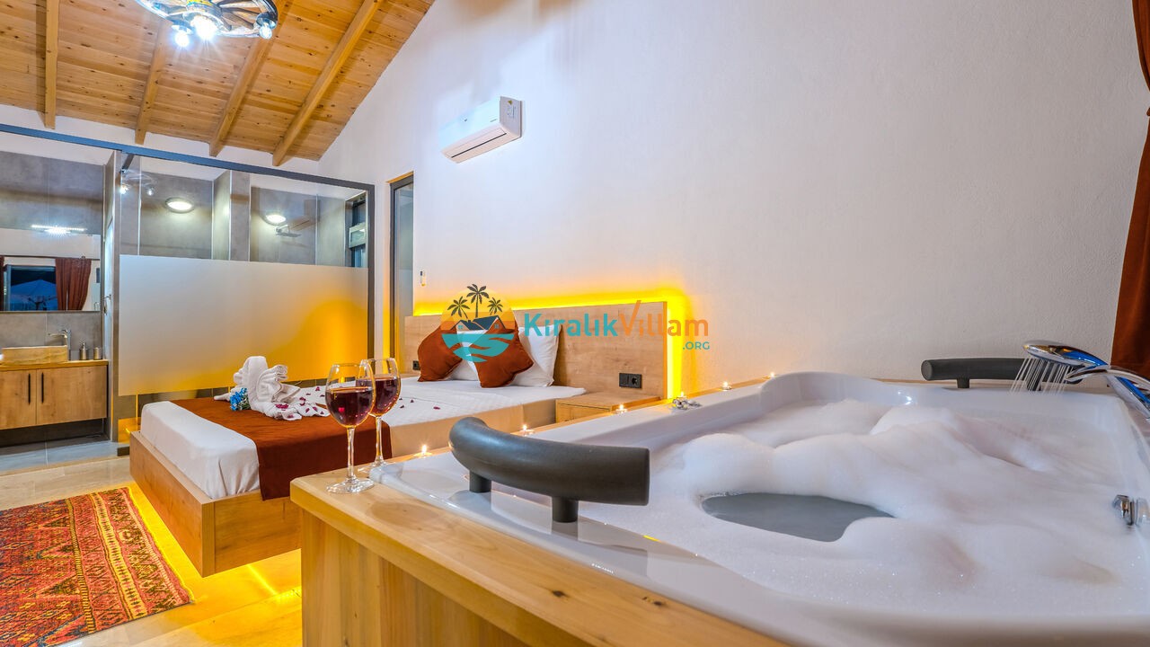1 adet çift kişilik yatak, klima, komodin, elbise dolabı, makyaj masası, jakuzi, banyo ve tuvalet bulunmaktadır.