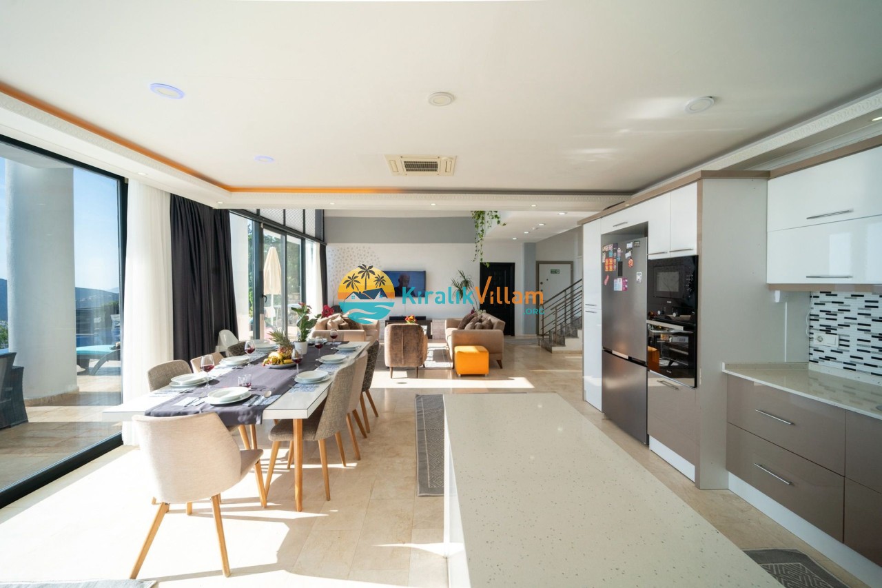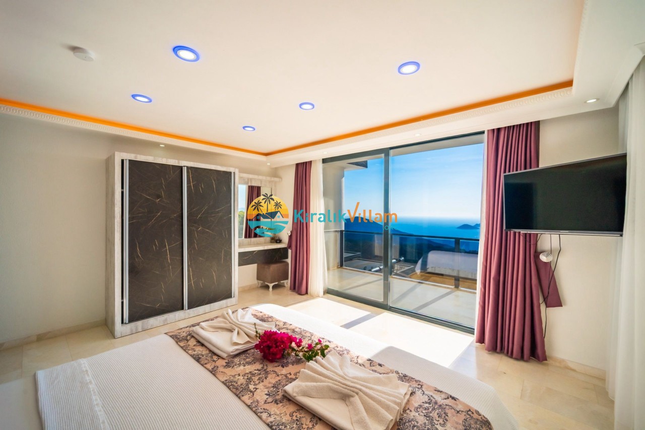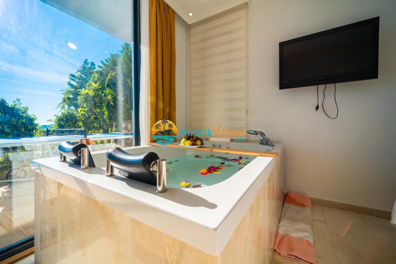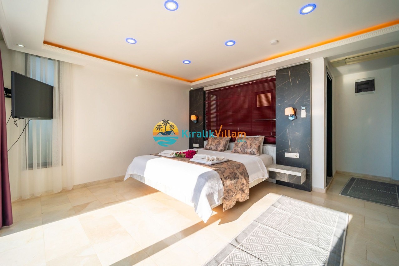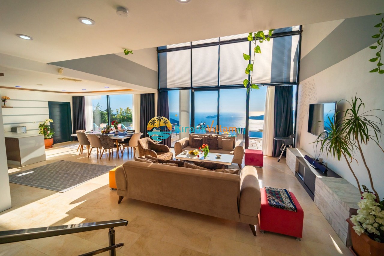 Muhteşem Deniz manzaralı salonunda oturma grubu, plazma televizyon, uydu alıcısı, klima, ütü ve ütü masası, sehpa ve havuz başına çıkış bulunmaktadır.