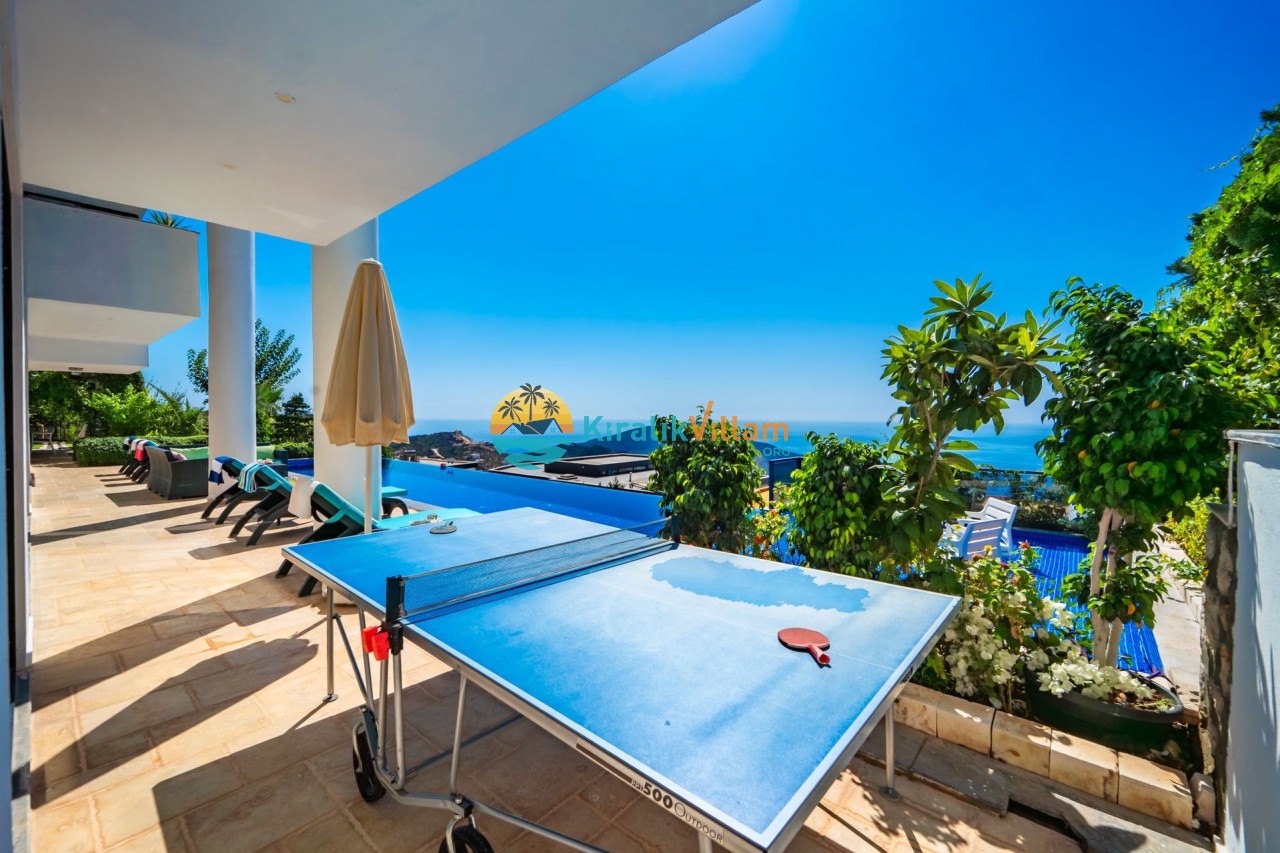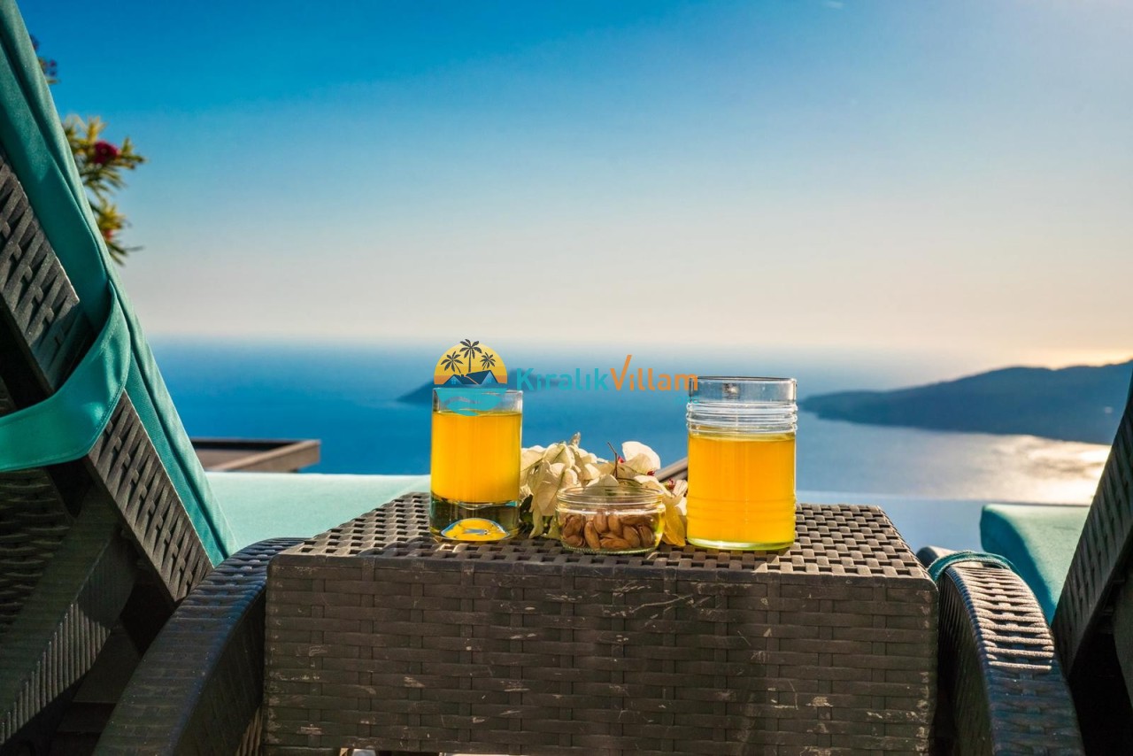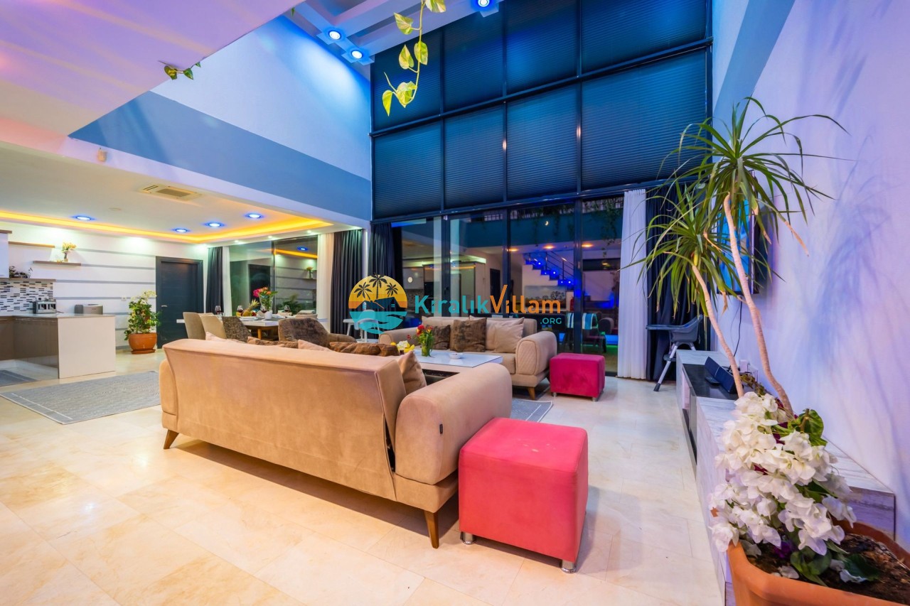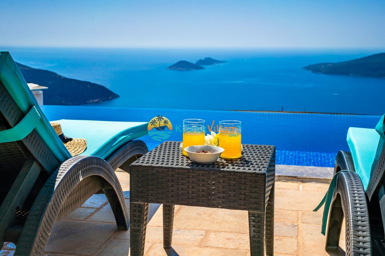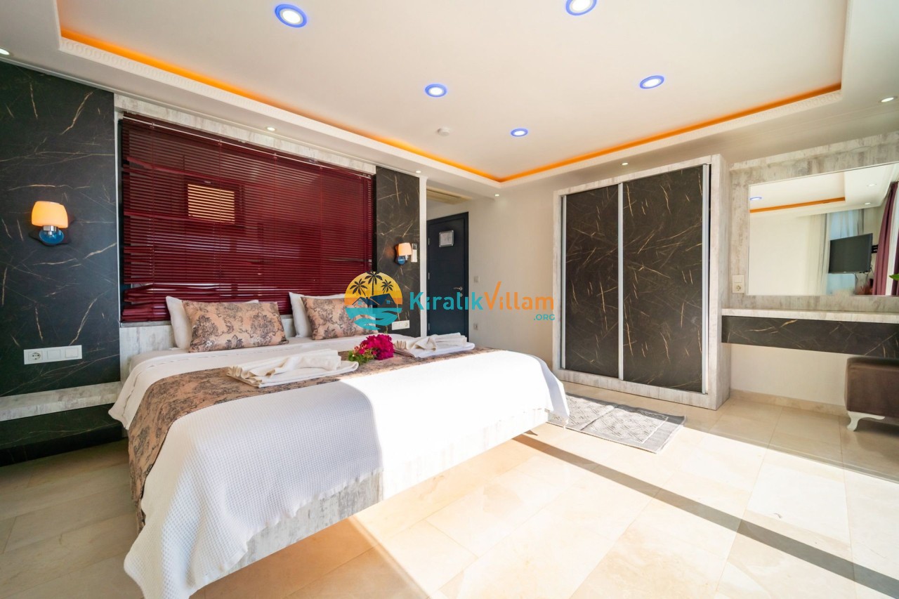 Muhteşem Deniz manzaralı salonunda oturma grubu, plazma televizyon, uydu alıcısı, klima, ütü ve ütü masası, sehpa ve havuz başına çıkış bulunmaktadır.