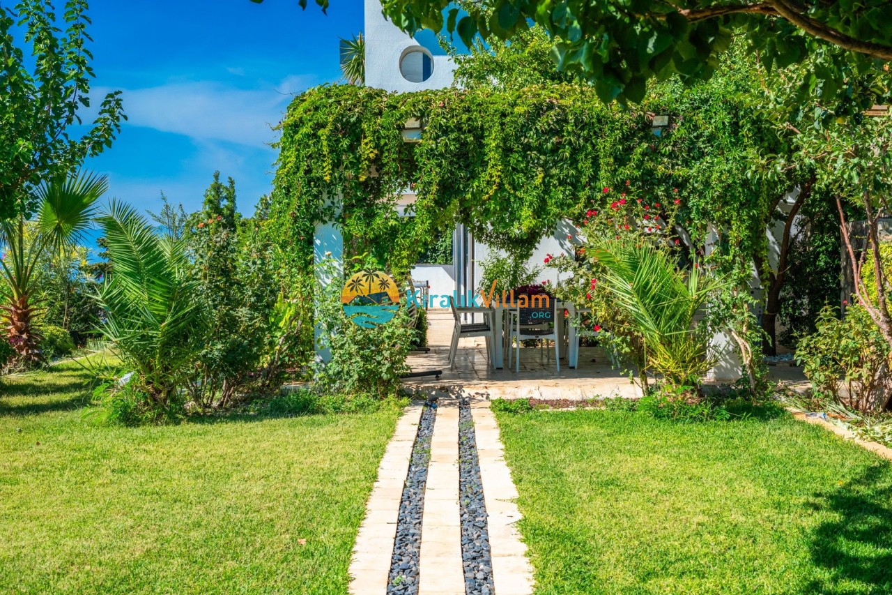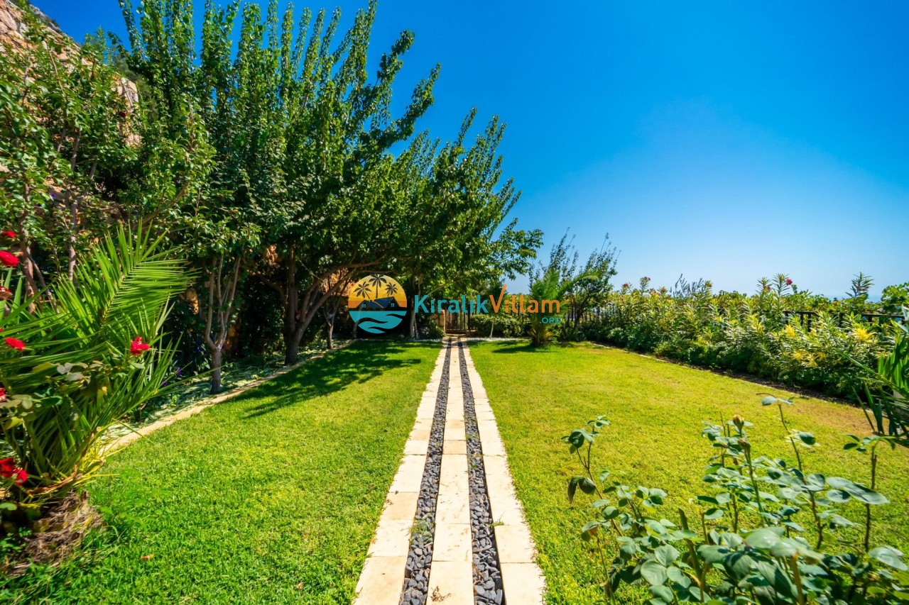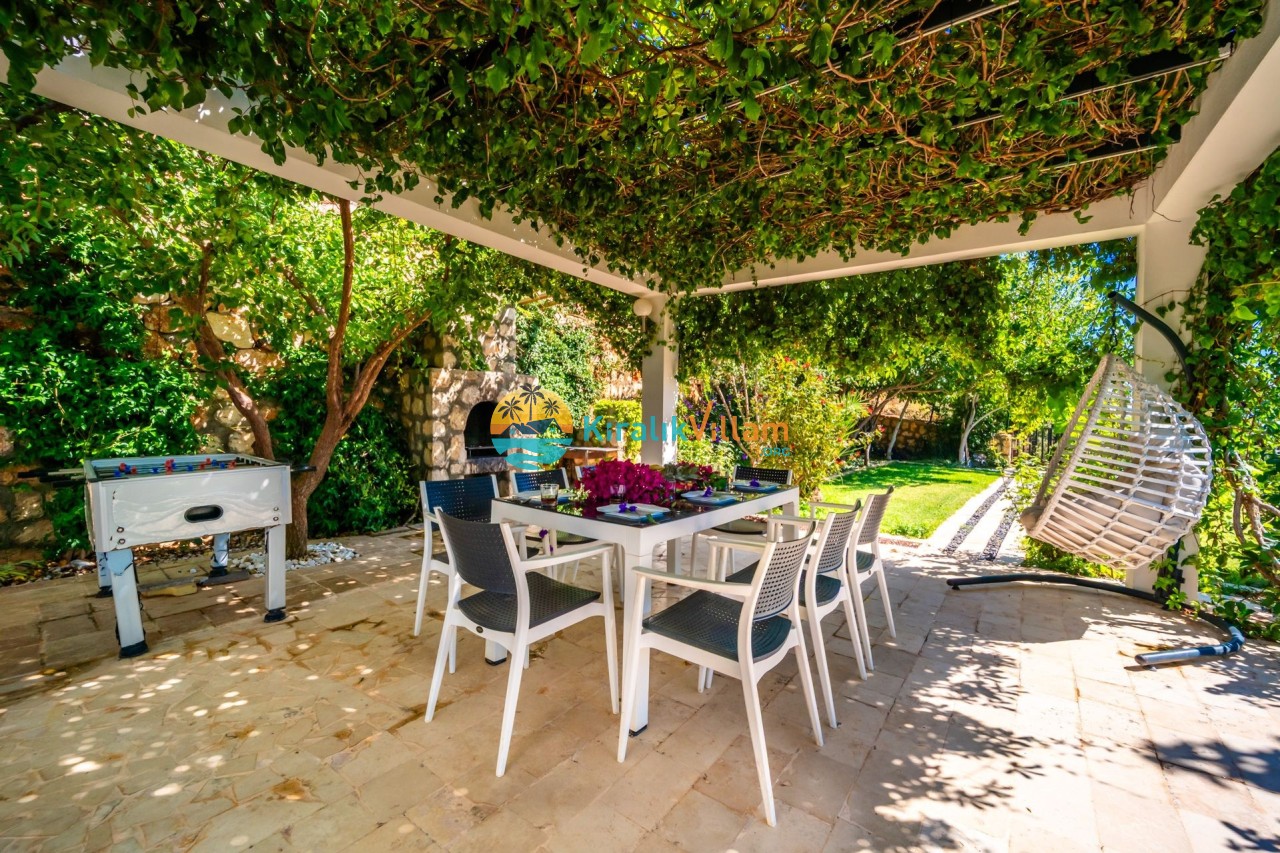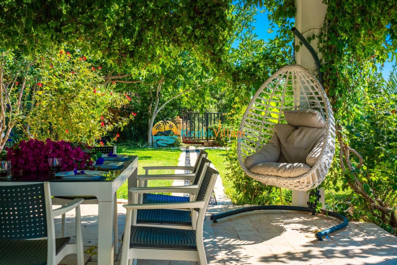 Yeşillikler içerisinde konuma sahip olan bahçesinde yemek masası, sandalyeler, salıncak, çocuk oyun parkı ve barbekü bulunmaktadır.