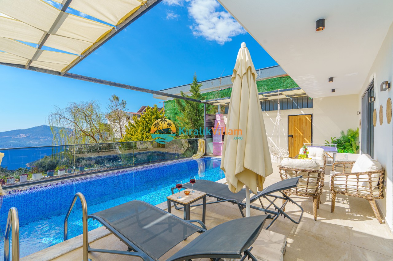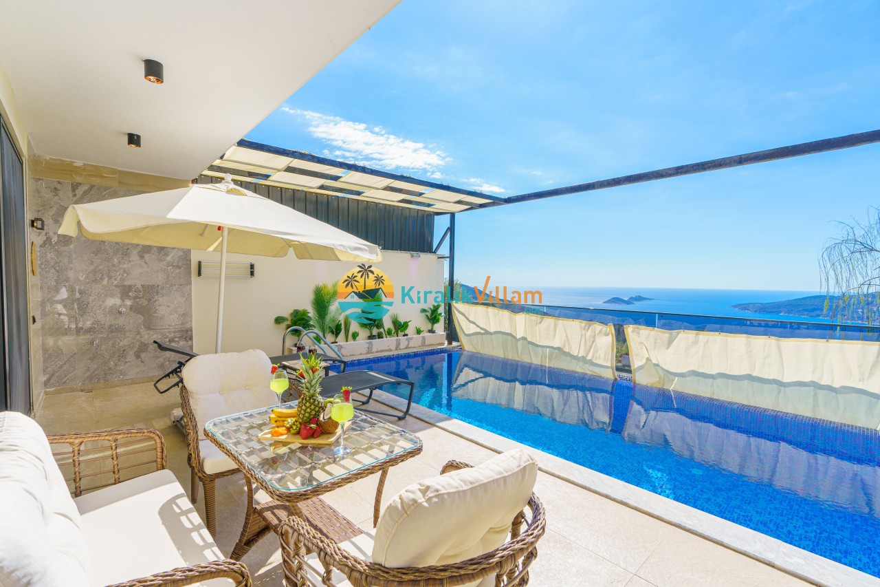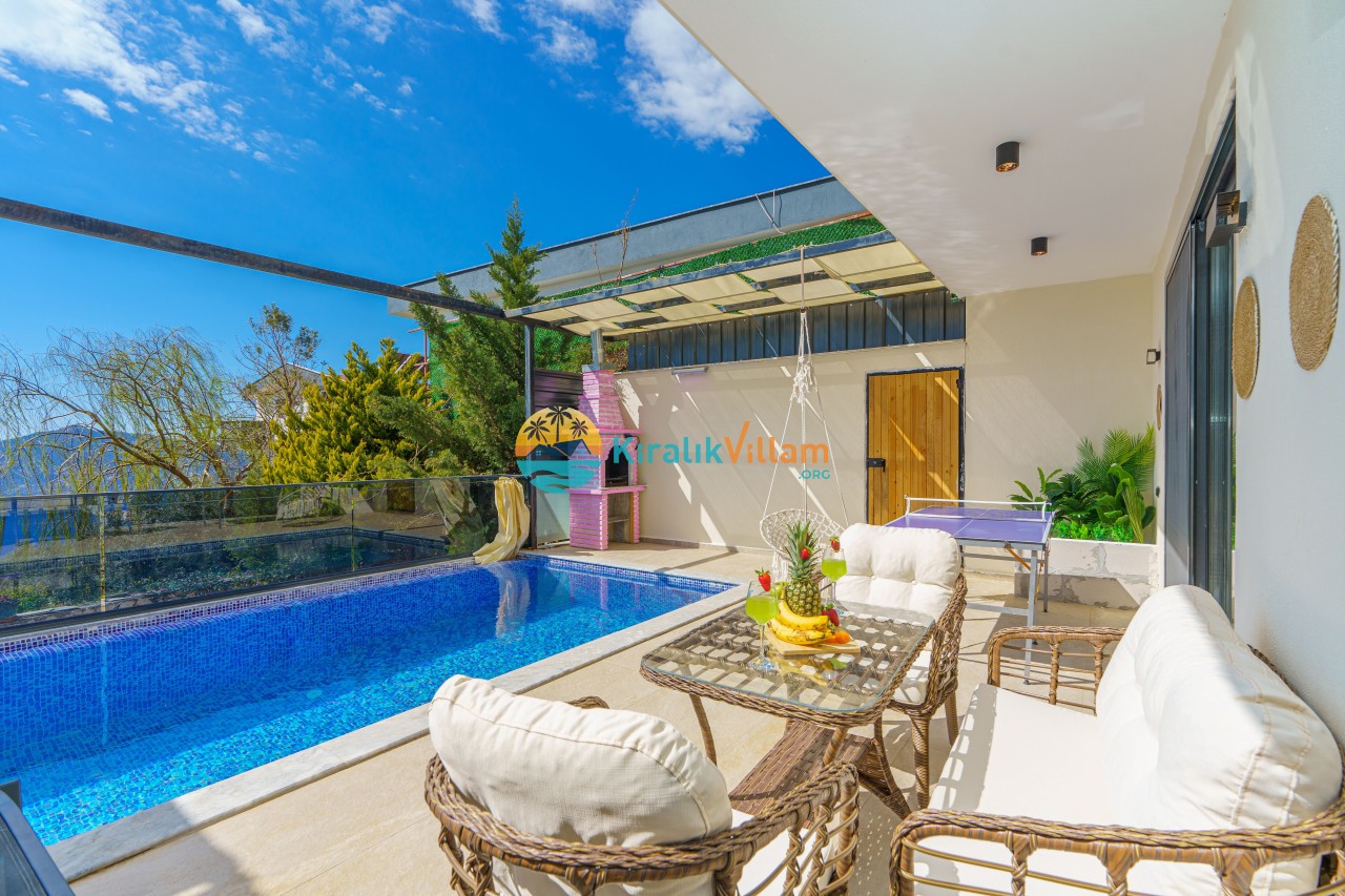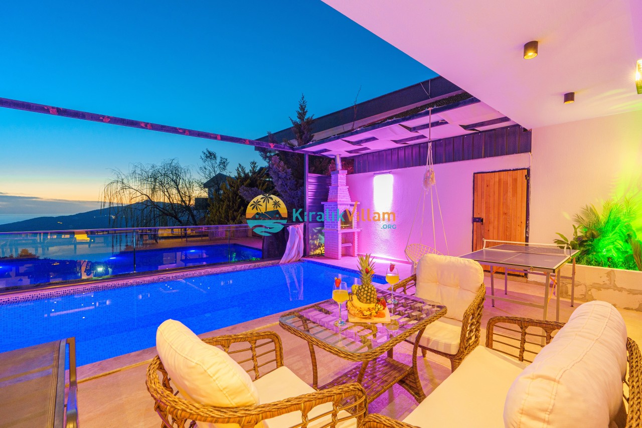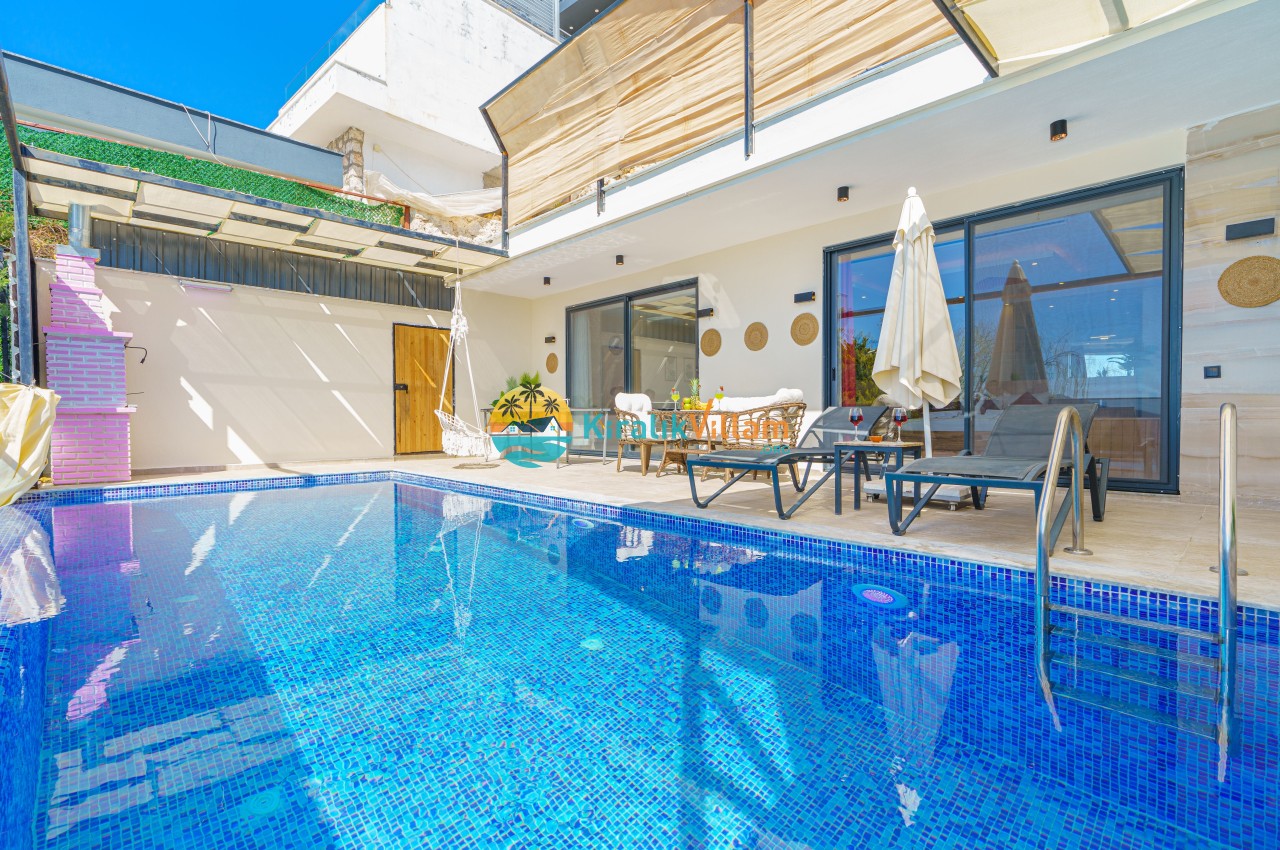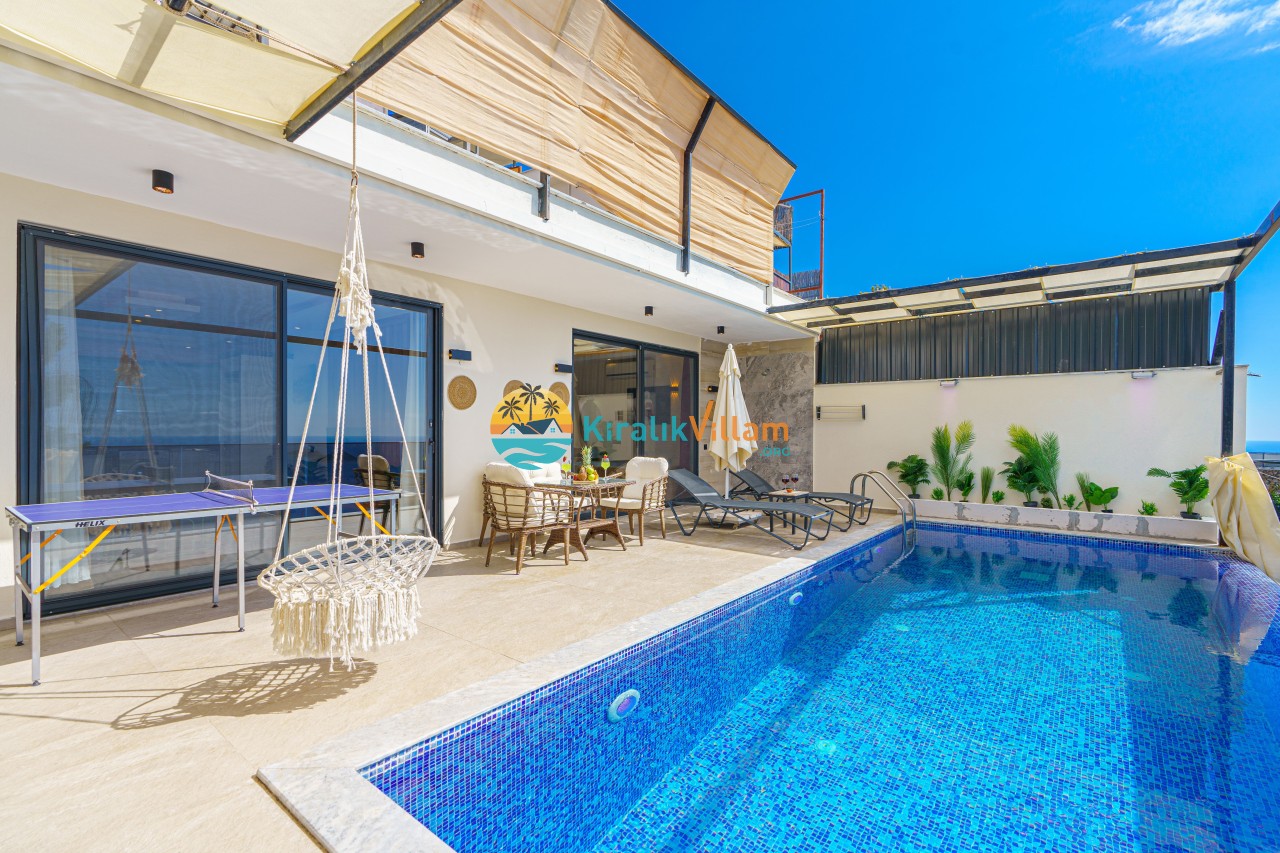 Antalya’nın Kaş ilçesinin Kalkan semtinde, Kördere mevkiinde yer alan benzersiz bir villa var karşımızda. Dik yokuşlardan çıkıp Villaya geldiğinizde gördüğünüz her şey sizi mest edecek. Bu bir balayı villası. Her şey yeni evlenenler için düşünülmüş. Sadece iki kişilik ve 1 yatak bir de banyo bulunuyor. Son derece korunaklı bir havuzu var. Kimseler sizi görmeden sevdiğiniz insanla gündüz gece fark etmeksizin yüzebilirsiniz. Bunun yanı sıra villa da bir de çok özel jakuzi var. Havuzda yüzerken yer gök mavi zira deniz manzarasına karşı yüzüyorsunuz. Villanın hemen yanı başında salıncak için de ne denir ki. İç dekorasyon ise tek kelime muhteşem. İnsan bu villaya gelince bir daha asla çıkmak istemeyebilir.