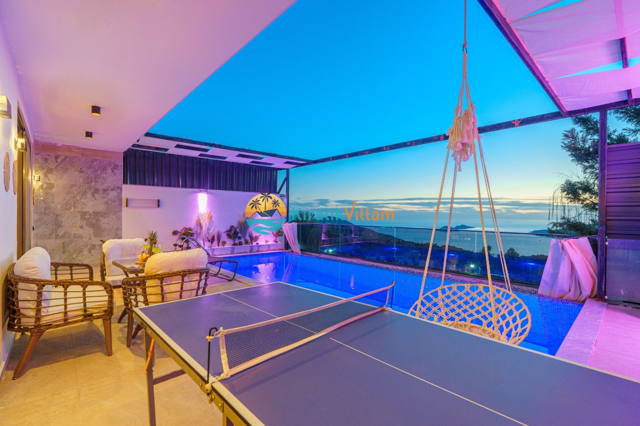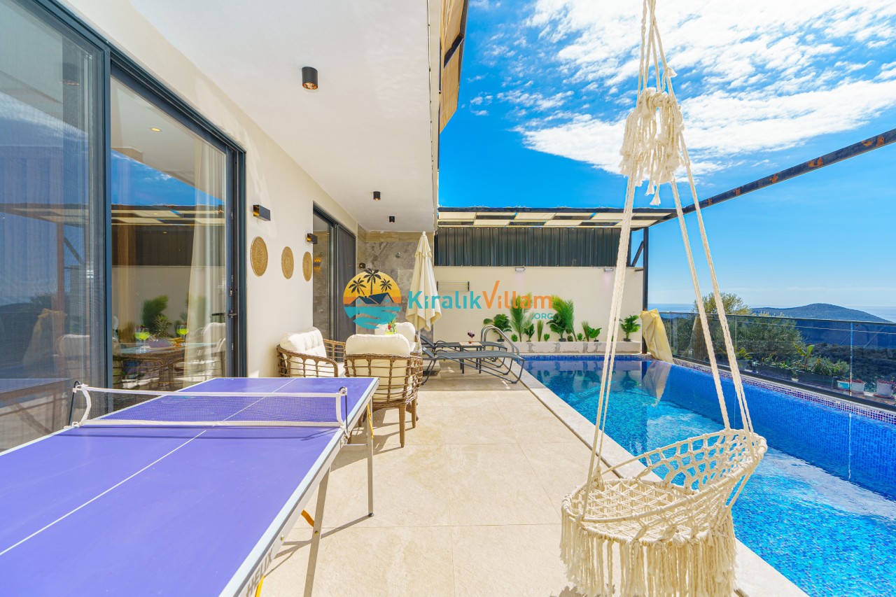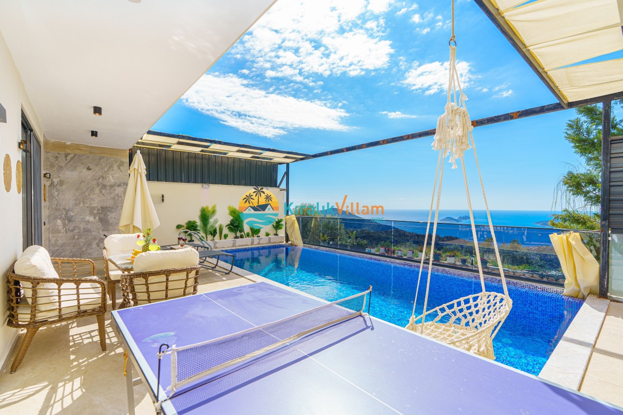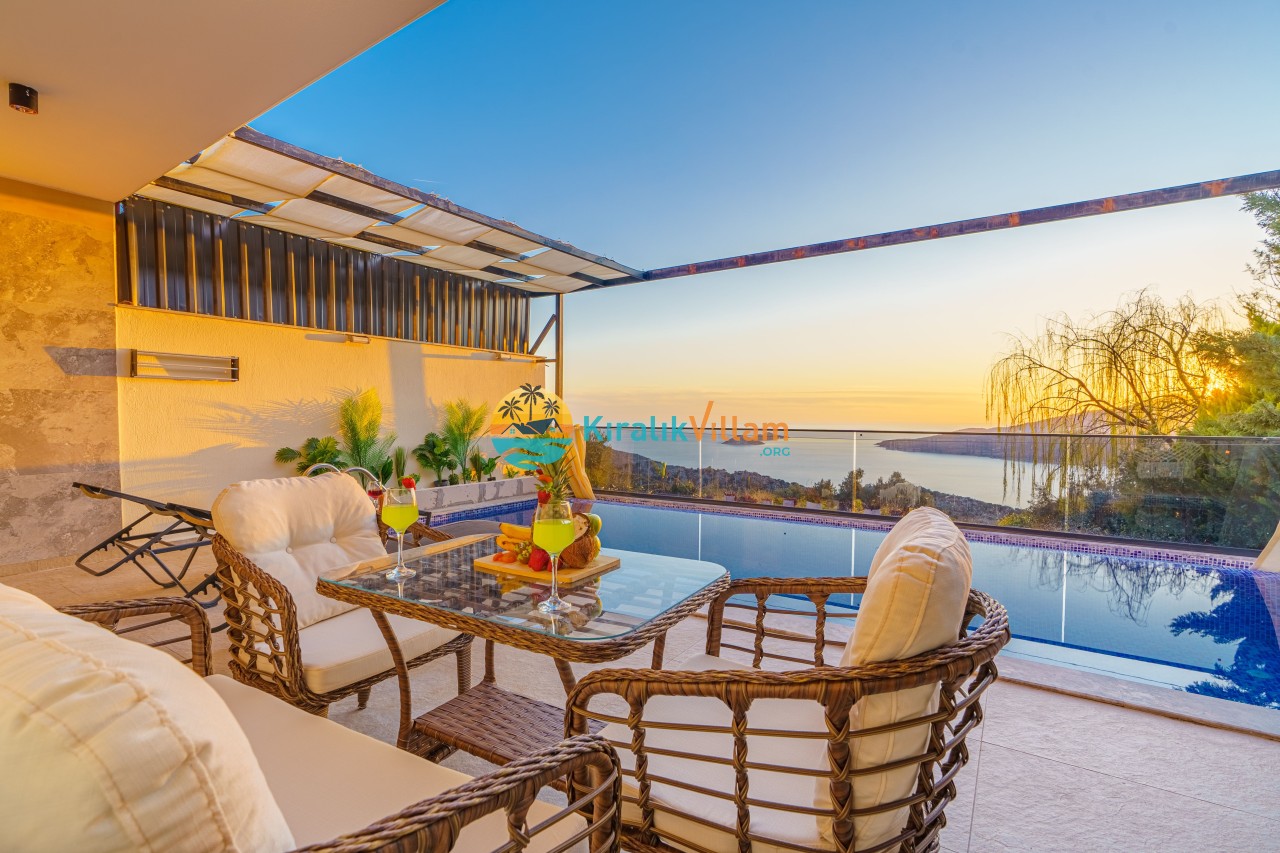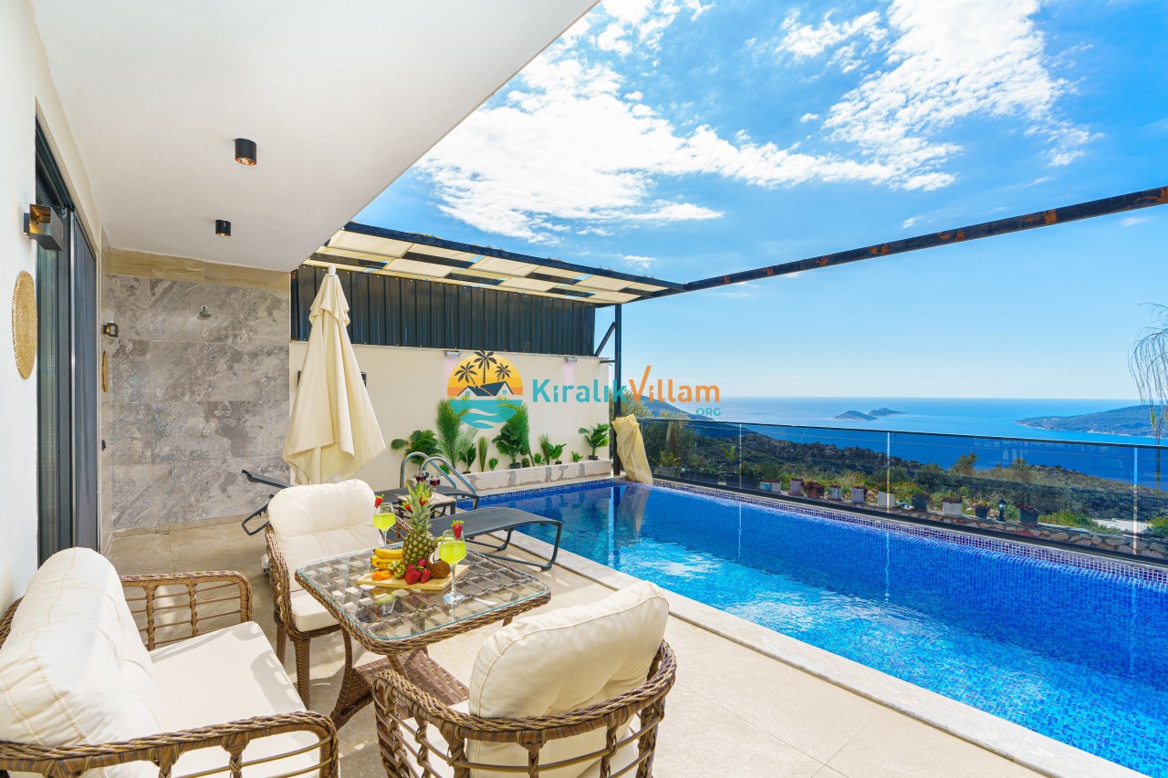 Antalya’nın Kaş ilçesinin Kalkan semtinde, Kördere mevkiinde yer alan benzersiz bir villa var karşımızda. Dik yokuşlardan çıkıp Villaya geldiğinizde gördüğünüz her şey sizi mest edecek. Bu bir balayı villası. Her şey yeni evlenenler için düşünülmüş. Sadece iki kişilik ve 1 yatak bir de banyo bulunuyor. Son derece korunaklı bir havuzu var. Kimseler sizi görmeden sevdiğiniz insanla gündüz gece fark etmeksizin yüzebilirsiniz. Bunun yanı sıra villa da bir de çok özel jakuzi var. Havuzda yüzerken yer gök mavi zira deniz manzarasına karşı yüzüyorsunuz. Villanın hemen yanı başında salıncak için de ne denir ki. İç dekorasyon ise tek kelime muhteşem. İnsan bu villaya gelince bir daha asla çıkmak istemeyebilir.