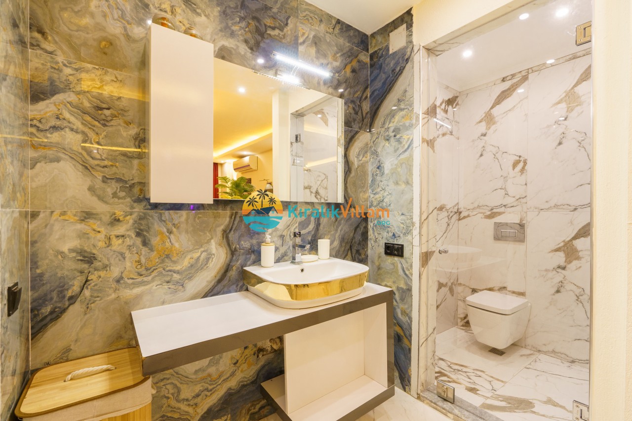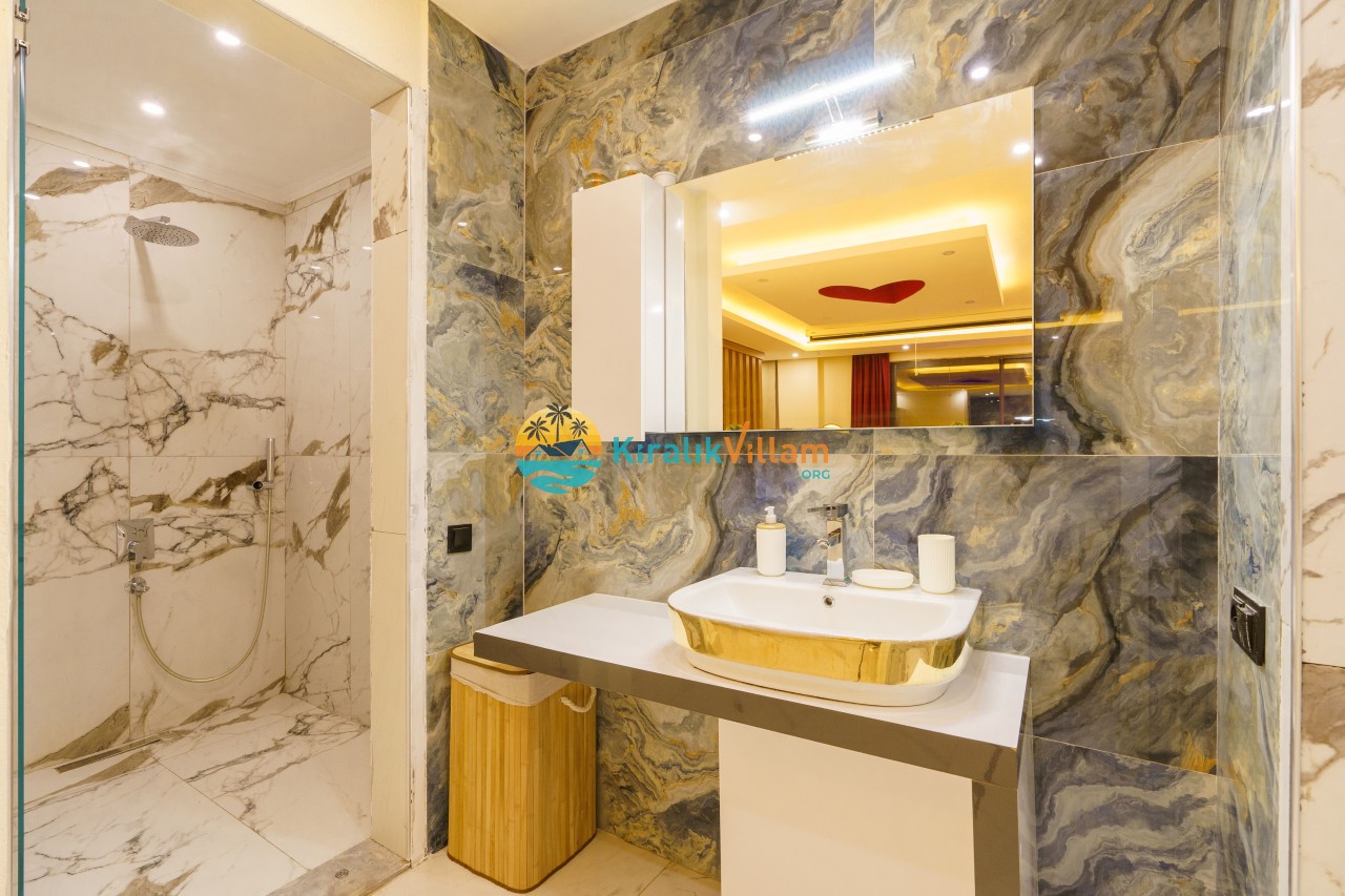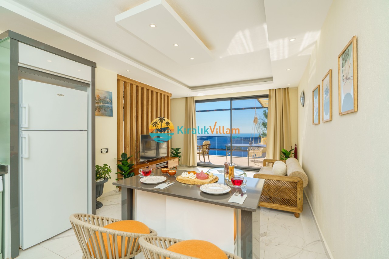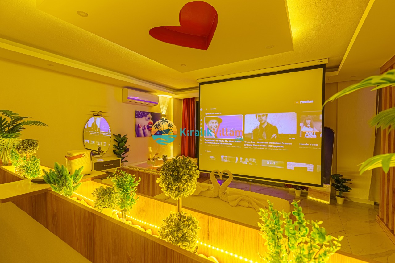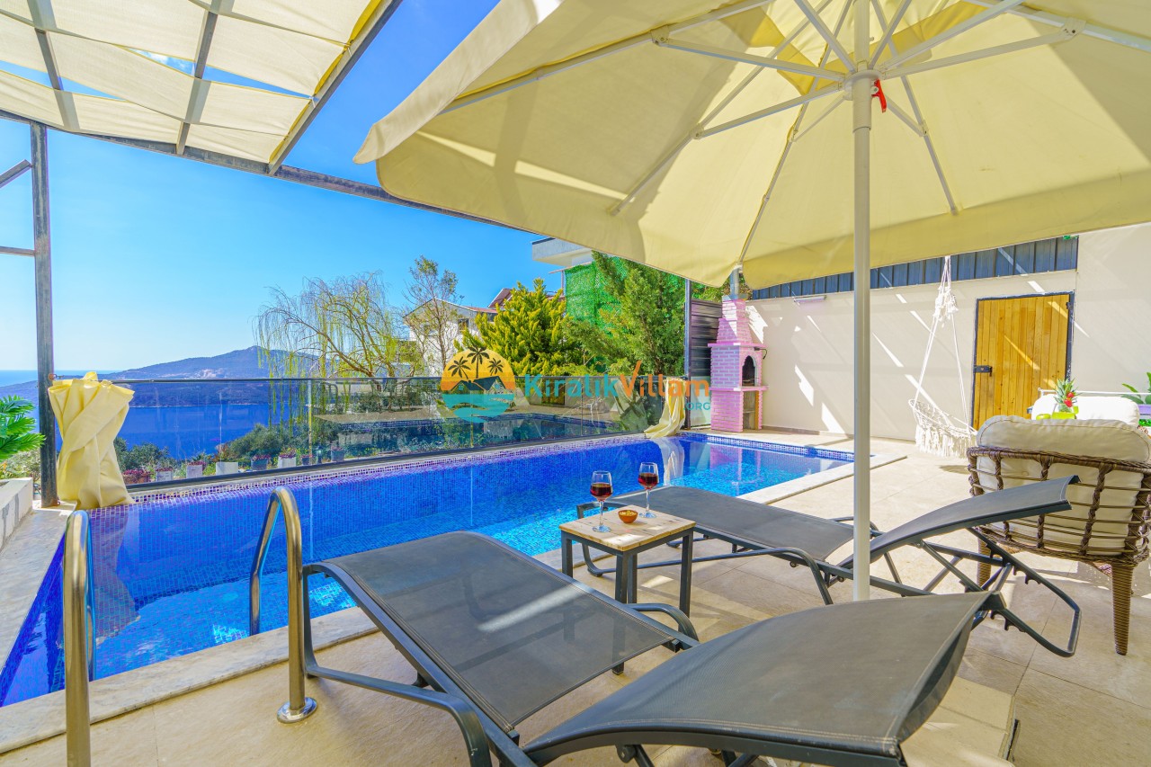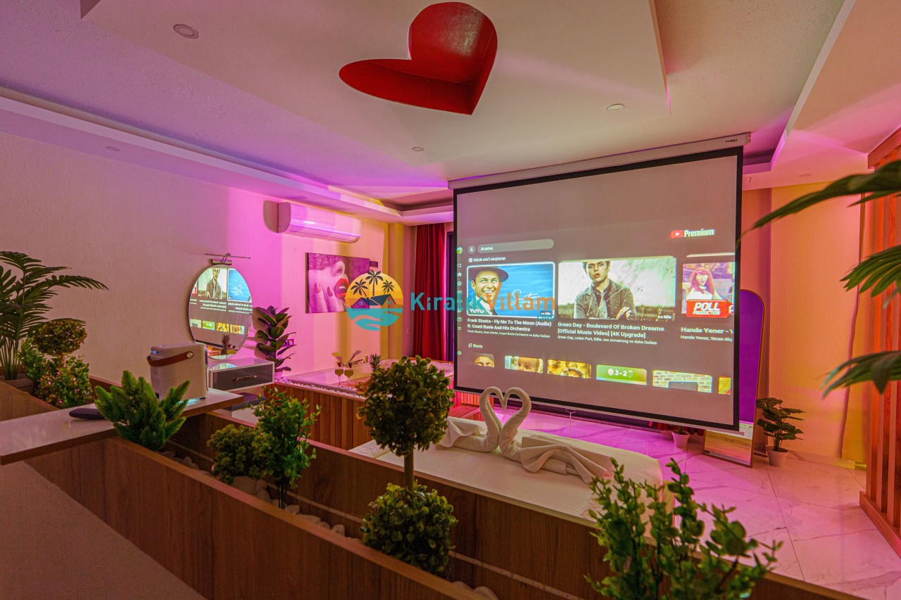 Antalya’nın Kaş ilçesinin Kalkan semtinde, Kördere mevkiinde yer alan benzersiz bir villa var karşımızda. Dik yokuşlardan çıkıp Villaya geldiğinizde gördüğünüz her şey sizi mest edecek. Bu bir balayı villası. Her şey yeni evlenenler için düşünülmüş. Sadece iki kişilik ve 1 yatak bir de banyo bulunuyor. Son derece korunaklı bir havuzu var. Kimseler sizi görmeden sevdiğiniz insanla gündüz gece fark etmeksizin yüzebilirsiniz. Bunun yanı sıra villa da bir de çok özel jakuzi var. Havuzda yüzerken yer gök mavi zira deniz manzarasına karşı yüzüyorsunuz. Villanın hemen yanı başında salıncak için de ne denir ki. İç dekorasyon ise tek kelime muhteşem. İnsan bu villaya gelince bir daha asla çıkmak istemeyebilir.