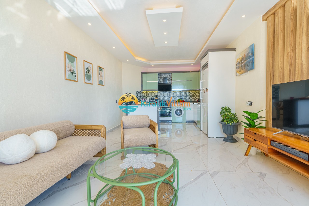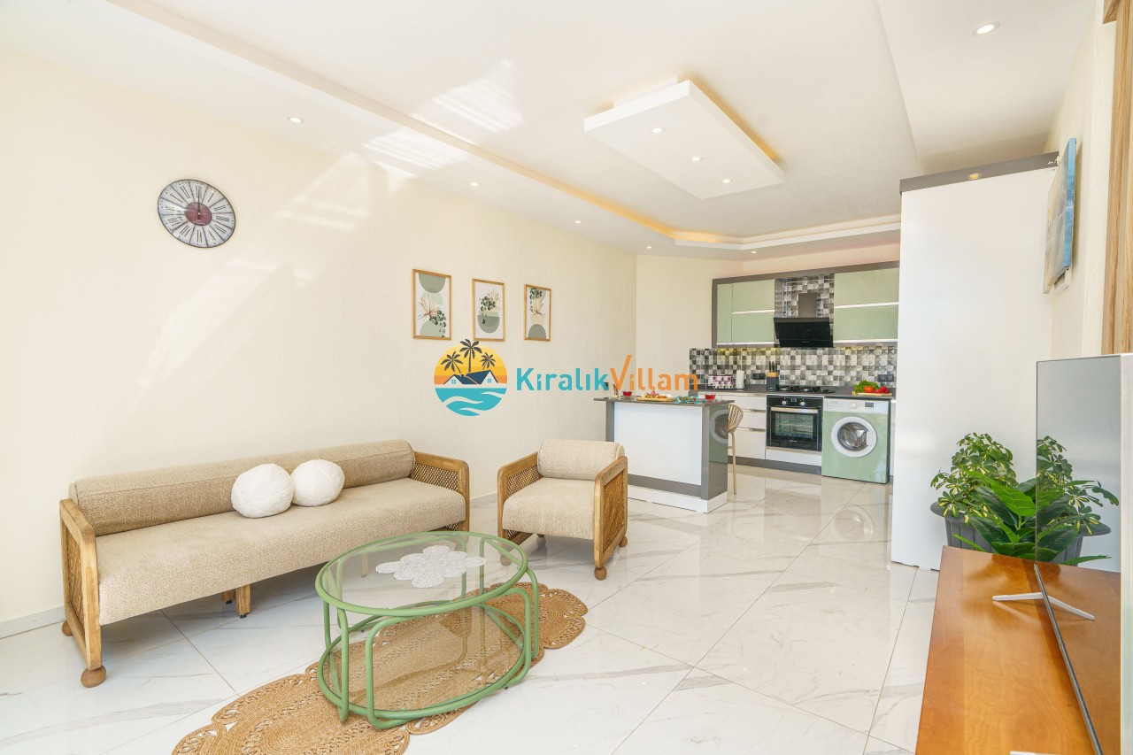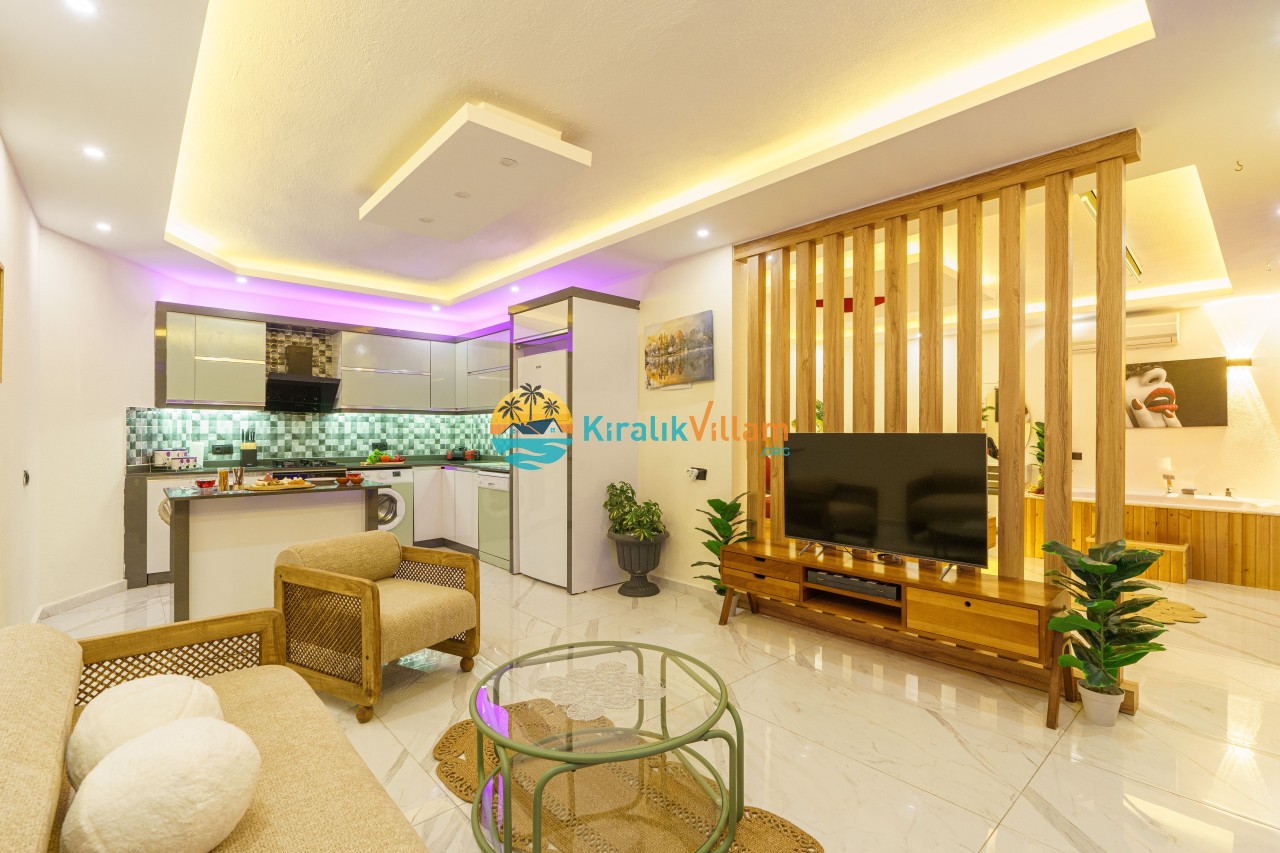 Salon : Salon içerisinde modern oturma grubu, uydu alıcı, LCD TV, internet için modem, klima ve havuz terasına çıkış bulunmaktadır.
