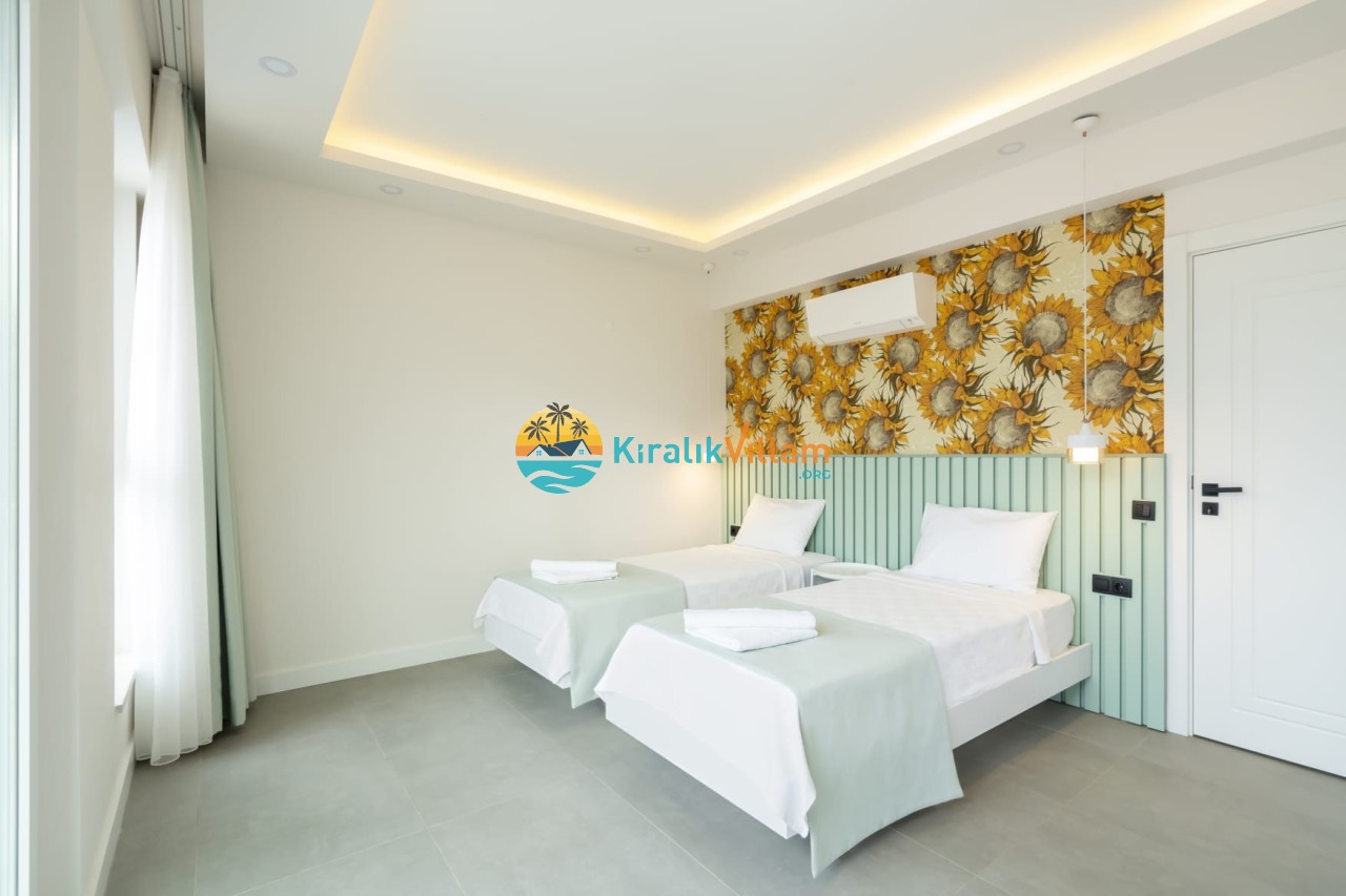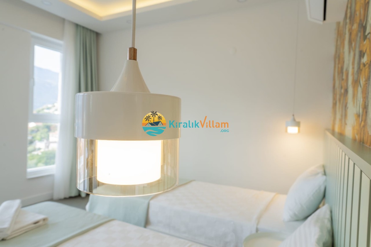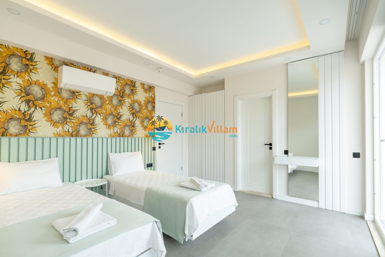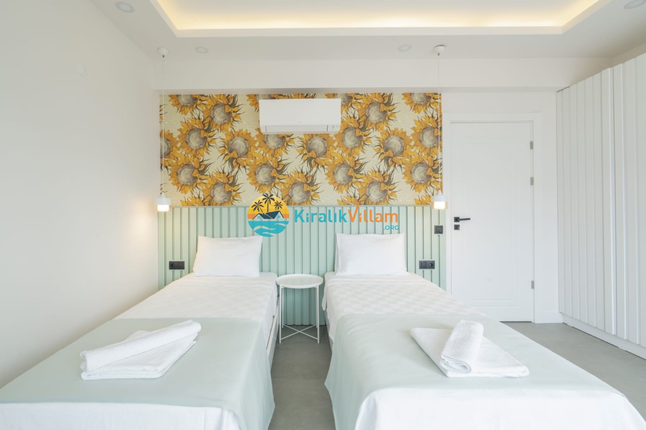 Yatak odası içerisinde, 2 adet tek kişilik yatak, klima, elbise dolabı, komodin, makyaj masası, banyo ve tuvalet yer almaktadır.