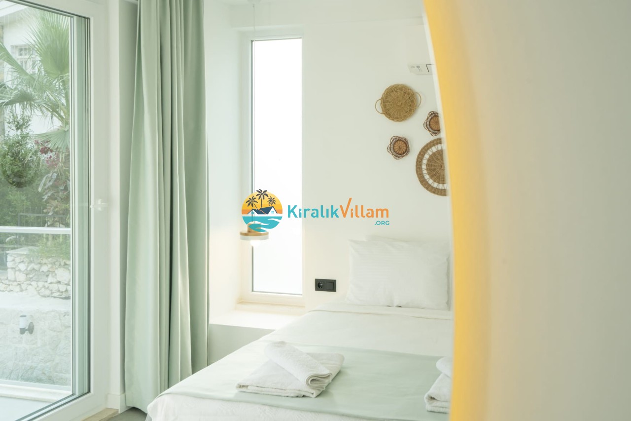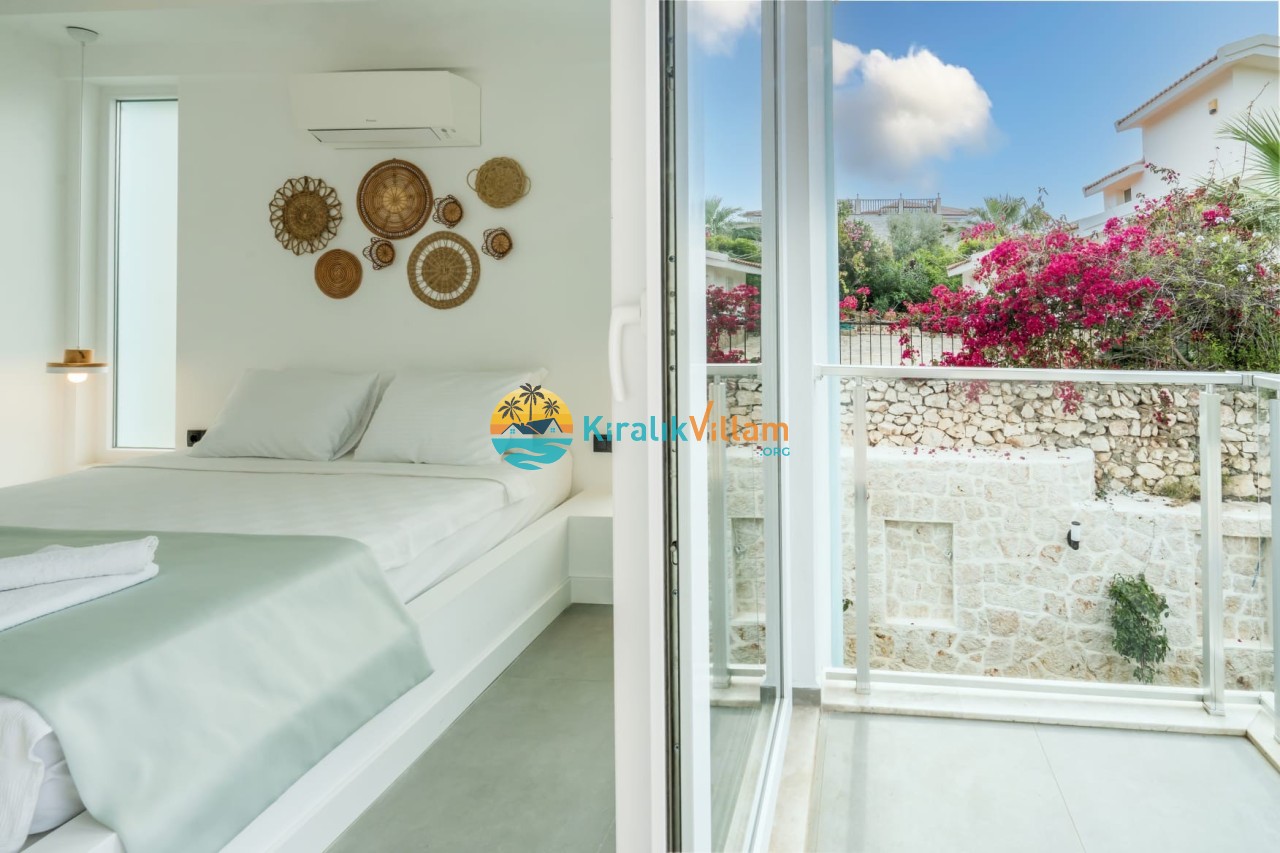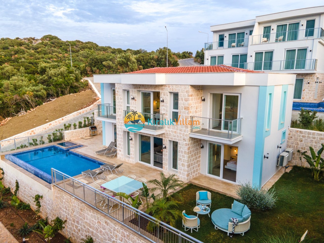 Kaş’ın Çukurbağ Yarımadası bölgesinde bulunan villa Kanyon Bloom, deniz manzarası ile gözleri kamaştıran bir jakuzili villa olarak dikkat çekiyor. Kanyon Bloom’un konumu, muhteşem bir doğa manzarasına sahip olmasını sağlıyor. Villamız, yarımada kıyısında konumlandırılmıştır ve Akdeniz’in kristal berraklığındaki sularının, dağların muhteşem manzarasıyla birlikte sizleri karşılıyor. Villamızın denize yakın konumda olması, konukların özel plaj ve iskeleden yararlanabilmenize olanak tanıyor. Villamızın mimarisi ise modern ve lüks bir tasarımı yansıtıyor. Yer yer taş dokunuşları ile sıcak bir atmosfer yaratılırken, cam duvarlarla doğayla iç içe olunuyor. Villanın iç mekanları ferah ve aydınlık bir atmosfer yaratırken, aynı zamanda 4 yatak odasında ve her odada deniz manzarası sunuluyor. Villamızın içinde yer alan jakuzi ve özel havuz sayesinde kendinizi adeta bir spa merkezindeymiş gibi hissedebilirsiniz.