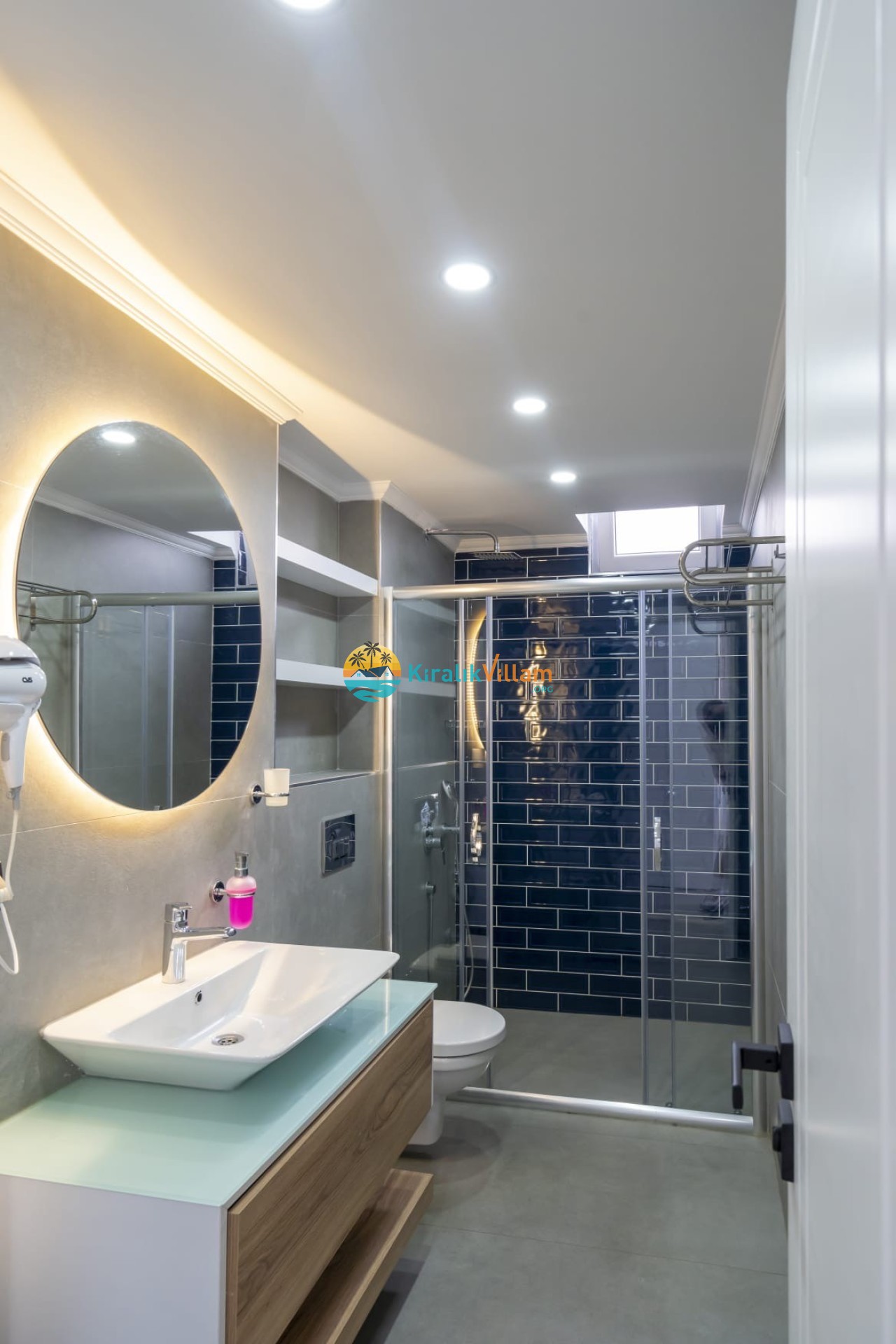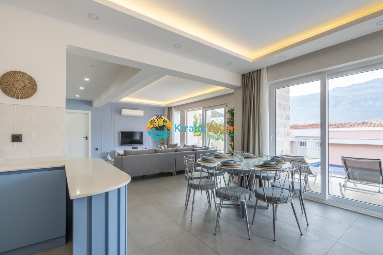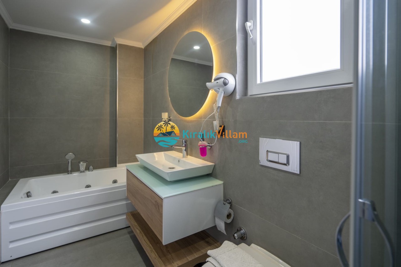 Kaş’ın Çukurbağ Yarımadası bölgesinde bulunan villa Kanyon Bloom, deniz manzarası ile gözleri kamaştıran bir jakuzili villa olarak dikkat çekiyor. Kanyon Bloom’un konumu, muhteşem bir doğa manzarasına sahip olmasını sağlıyor. Villamız, yarımada kıyısında konumlandırılmıştır ve Akdeniz’in kristal berraklığındaki sularının, dağların muhteşem manzarasıyla birlikte sizleri karşılıyor. Villamızın denize yakın konumda olması, konukların özel plaj ve iskeleden yararlanabilmenize olanak tanıyor. Villamızın mimarisi ise modern ve lüks bir tasarımı yansıtıyor. Yer yer taş dokunuşları ile sıcak bir atmosfer yaratılırken, cam duvarlarla doğayla iç içe olunuyor. Villanın iç mekanları ferah ve aydınlık bir atmosfer yaratırken, aynı zamanda 4 yatak odasında ve her odada deniz manzarası sunuluyor. Villamızın içinde yer alan jakuzi ve özel havuz sayesinde kendinizi adeta bir spa merkezindeymiş gibi hissedebilirsiniz.