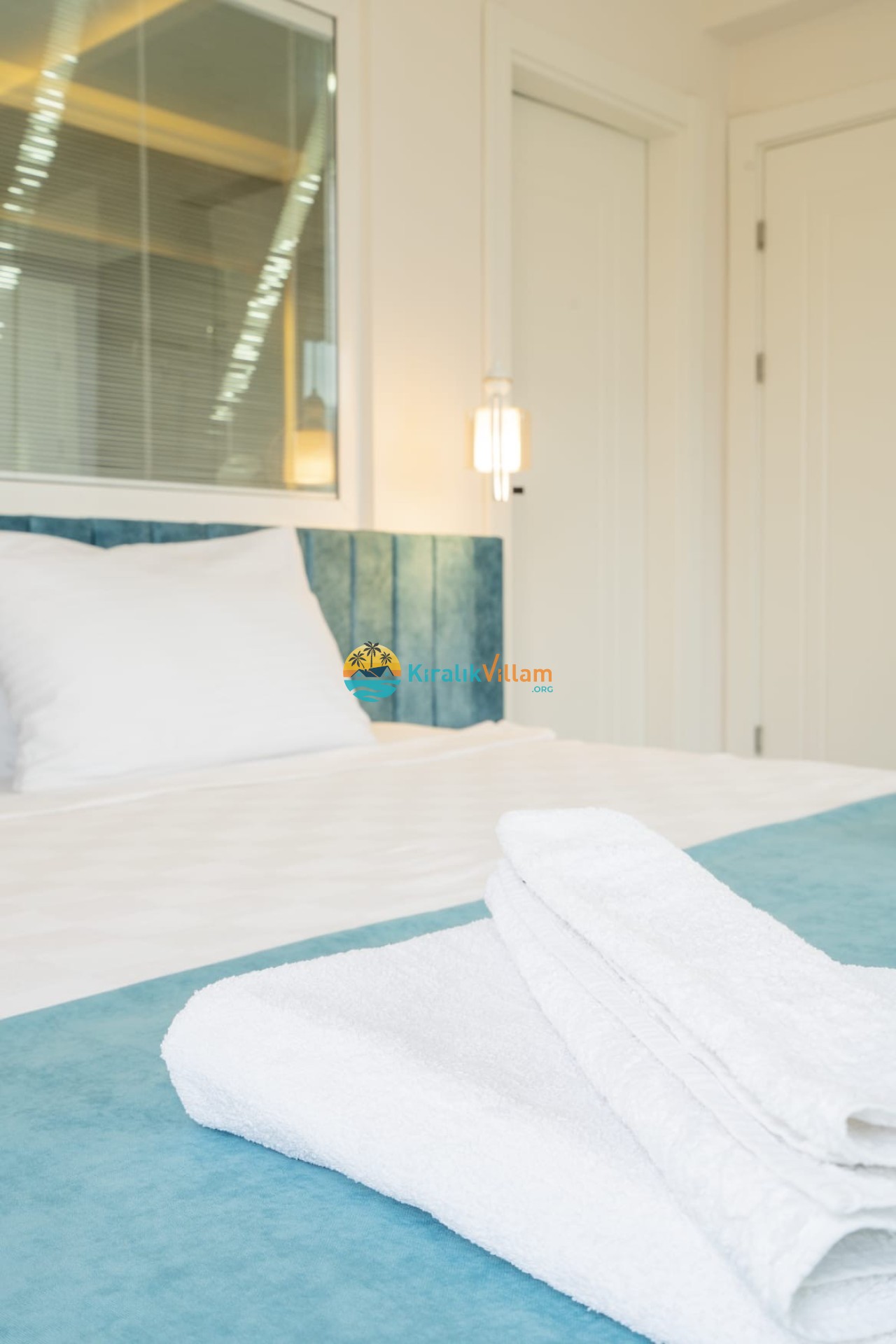 Yatak odası içerisinde, 1 adet çift kişilik yatak, klima, elbise dolabı, komodin, makyaj masası, jakuzi, banyo ve tuvalet yer almaktadır.