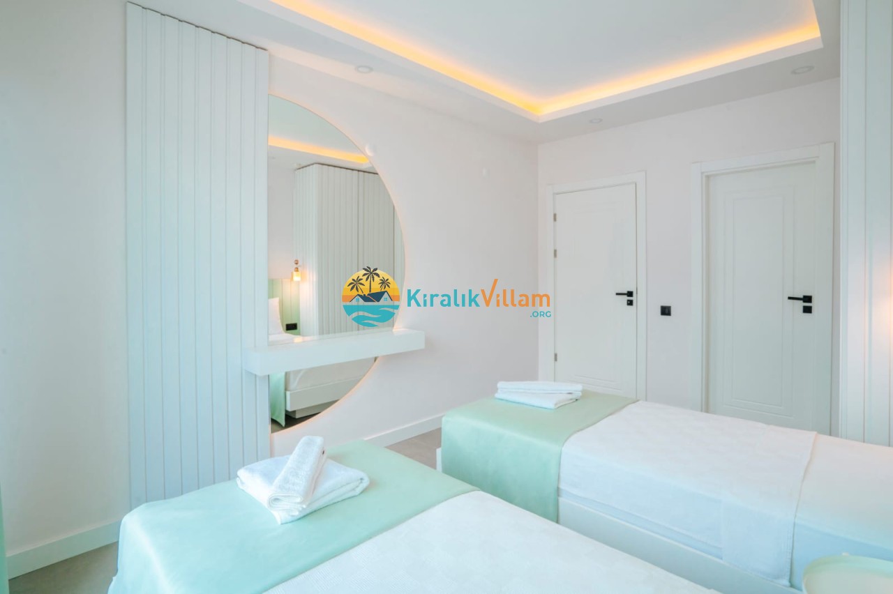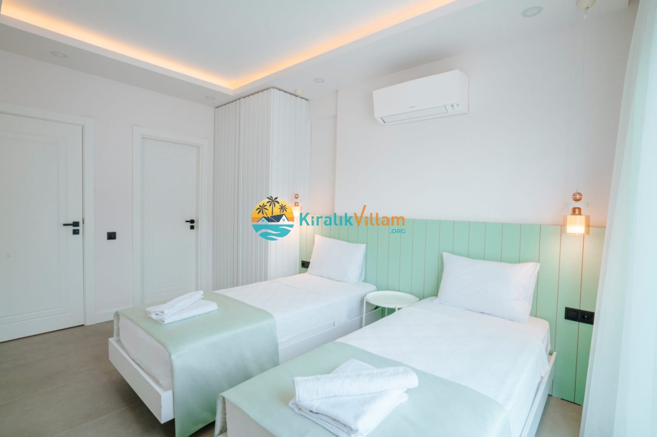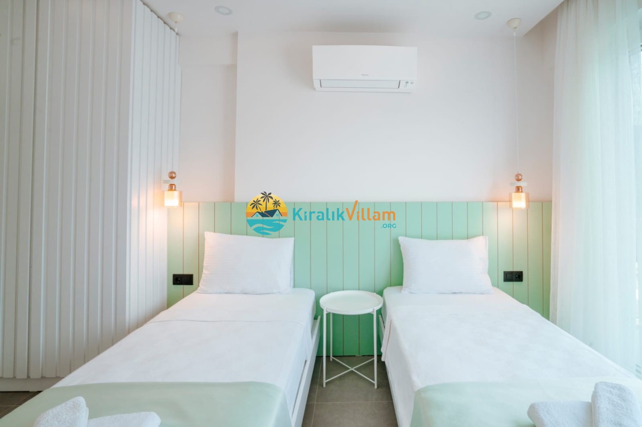 2.Yatak Odası: 2 adet tek kişilik yatak, klima, elbise dolabı, komodin, makyaj masası, banyo ve tuvalet yer almaktadır.