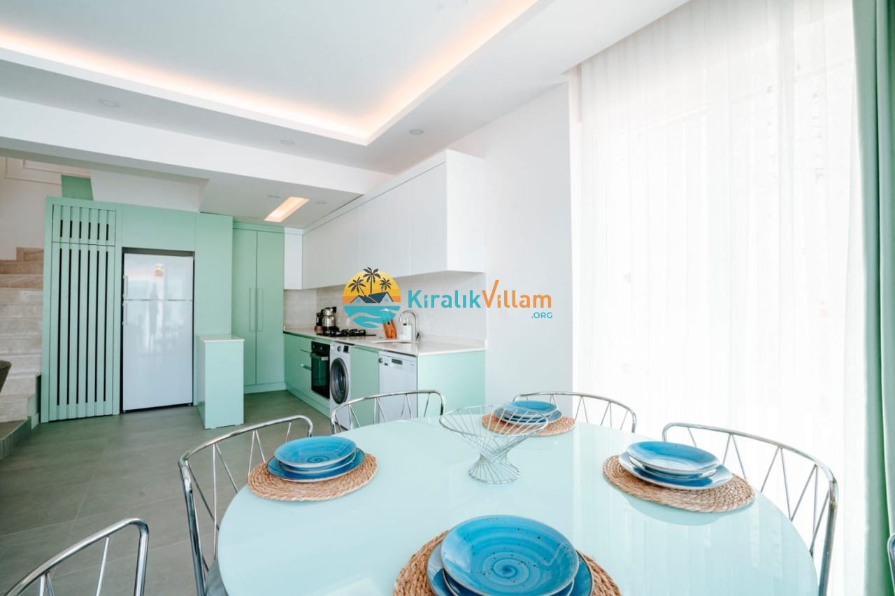 Mutfak: Amerikan mutfak içerisinde, buzdolabı, bulaşık makinası, çamaşır makinası, yemek masası, yemek takımı, ankastre fırın, mikrodalga fırın, tost makinası, ankastre ocak, çay makinası, tava, tencere takımı ve gerekli olan tüm mutfak gereçleri yer almaktadır.