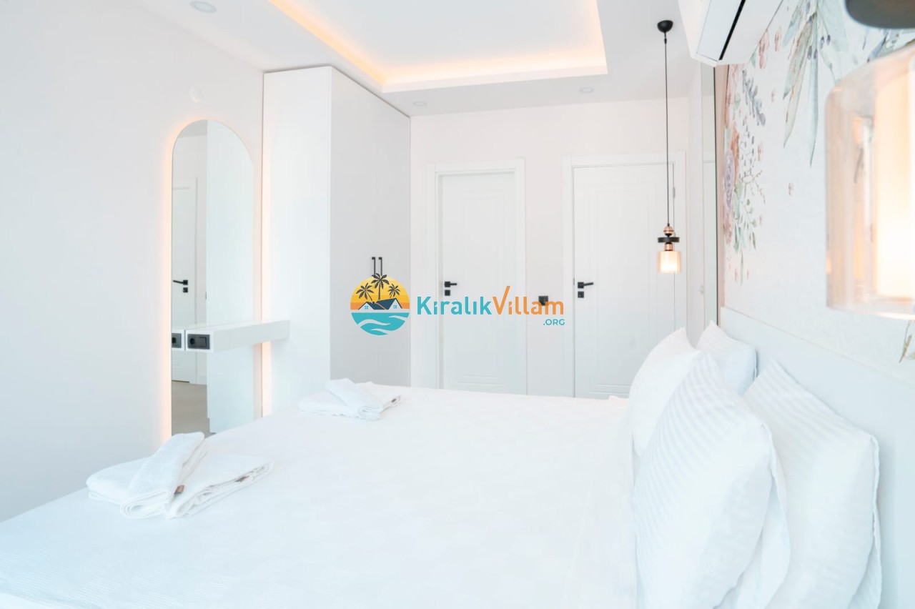 3.Yatak Odası: 1 adet çift kişilik yatak, klima, elbise dolabı, komodin, makyaj masası, banyo ve tuvalet yer almaktadır.