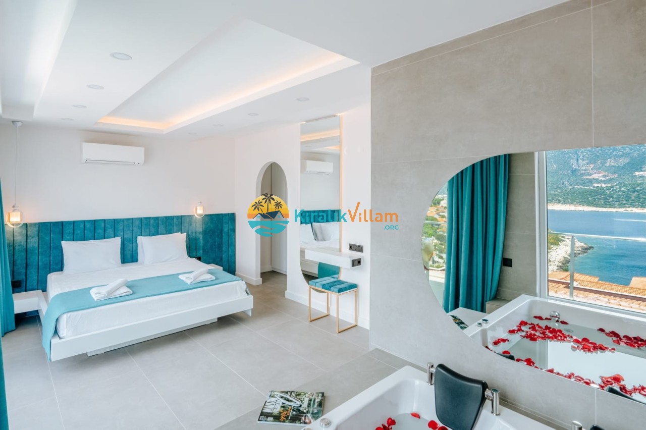 Villa Kanyon Nova, Kaş’ın Çukurbağ Yarımadası bölgesinde yer alan Kanyon Nova, bölgenin en lüks konaklama seçeneklerinden biri olarak öne çıkıyor. Villa Kanyon Nova, modern mimarisi ve şık tasarımı ile göz kamaştırıyor. Villamızın içinde, eksiksiz mutfak, oturma odası, yemek alanı, jakuzi ve üç yatak odası bulunuyor. Tüm yatak odaları deniz manzaralı ve özel banyoya sahiptir. Ayrıca her yatak odasında klima ve ücretsiz Wi-Fi erişimi gibi modern olanaklar da mevcuttur. Jakuzide keyifli zaman geçirebilir, deniz manzarasına karşı şarap içebilir ve Akdeniz’in muhteşem gün batımını izleyebilirsiniz. Kaş’ın Çukurbağ Yarımadası bölgesinde yer alan villa Kanyon Nova’yı tercih ederek, kendinize özel bir tatil deneyimi yaşama fırsatı yakalayabilirsiniz.