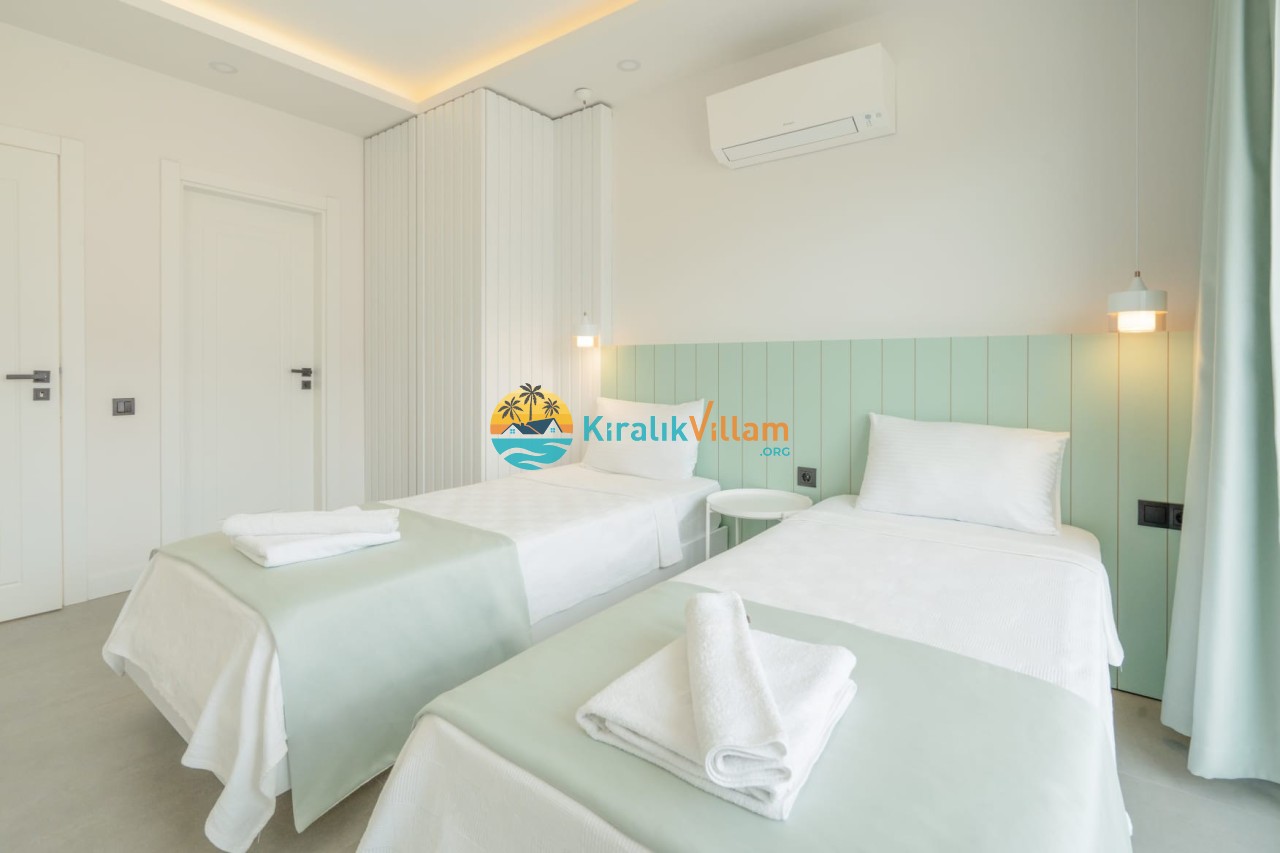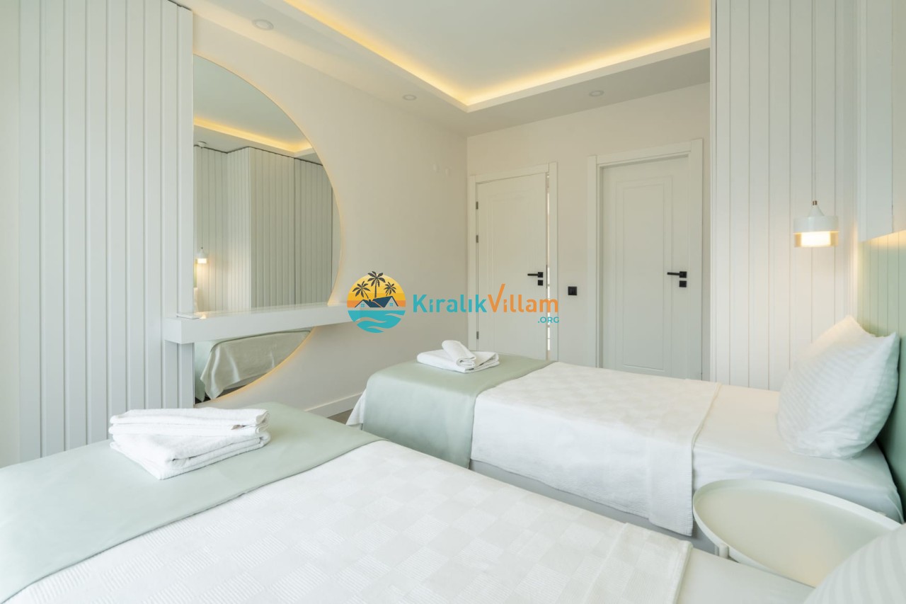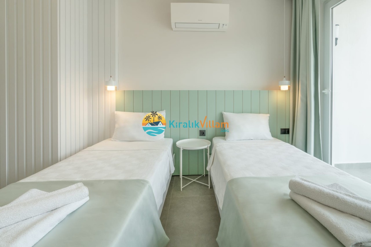 2.Yatak Odası: 2 adet tek kişilik yatak, klima, elbise dolabı, komodin, makyaj masası, banyo ve tuvalet yer almaktadır.