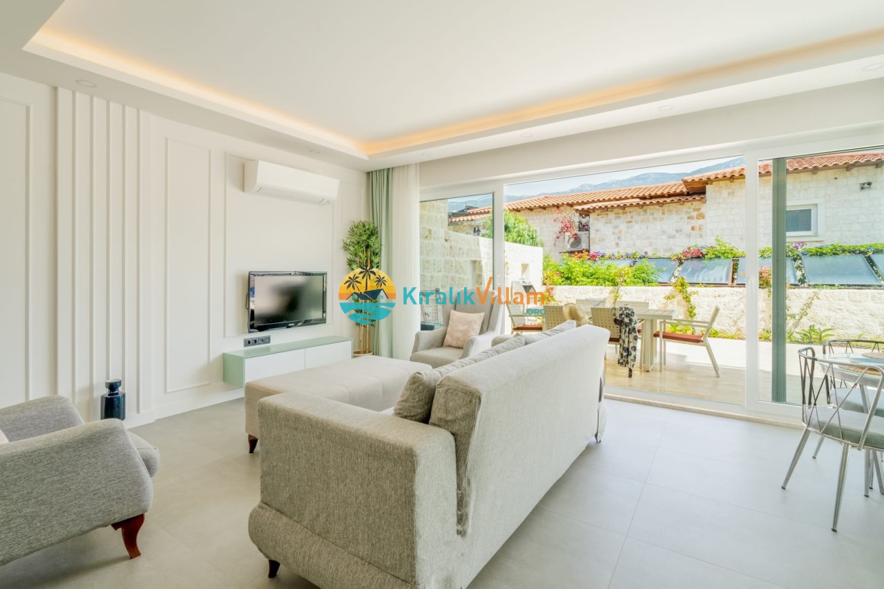 Salon: Deniz manzaralı salon içerisinde, koltuk takımı, orta sehpa, TV, TV ünitesi, klima, uydu alıcısı yer almaktadır.