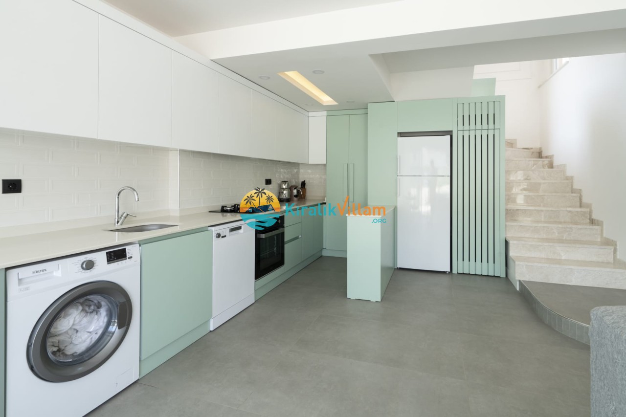 Mutfak: Amerikan mutfak içerisinde, buzdolabı, bulaşık makinası, çamaşır makinası, yemek masası, yemek takımı, ankastre fırın, mikrodalga fırın, tost makinası, ankastre ocak, çay makinası, tava, tencere takımı ve gerekli olan tüm mutfak gereçleri yer almaktadır.