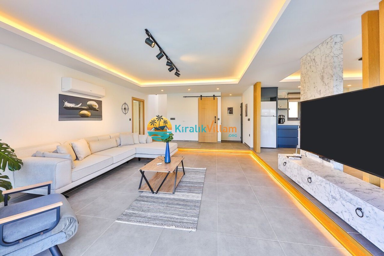 Salon: Doğa manzaralı salon içerisinde, L tarz koltuk, orta sehpa, TV, TV ünitesi, klima, uydu alıcısı yer almaktadır.