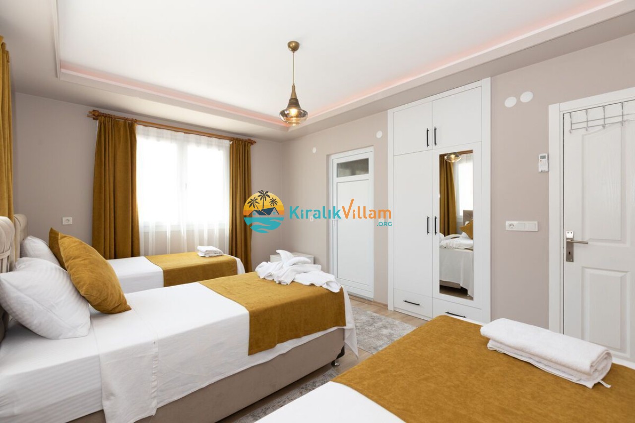 2.Yatak Odası: 3 adet tek kişilik yatak, klima, elbise dolabı, komodin, makyaj masası, banyo ve tuvalet yer almaktadır.