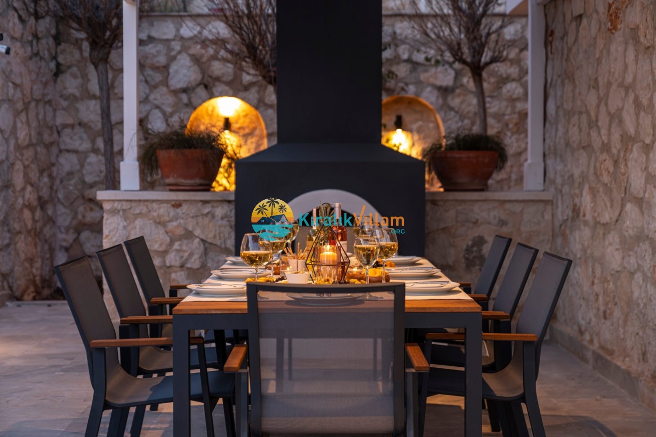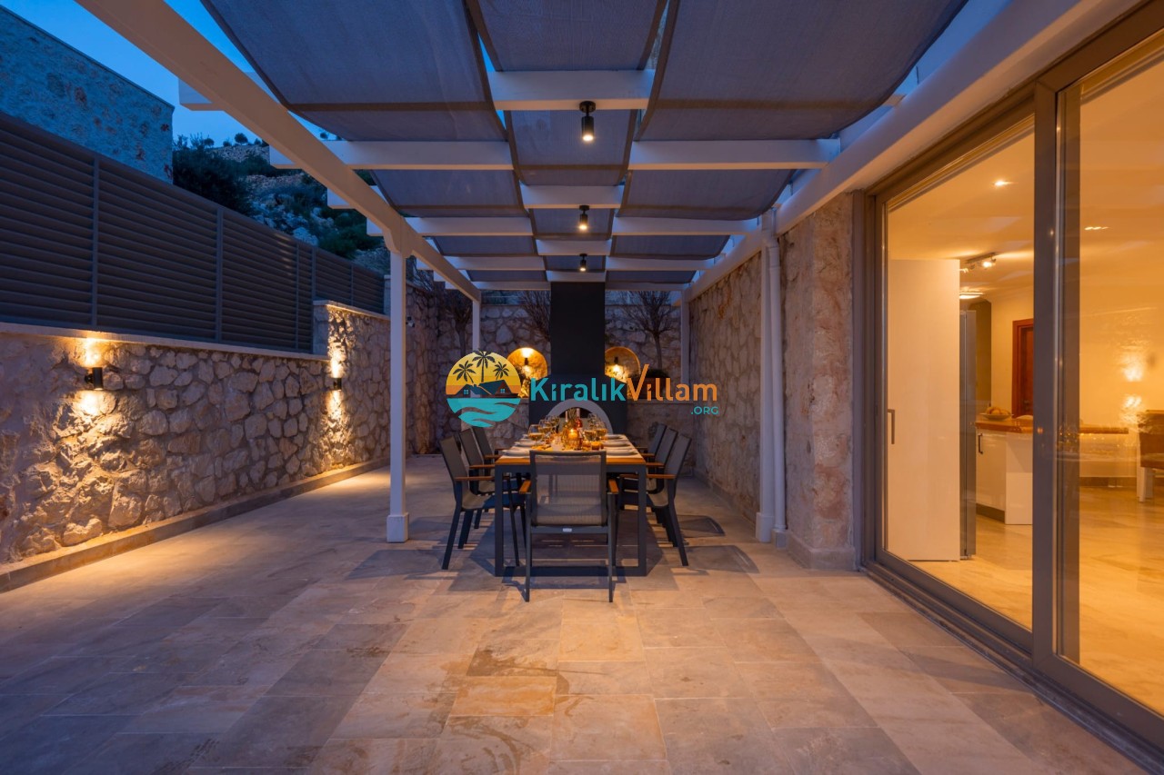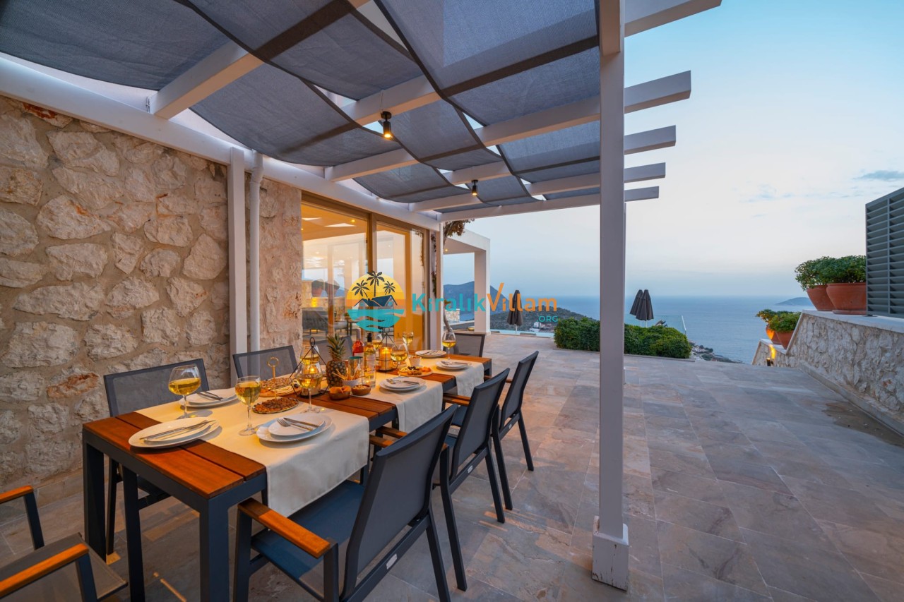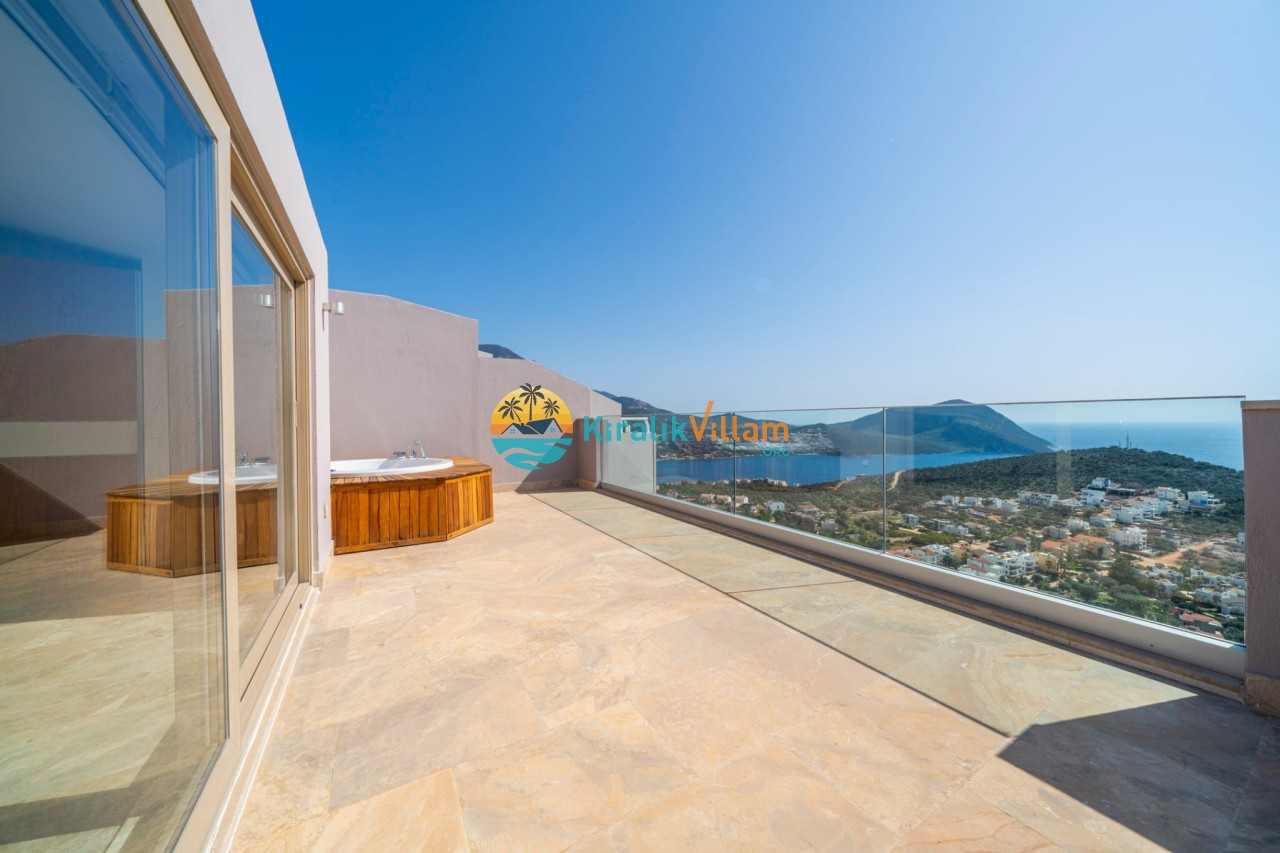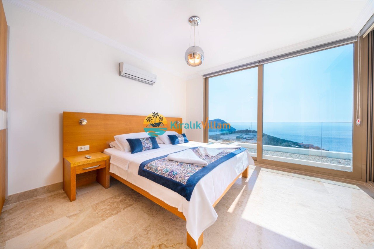 Villa Safran View, Kalkan Kalamar Koyu’nda yer alan 4 yatak odalı 8 kişilik kapasiteye sahip olan villamız geniş aileler ve arkadaş grupları için oldukça ideal bir seçenektir. Villa Safran View, Kalabalık aile ve arkadaş gruplarının rahatlıkla konaklayabileceği villamızın manzaralı bahçesinde sevdiklerinizle eğlenceli vakit geçirebileceğiniz havuz, şezlong, güneş şemsiyeleri, oturma köşesi, yemek masası ve barbekü alanı yer almaktadır. Ayrıca konforunuz için son derece modern ve kaliteli eşyalar ile dekore edilmiş villamızın terasında sakinleşebileceğiniz jakuzi yer almaktadır.