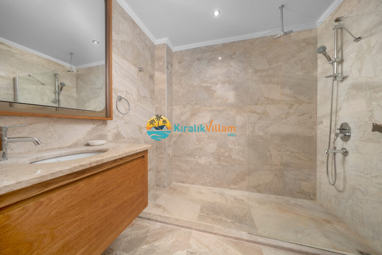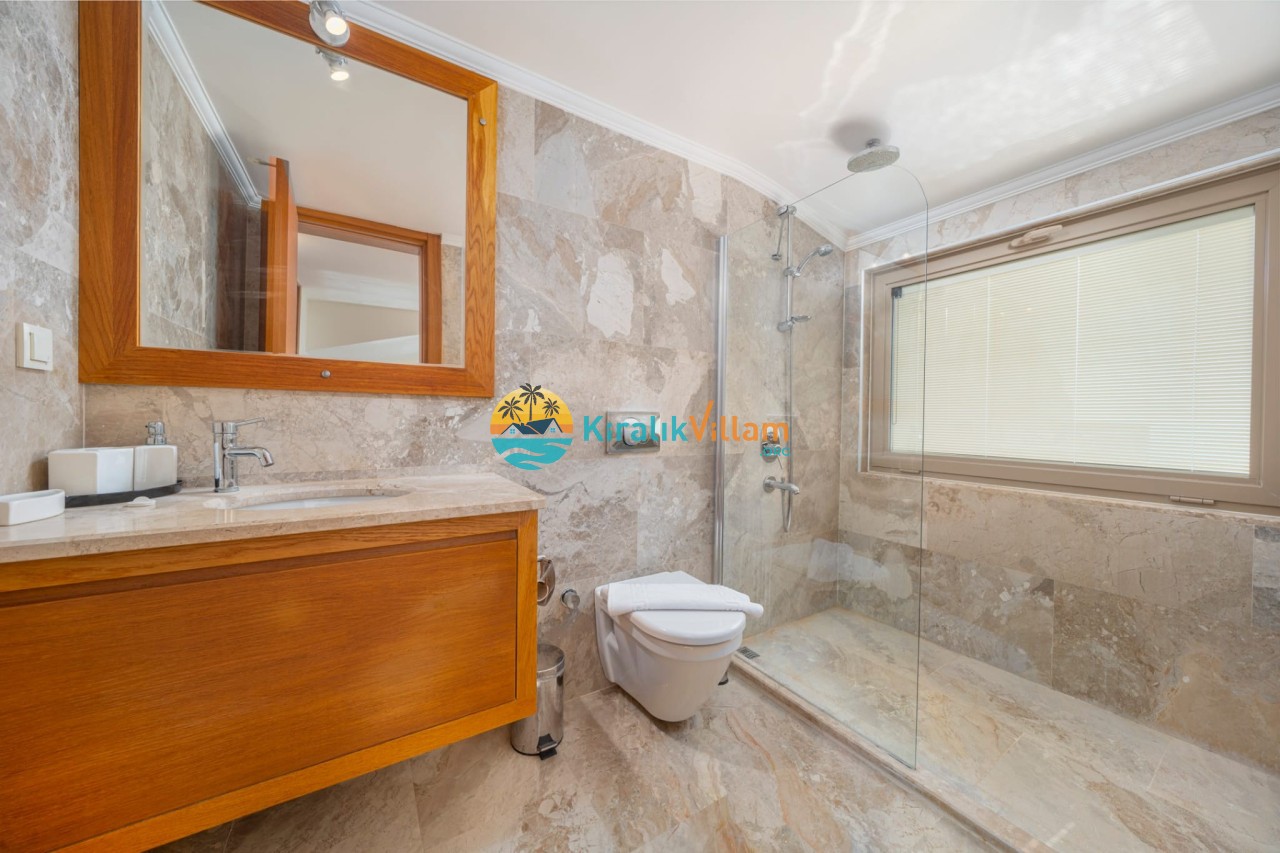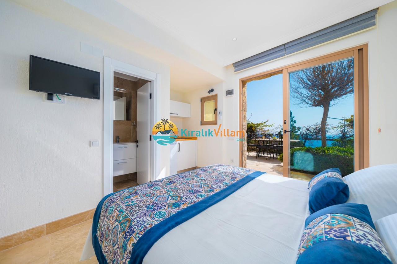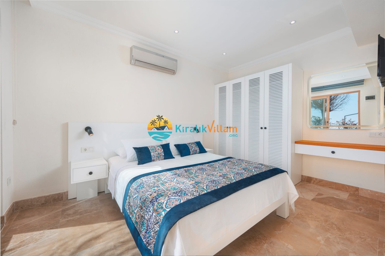 3.Yatak Odası: Bir adet çift kişilik yatak, klima, komodin, elbise dolabı, banyo ve tuvalet yer almaktadır. Bu odanın girişi farklı olup havuzun alt katındadır.