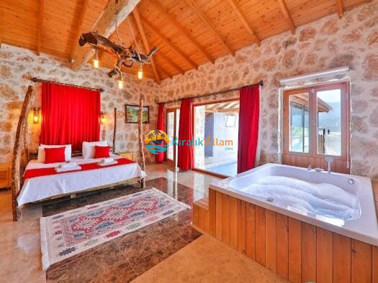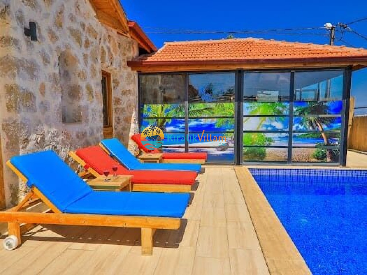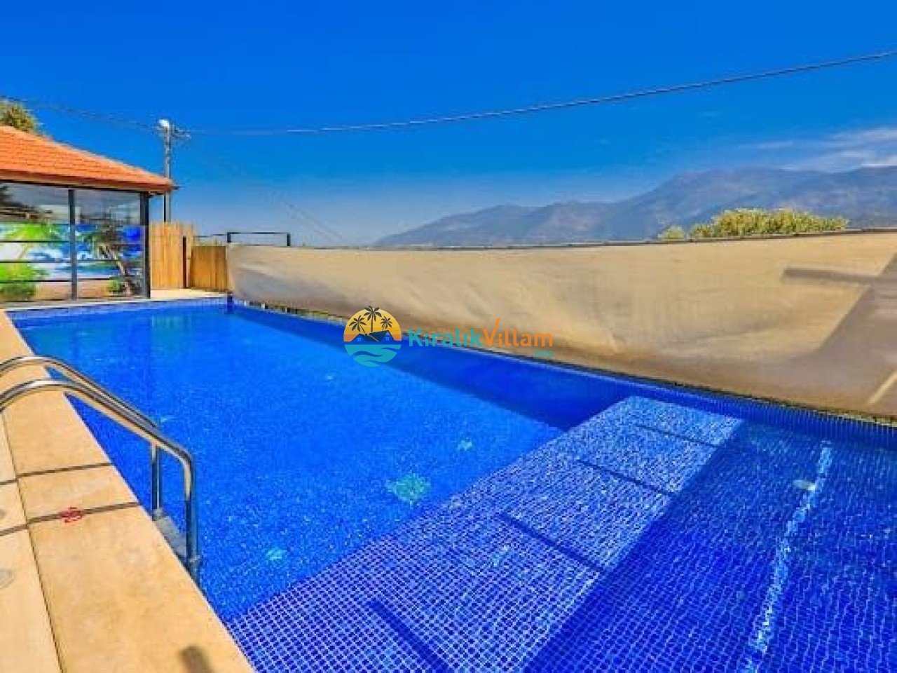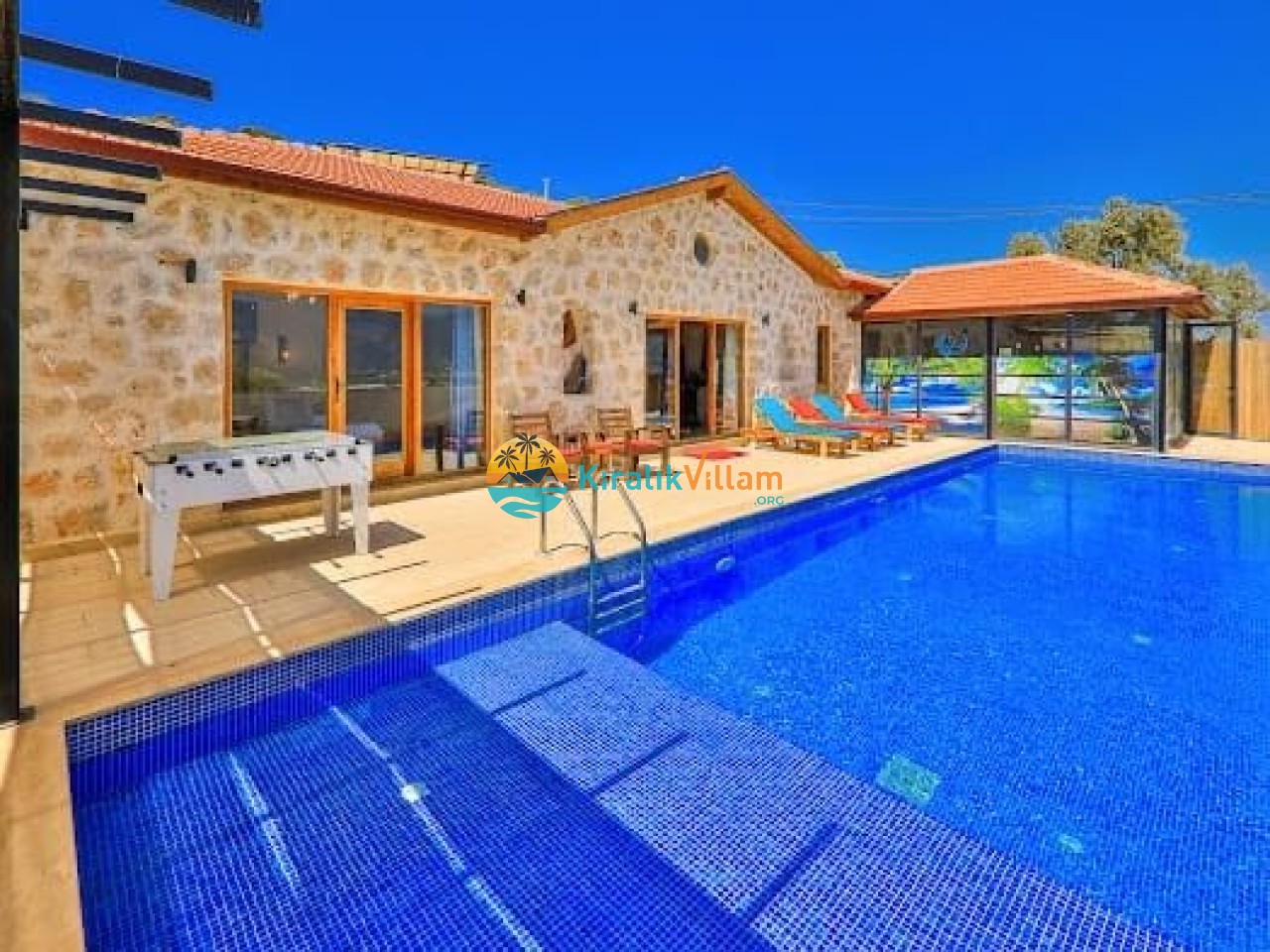 Villa Samet, Kalkan Yeşilköy bölgesinde 2 yatak odalı 4 kişilik kapasiteye sahip kapalı ısıtmalı havuzlu villalar seçenekleri arasında yer alan villamız taş mimarisi ile dikkat çekmektedir. Villa Samet, perdeleme sistemi ve çitlerle korunaklı hale getirilmiş bahçesinde havuz, şezlong, oturma köşesi, mini çocuk oyun alanı, langırt, salıncak, yemek masası ve barbekü alanı yer almaktadır. Havuzun ön kısmındaki perdeyi dilerseniz açabilir veya kapatabilirsiniz. Villamızın yatak odasının yanında ısıtmalı kapalı havuz da yer almaktadır. Isıtmalı kapalı havuzu sayesinde bahar aylarında da Villa Samet’de konaklayabilirsiniz. Villa Samet korunaklı olması sayesinde mahremiyetine önem gösteren muhfazakar çekirdek aileler ve balayı çiftleri için oldukça idealdir.