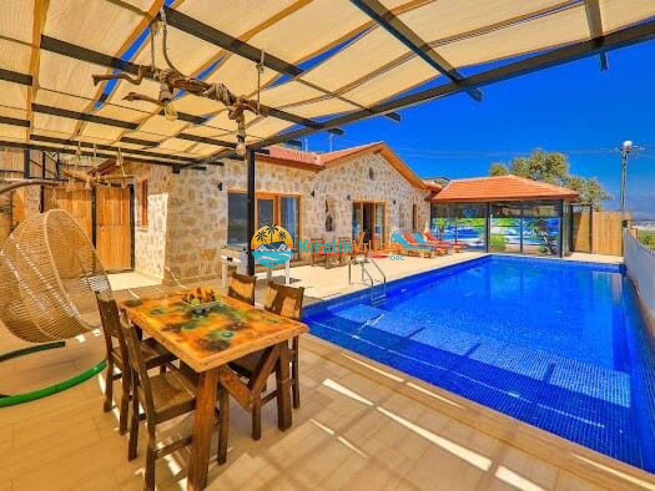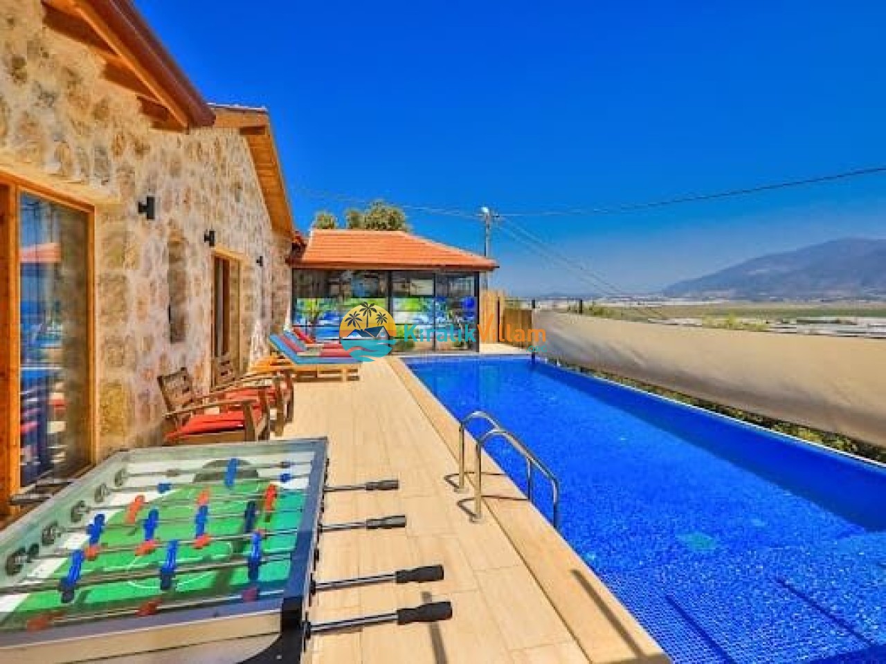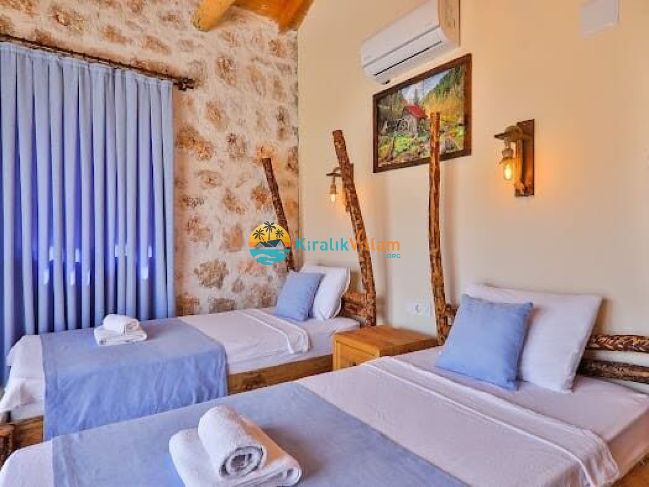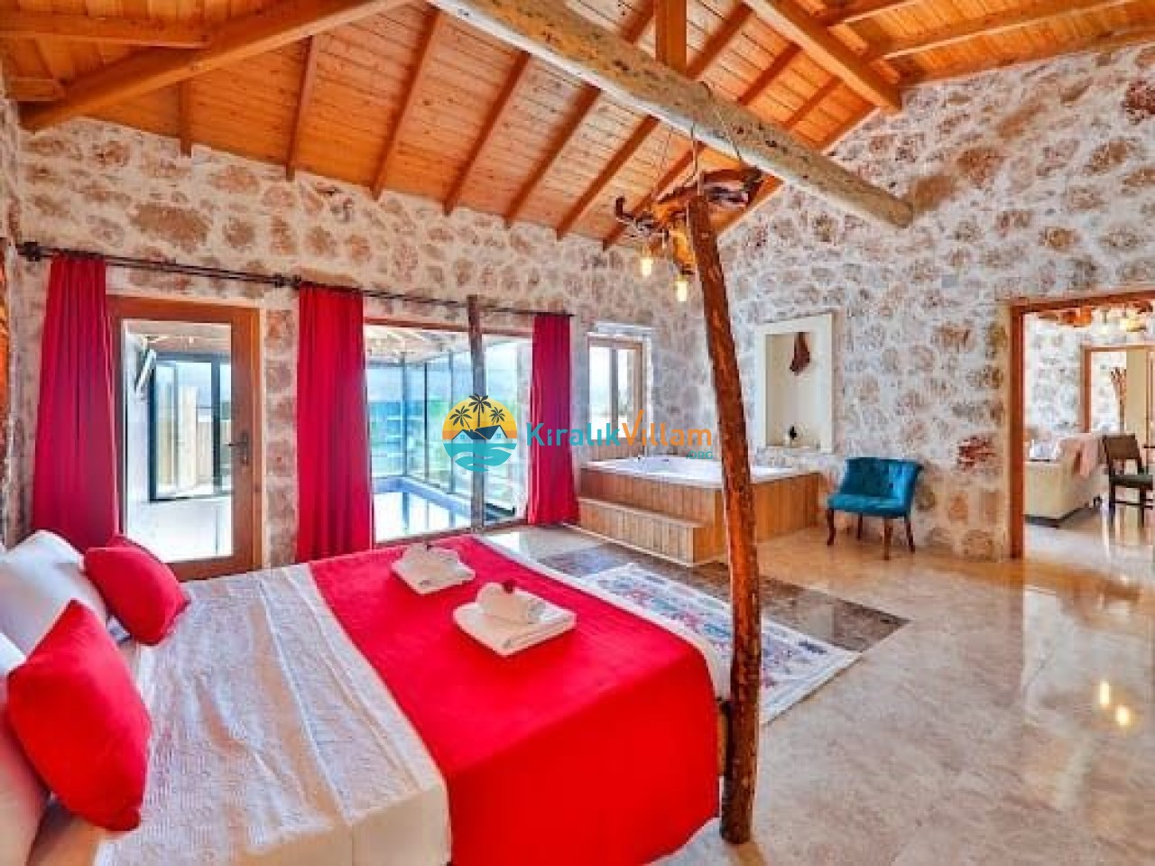 Villa Samet, Kalkan Yeşilköy bölgesinde 2 yatak odalı 4 kişilik kapasiteye sahip kapalı ısıtmalı havuzlu villalar seçenekleri arasında yer alan villamız taş mimarisi ile dikkat çekmektedir. Villa Samet, perdeleme sistemi ve çitlerle korunaklı hale getirilmiş bahçesinde havuz, şezlong, oturma köşesi, mini çocuk oyun alanı, langırt, salıncak, yemek masası ve barbekü alanı yer almaktadır. Havuzun ön kısmındaki perdeyi dilerseniz açabilir veya kapatabilirsiniz. Villamızın yatak odasının yanında ısıtmalı kapalı havuz da yer almaktadır. Isıtmalı kapalı havuzu sayesinde bahar aylarında da Villa Samet’de konaklayabilirsiniz. Villa Samet korunaklı olması sayesinde mahremiyetine önem gösteren muhfazakar çekirdek aileler ve balayı çiftleri için oldukça idealdir.