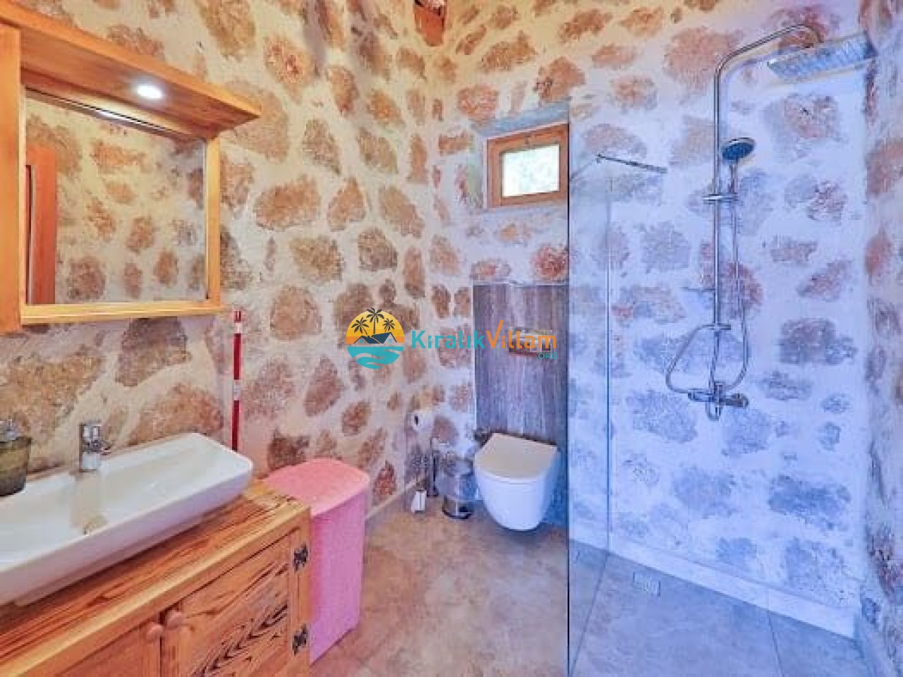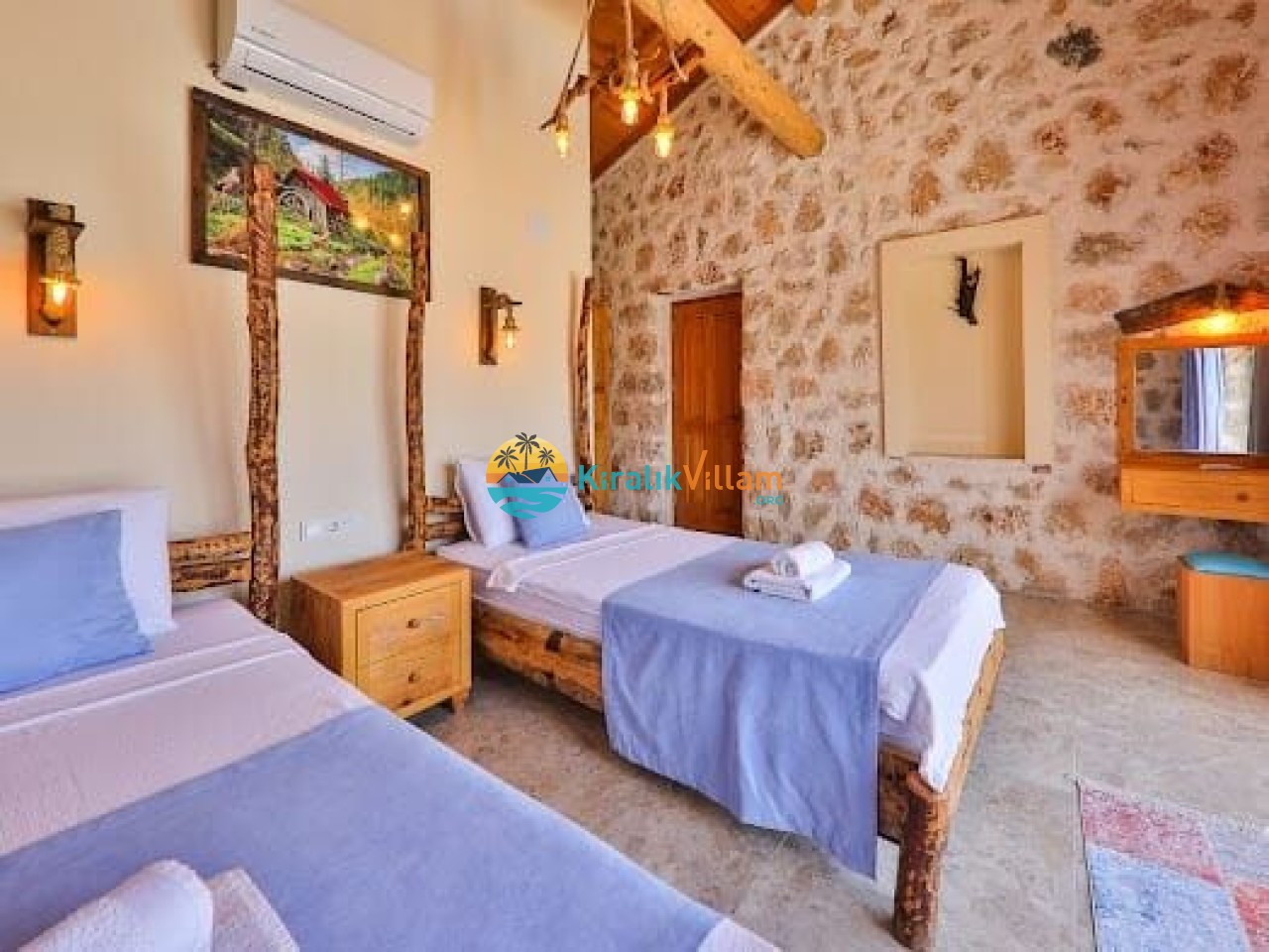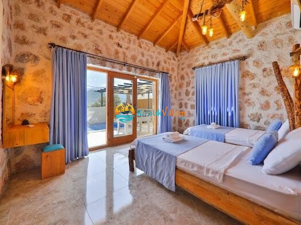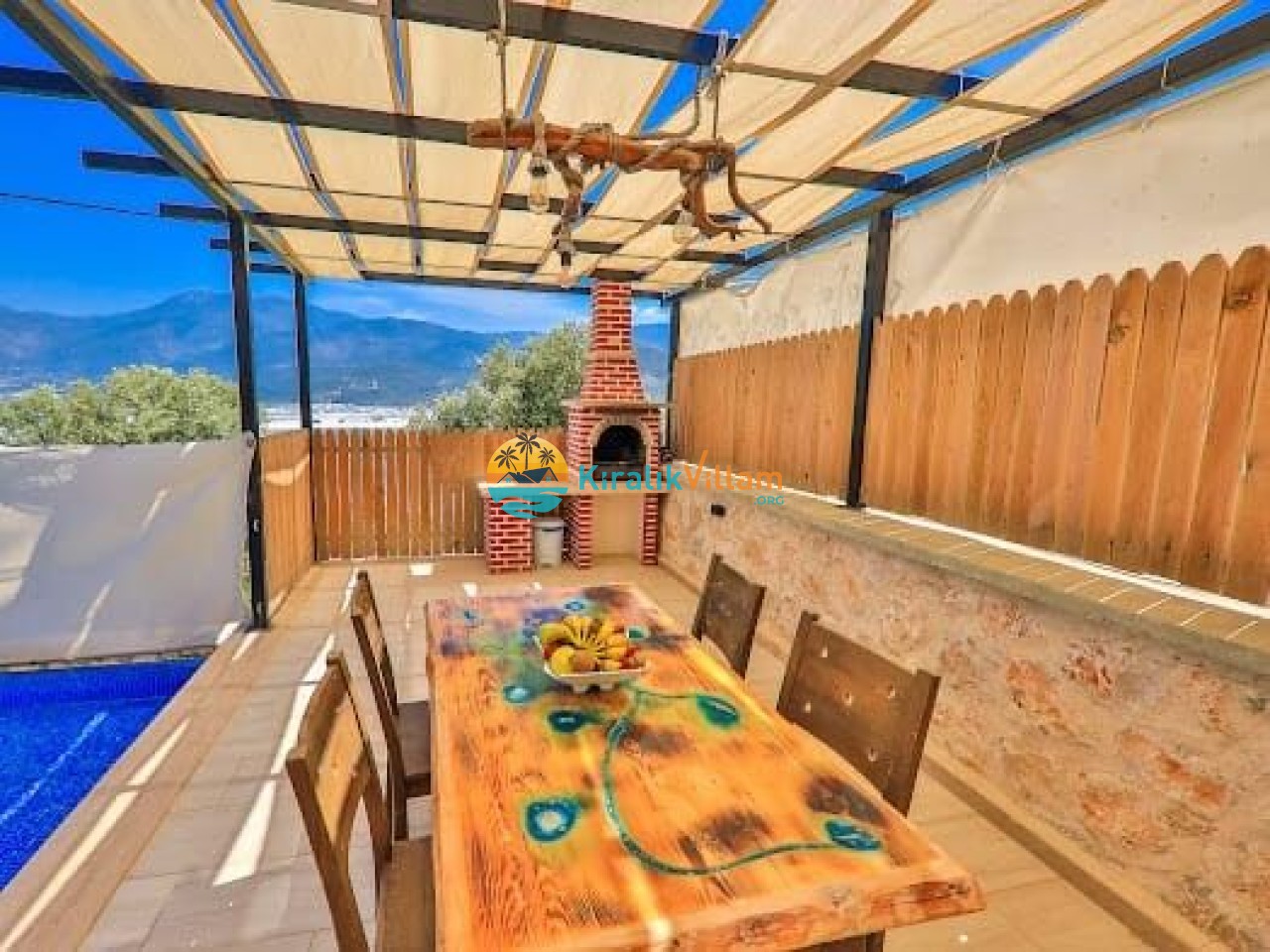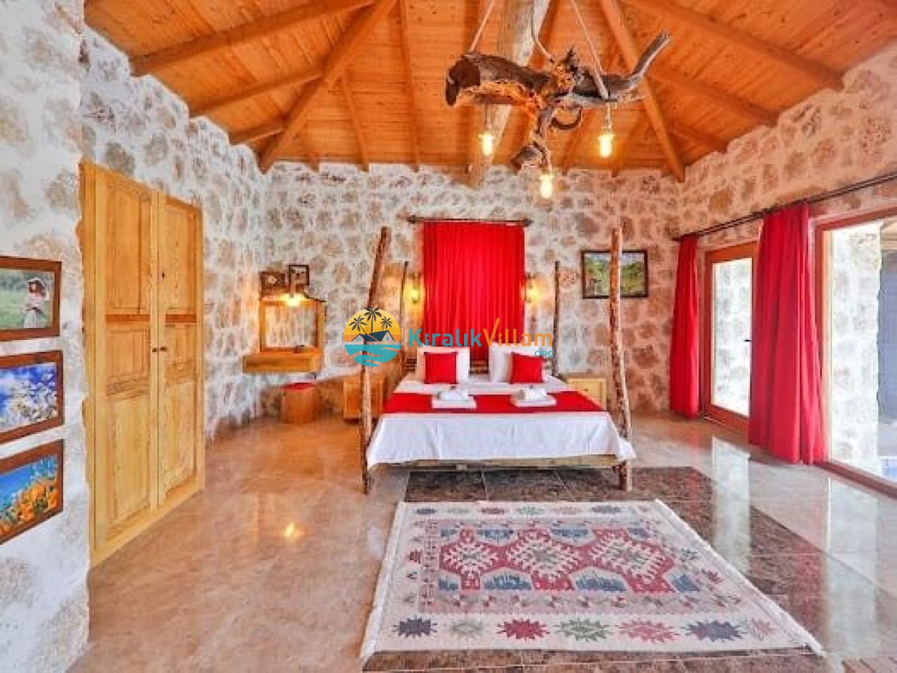 Villa Samet, Kalkan Yeşilköy bölgesinde 2 yatak odalı 4 kişilik kapasiteye sahip kapalı ısıtmalı havuzlu villalar seçenekleri arasında yer alan villamız taş mimarisi ile dikkat çekmektedir. Villa Samet, perdeleme sistemi ve çitlerle korunaklı hale getirilmiş bahçesinde havuz, şezlong, oturma köşesi, mini çocuk oyun alanı, langırt, salıncak, yemek masası ve barbekü alanı yer almaktadır. Havuzun ön kısmındaki perdeyi dilerseniz açabilir veya kapatabilirsiniz. Villamızın yatak odasının yanında ısıtmalı kapalı havuz da yer almaktadır. Isıtmalı kapalı havuzu sayesinde bahar aylarında da Villa Samet’de konaklayabilirsiniz. Villa Samet korunaklı olması sayesinde mahremiyetine önem gösteren muhfazakar çekirdek aileler ve balayı çiftleri için oldukça idealdir.