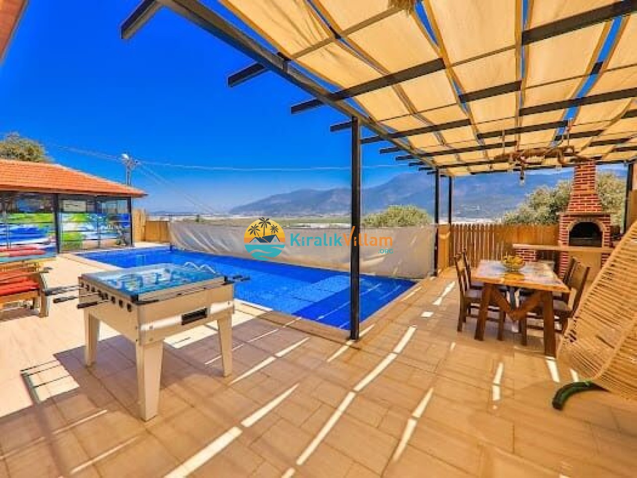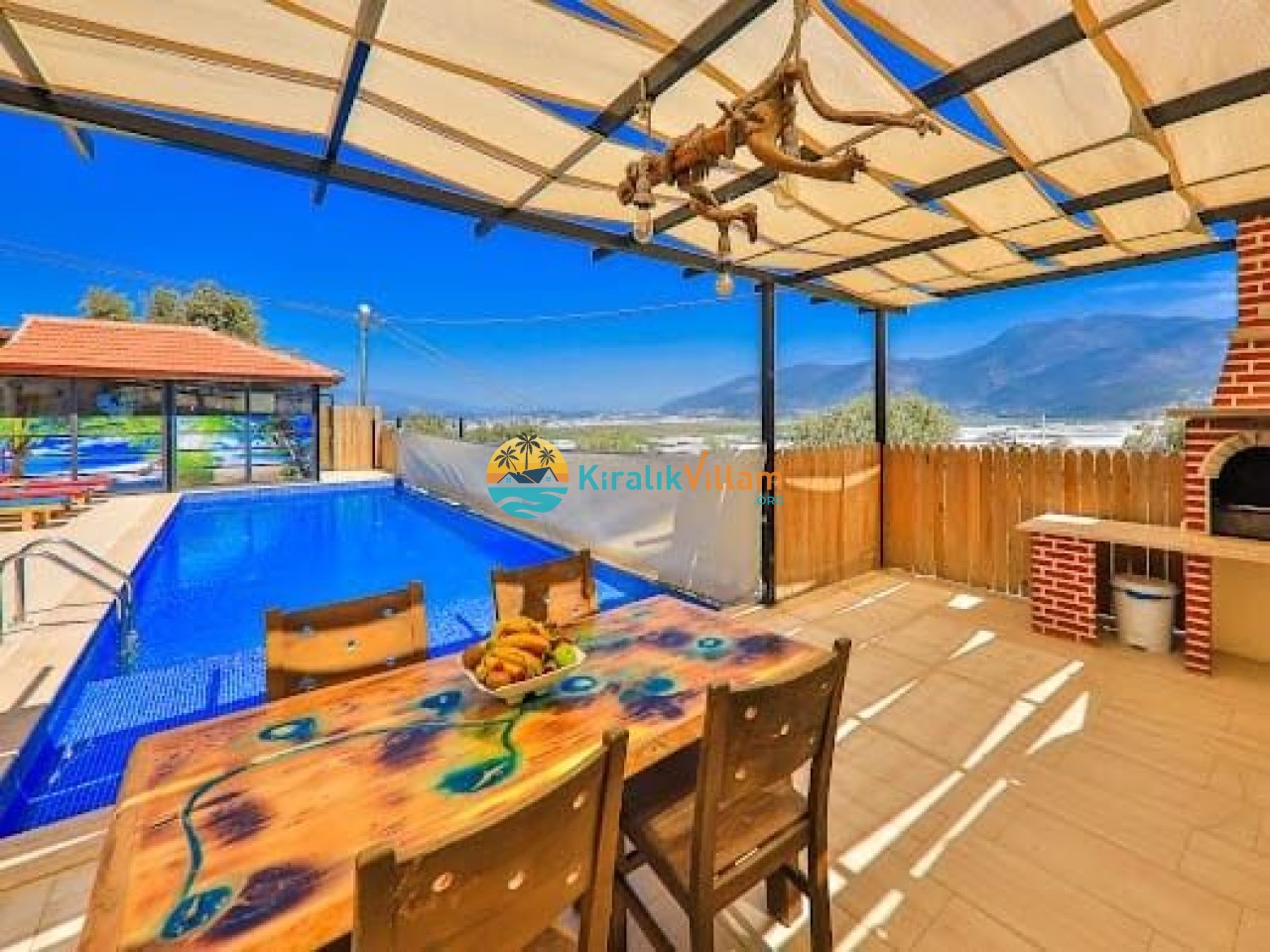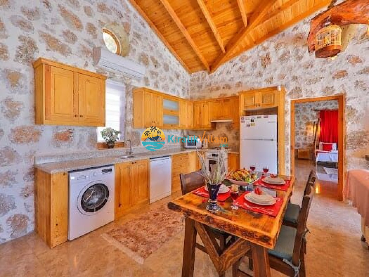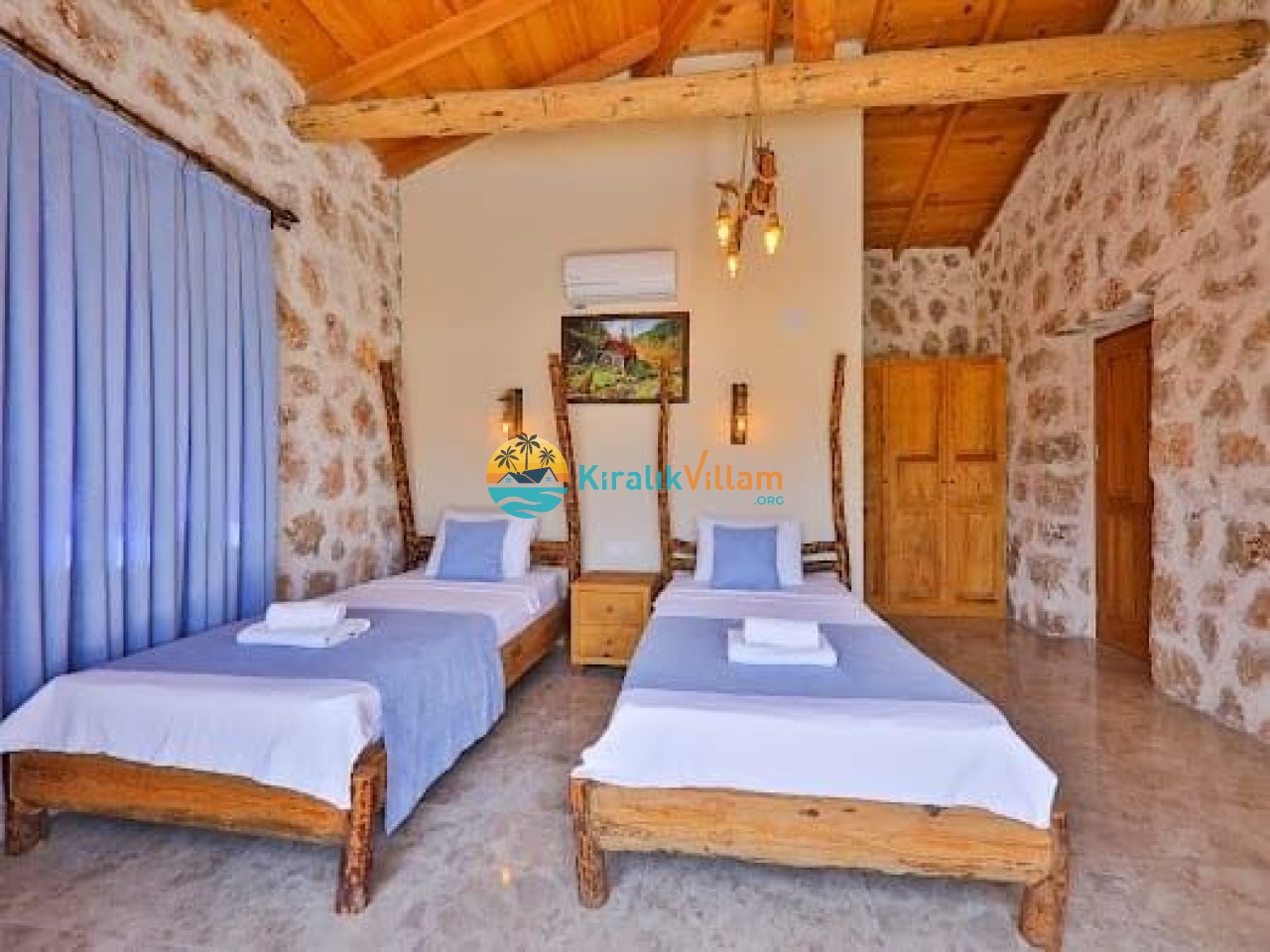 Villa Samet, Kalkan Yeşilköy bölgesinde 2 yatak odalı 4 kişilik kapasiteye sahip kapalı ısıtmalı havuzlu villalar seçenekleri arasında yer alan villamız taş mimarisi ile dikkat çekmektedir. Villa Samet, perdeleme sistemi ve çitlerle korunaklı hale getirilmiş bahçesinde havuz, şezlong, oturma köşesi, mini çocuk oyun alanı, langırt, salıncak, yemek masası ve barbekü alanı yer almaktadır. Havuzun ön kısmındaki perdeyi dilerseniz açabilir veya kapatabilirsiniz. Villamızın yatak odasının yanında ısıtmalı kapalı havuz da yer almaktadır. Isıtmalı kapalı havuzu sayesinde bahar aylarında da Villa Samet’de konaklayabilirsiniz. Villa Samet korunaklı olması sayesinde mahremiyetine önem gösteren muhfazakar çekirdek aileler ve balayı çiftleri için oldukça idealdir.