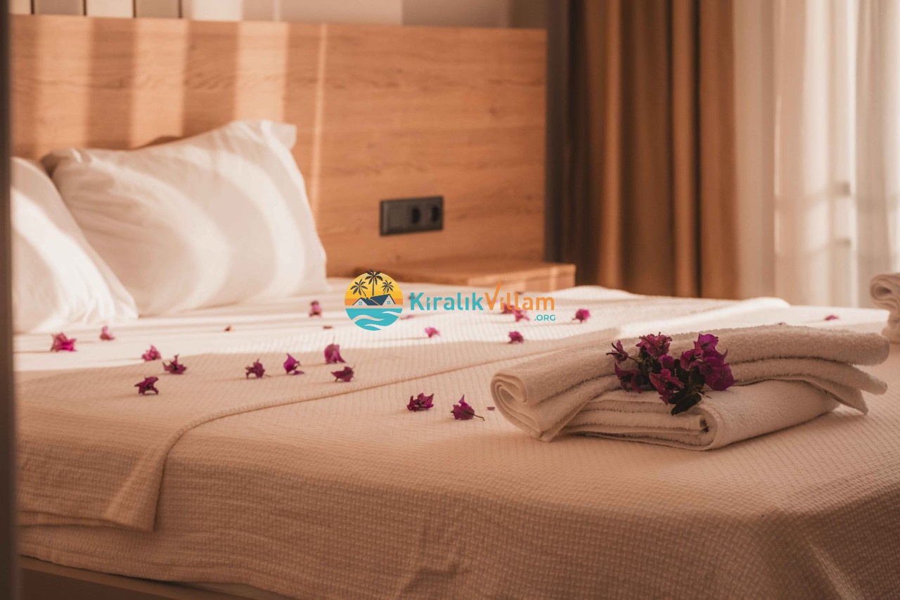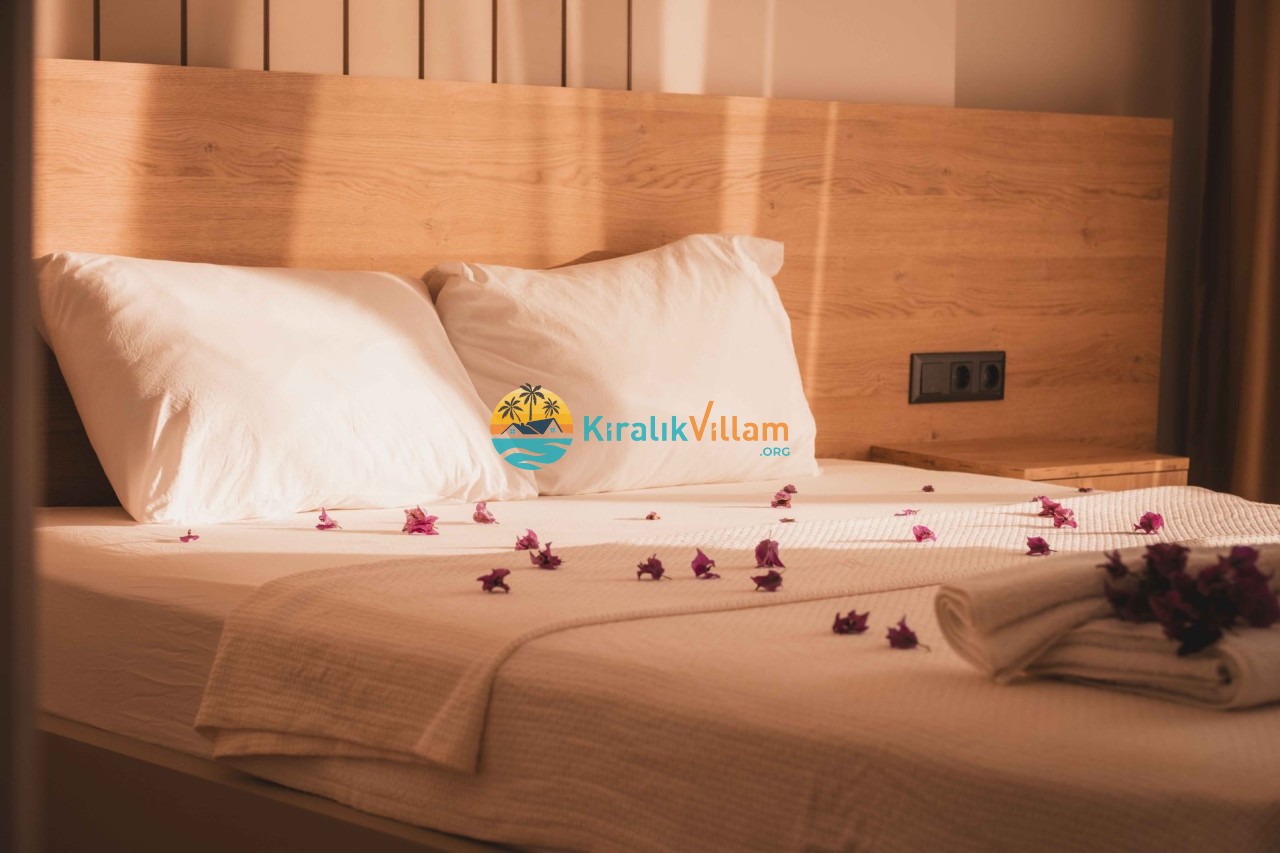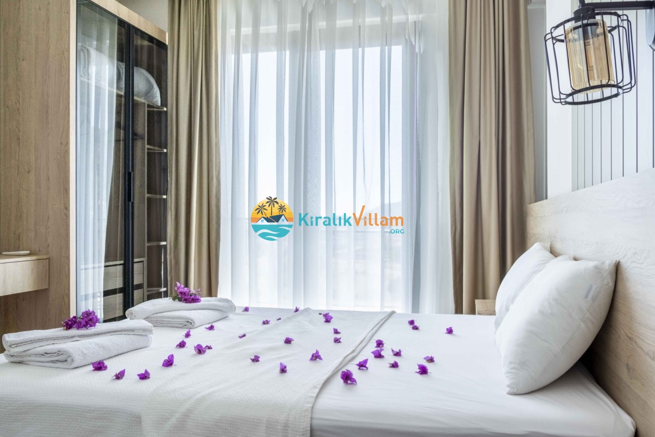2.Yatak Odası: Bir adet çift kişilik yatak ,klima, komodin, elbise dolabı, makyaj masası, banyo ve tuvalet bulunmaktadır.